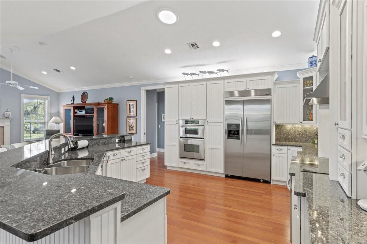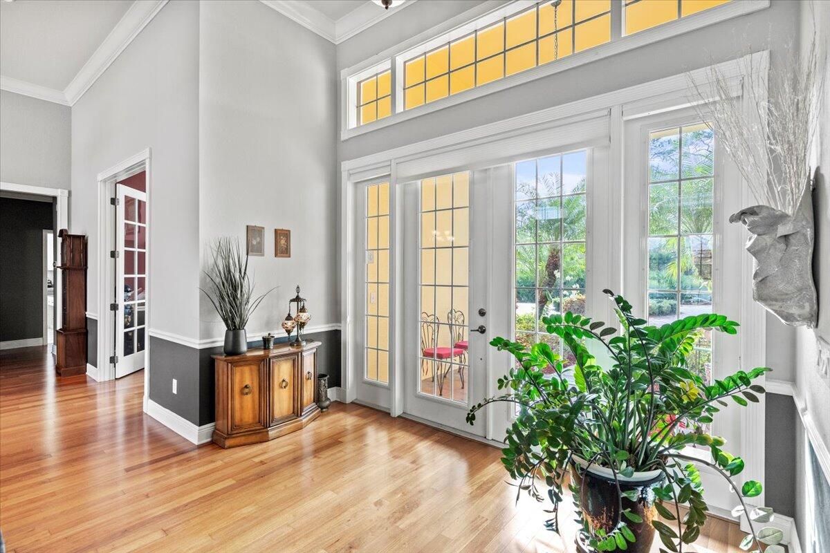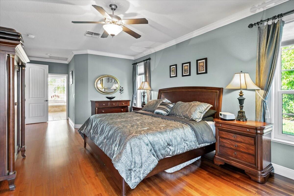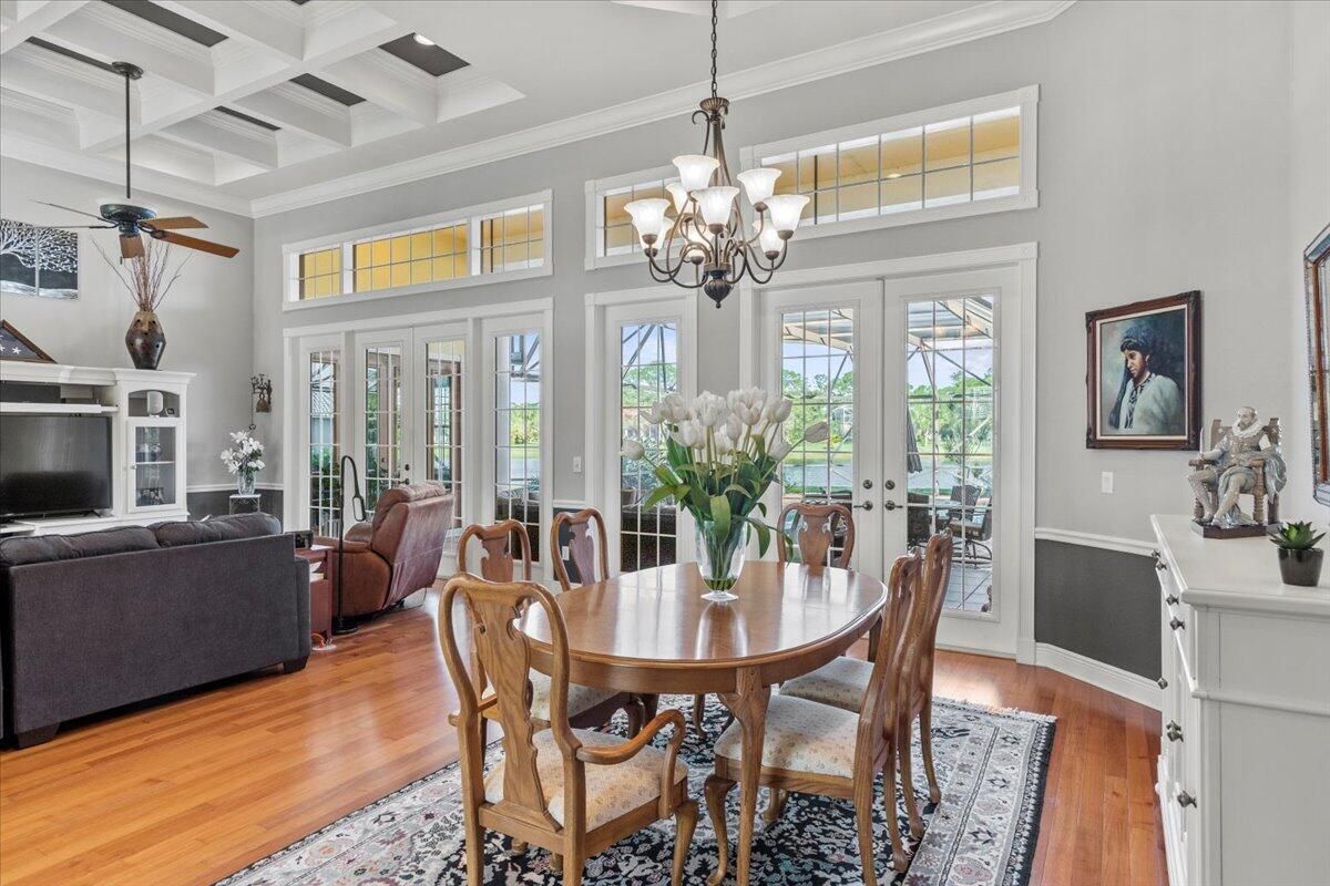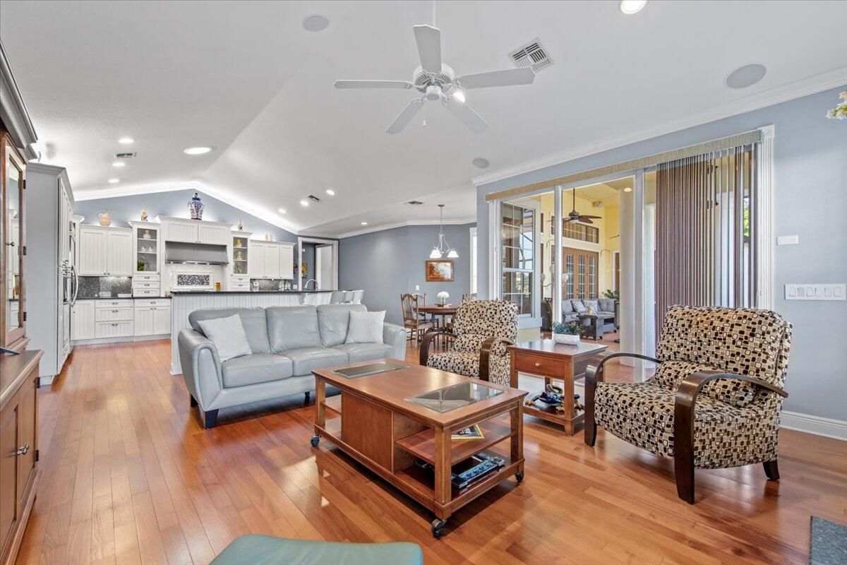 Exceptional Custom built home on 1.49 Acre Lot in cul-de-sac w/ panoramic lake views.Beautiful entrance, impact widows, Metal Roof, French Doors, volume coffered ceiling, custom moldings & wood floors. Features 3 BR's, Office w/ built-in's, 2 Full BA's, 2 1/2 BA's & oversized 2.5 CG w/ storage. Stunning Eat in Kitchen offers white updated cabinets, stainless steel appliances/hood, breakfast bar, pantry, granite counter tops & backsplash. Overlooking LG lanai, heated pool & tranquil lake views plus cabana bath. Split BR'S, natural lighting & fireplace are just a few of the details. Spacious Master Suite includes sitting area, custom window treatments & tray ceiling. Large walk in closets with built in's & grand Master BA boasts shower & tub, updated quartz counter tops & custom cabinets.