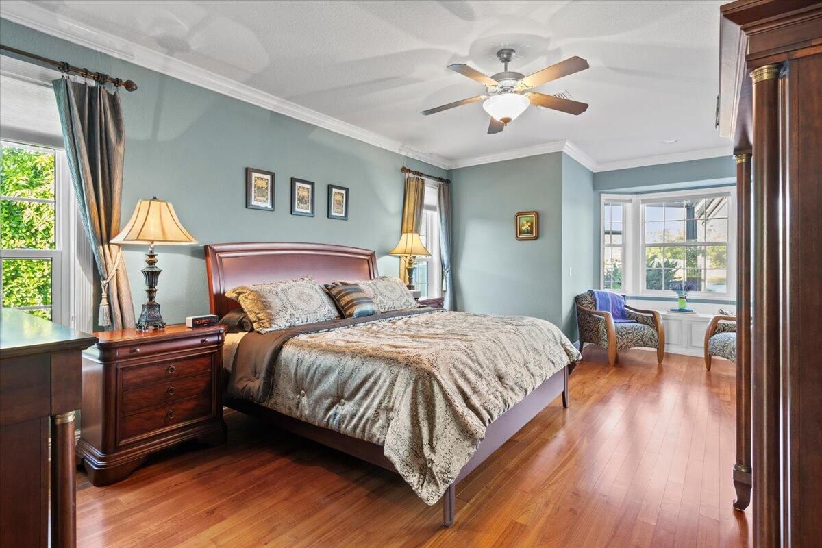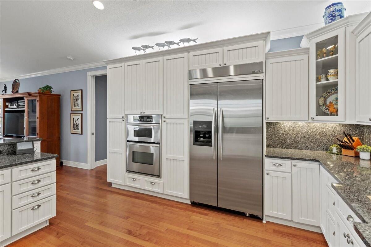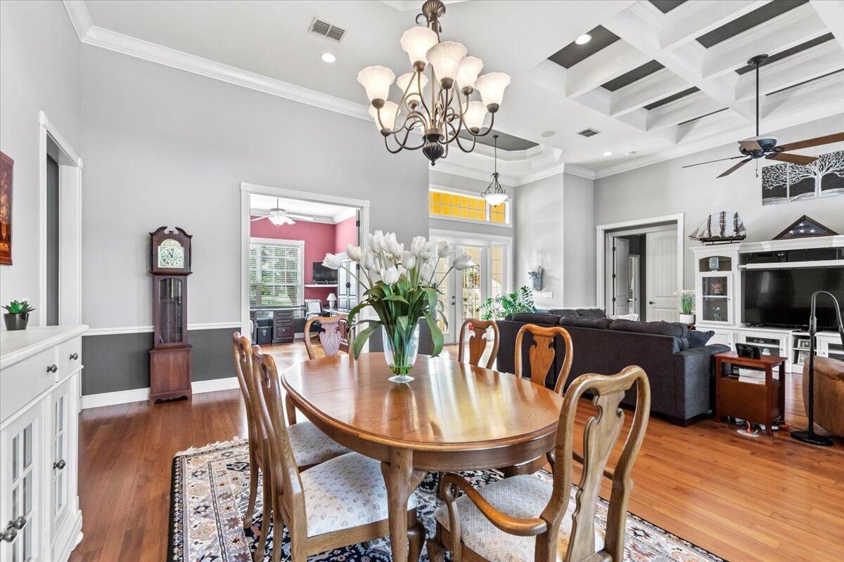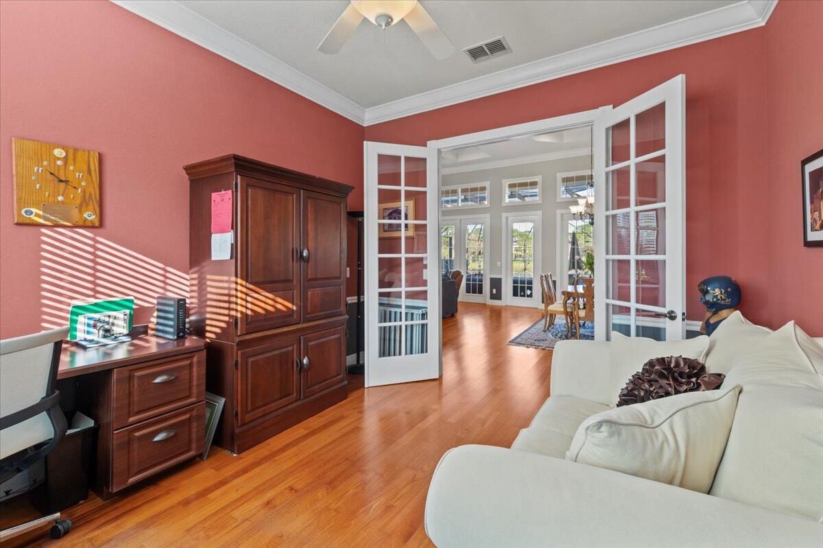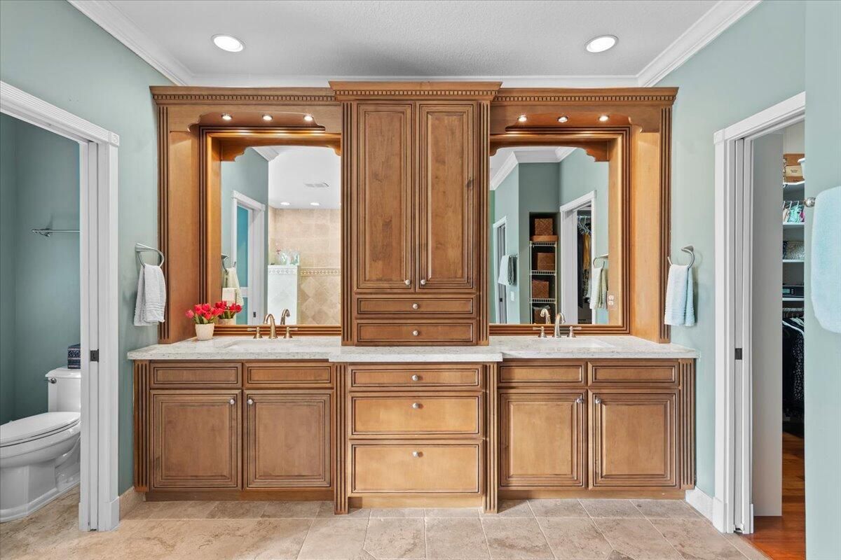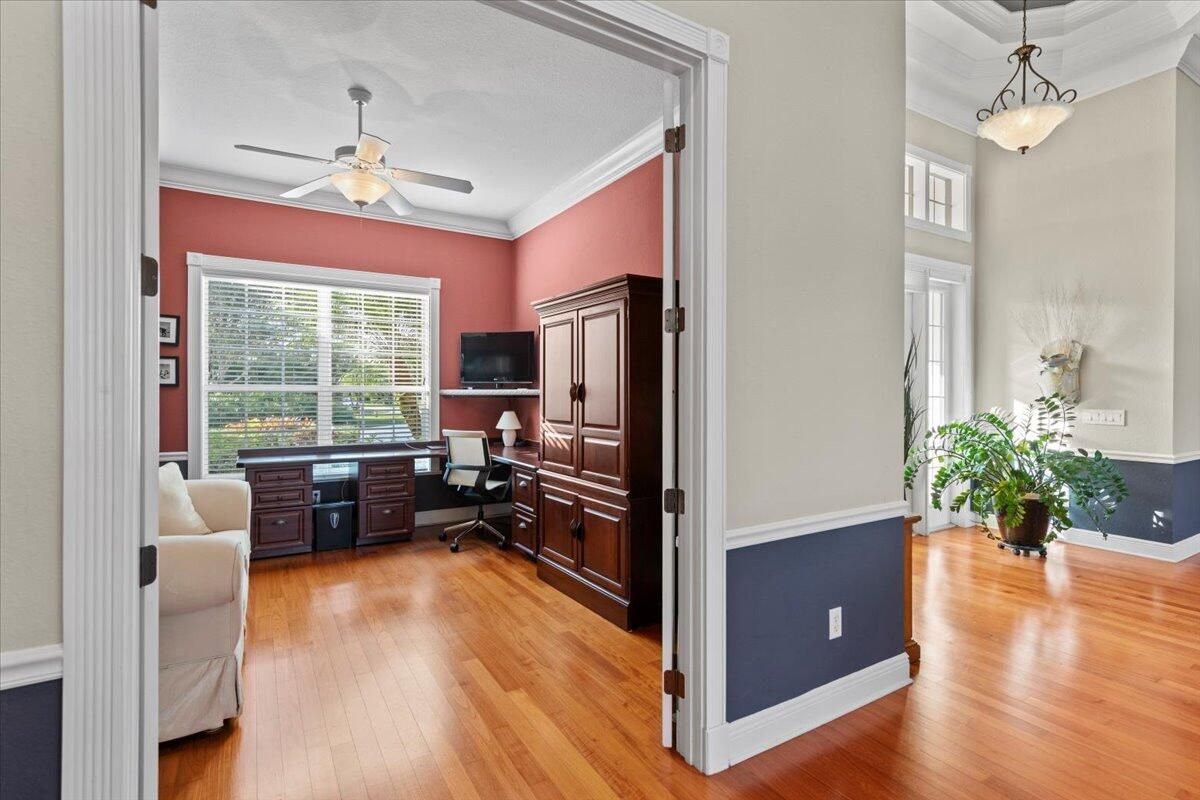 Exceptional Custom built home on 1.49 Acre Lot in cul-de-sac w/ panoramic lake views.Beautiful entrance, impact widows, Metal Roof, French Doors, volume coffered ceiling, custom moldings & wood floors. Features 3 BR's, Office w/ built-in's, 2 Full BA's, 2 1/2 BA's & oversized 2.5 CG w/ storage. Stunning Eat in Kitchen offers white updated cabinets, stainless steel appliances/hood, breakfast bar, pantry, granite counter tops & backsplash. Overlooking LG lanai, heated pool & tranquil lake views plus cabana bath. Split BR'S, natural lighting & fireplace are just a few of the details. Spacious Master Suite includes sitting area, custom window treatments & tray ceiling. Large walk in closets with built in's & grand Master BA boasts shower & tub, updated quartz counter tops & custom cabinets.