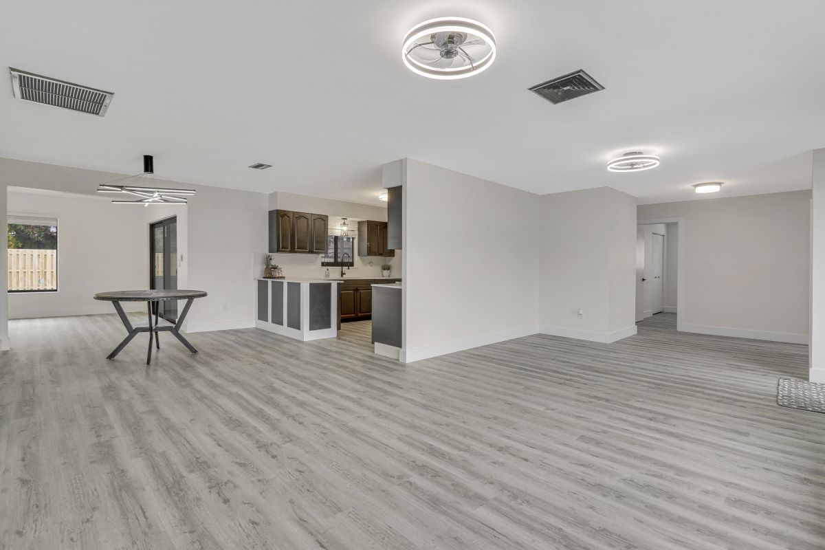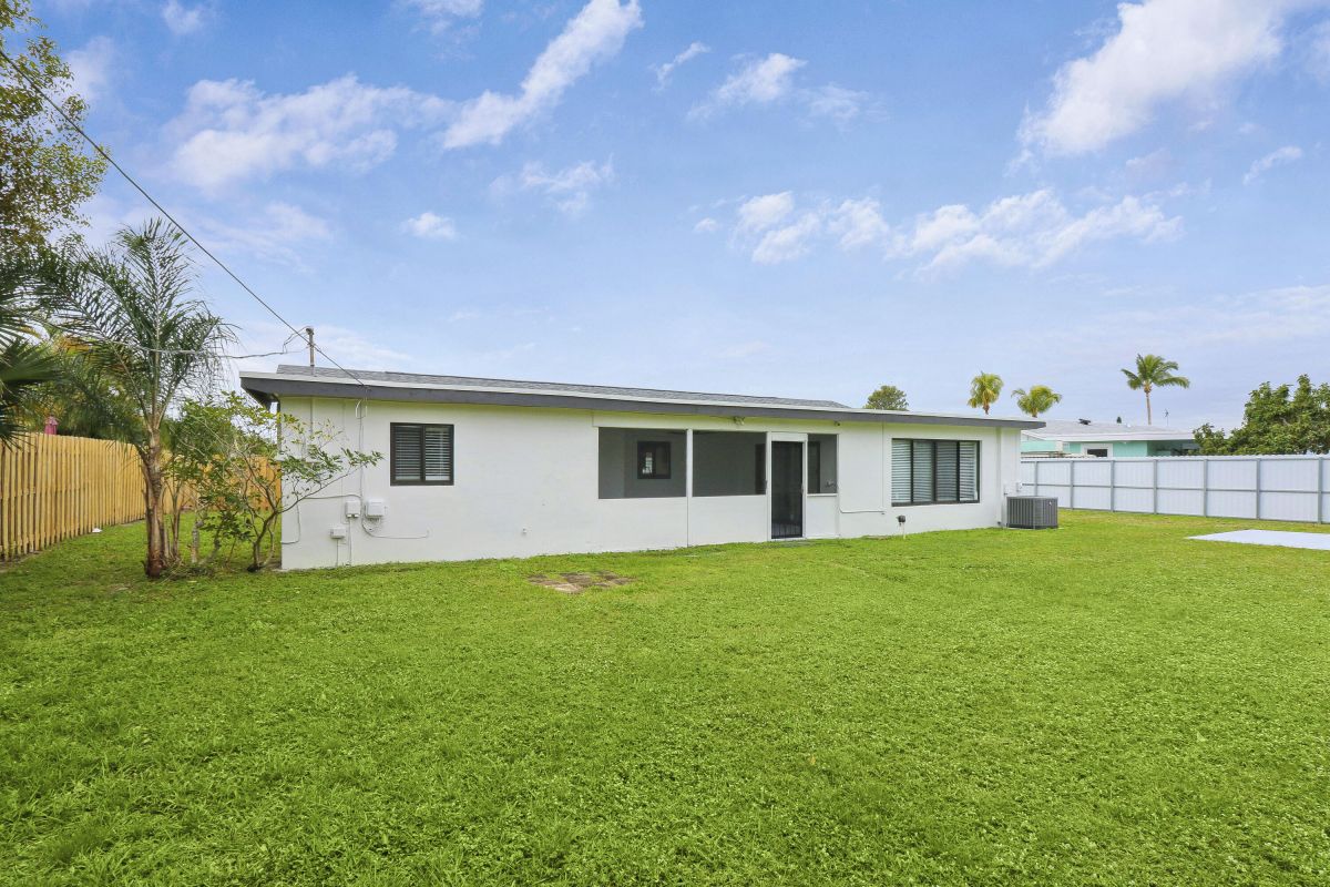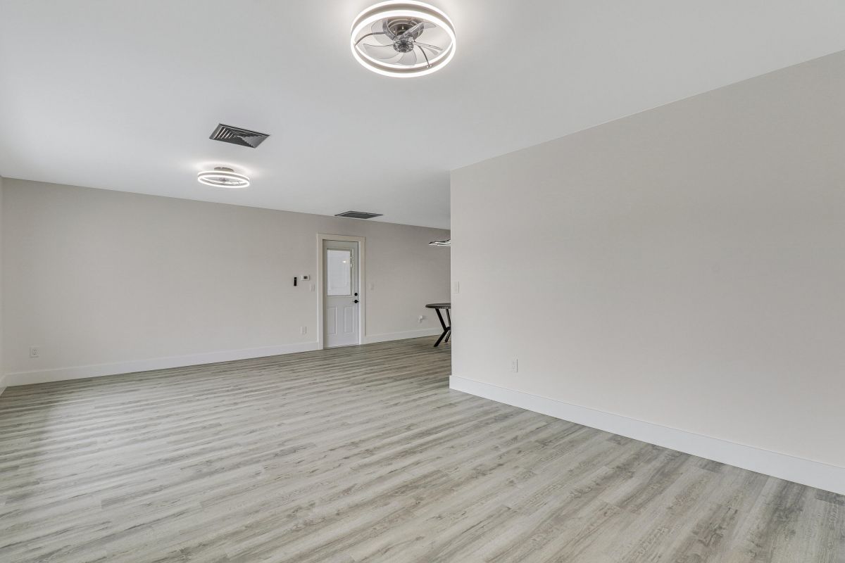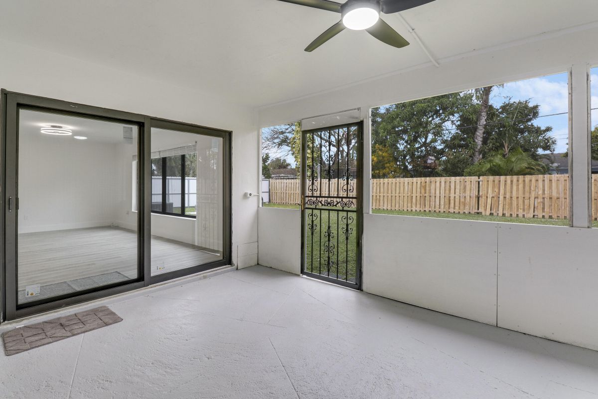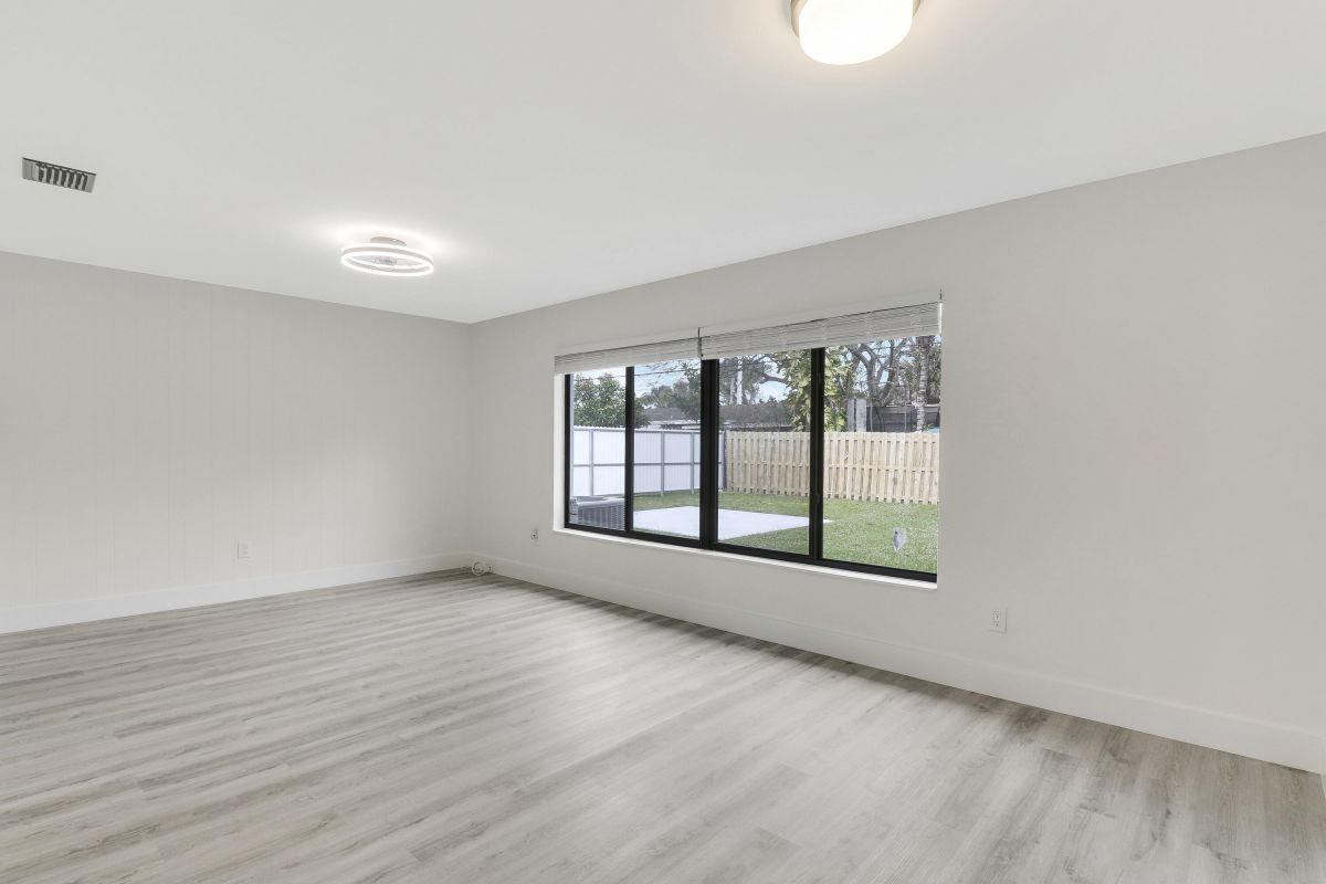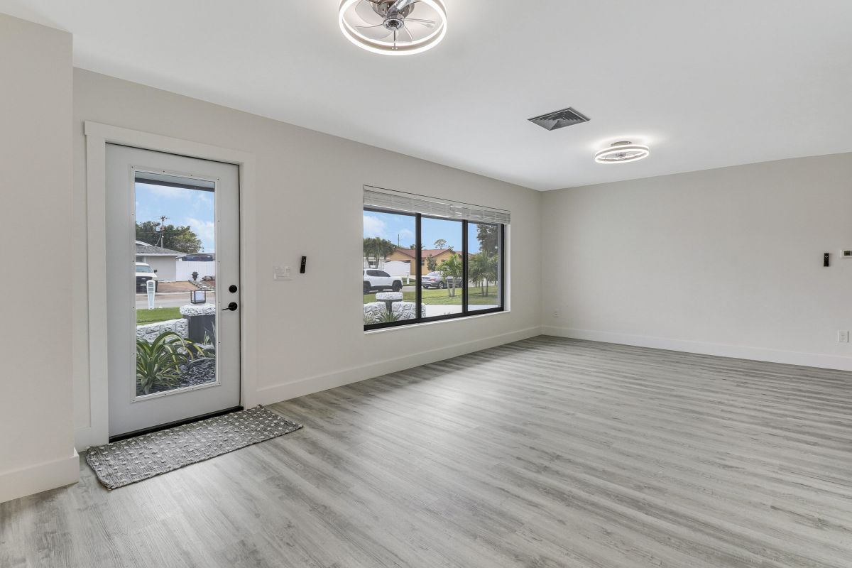 Discover this fully renovated 4-bedroom, 2-bathroom home with large living room plus family room and large screened in porch, boasting a NEW roof & NEW full impact doors/windows. Other features include full luxury ''life-proof'' vinyl flooring throughout, smoothed walls and ceilings, all 4 bedrooms have professionally installed custom closets, new baseboards, all new light fixtures. Both bathrooms were completely gutted and feature high end tiles, custom vanities, quartz counters, LED mirrors and frameless glass shower / bath enclosures. Nestled on an oversized lot with a fenced yard, offering ample space for a pool or RV/boat parking. Includes a 1-stall garage with new garage door motor. New washer /dryer located in garage. No HOA, centrally located near highways and shopping.