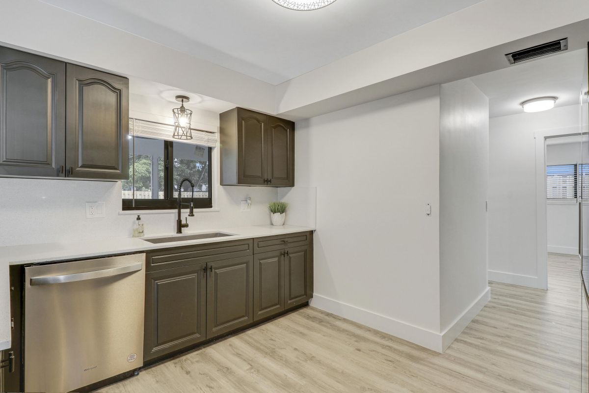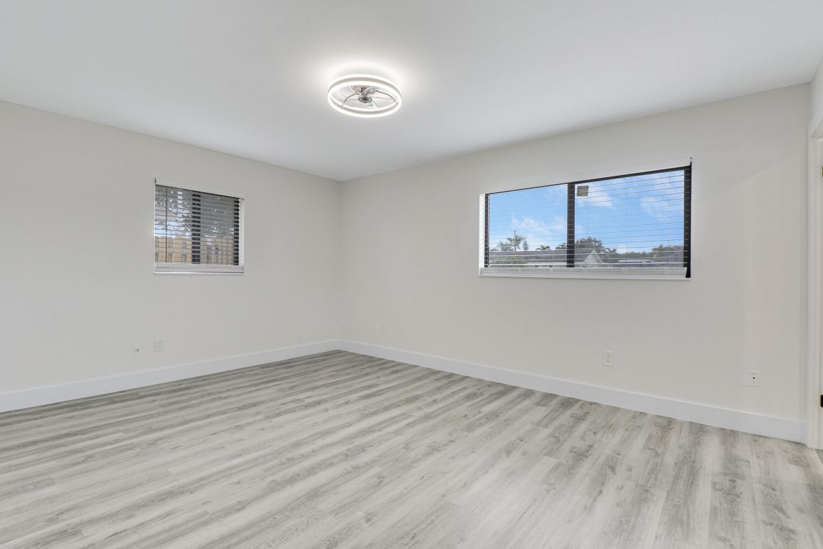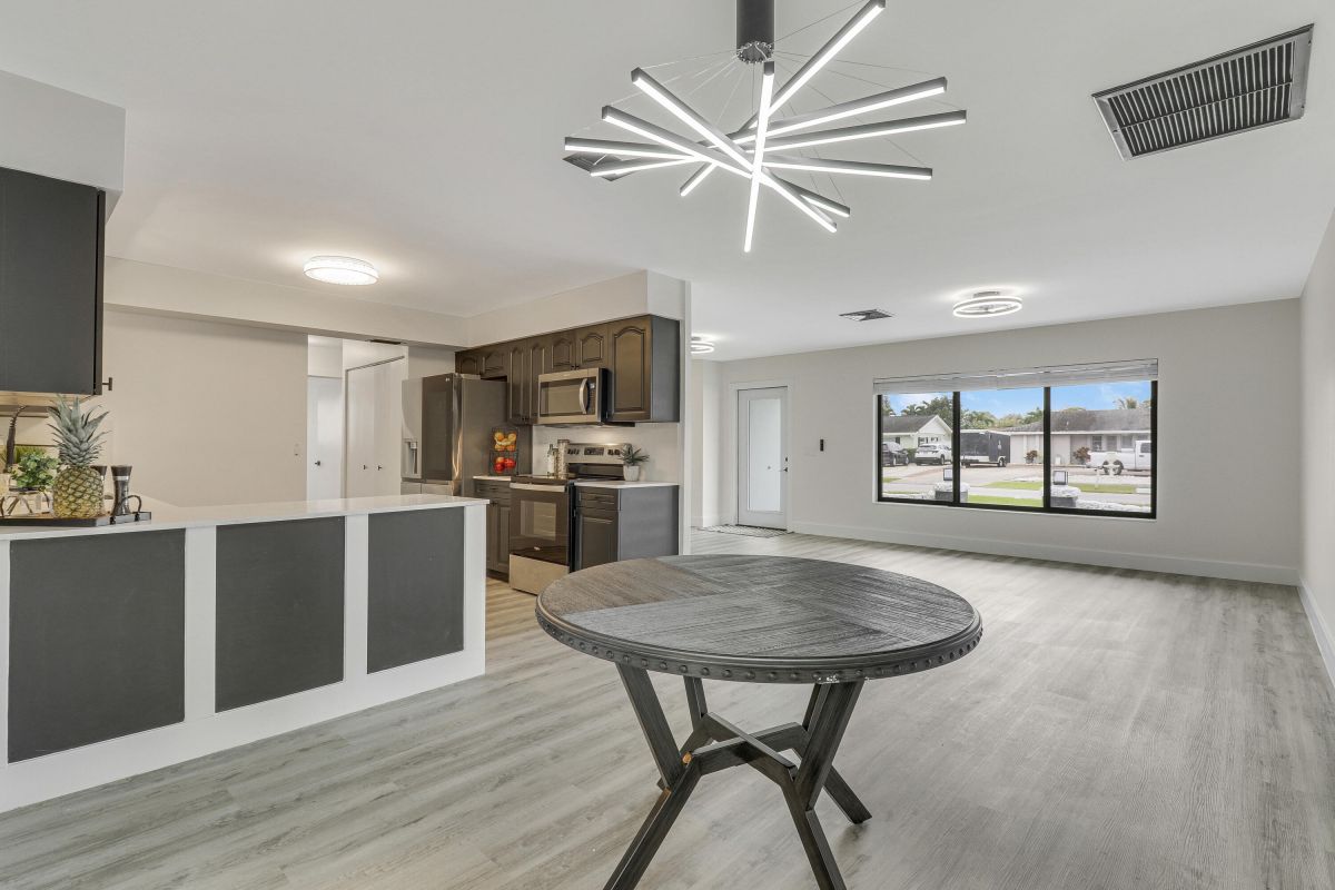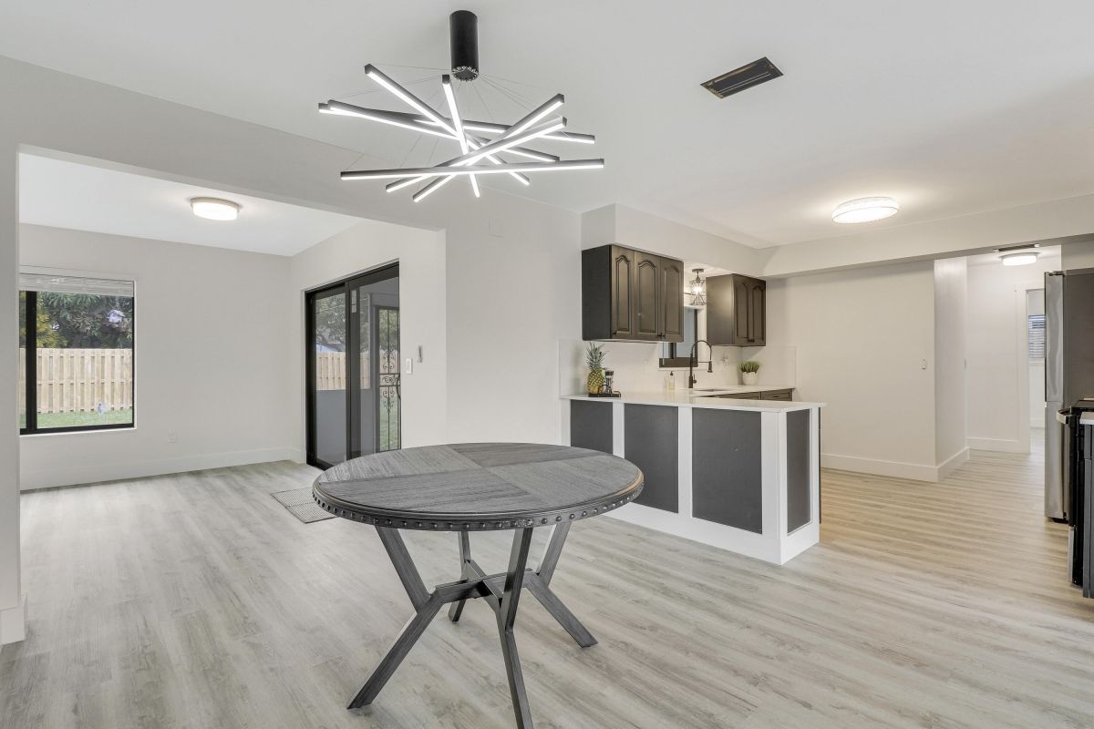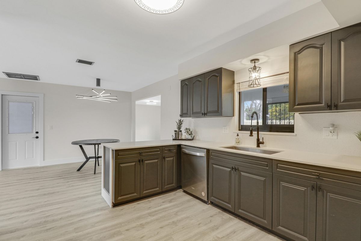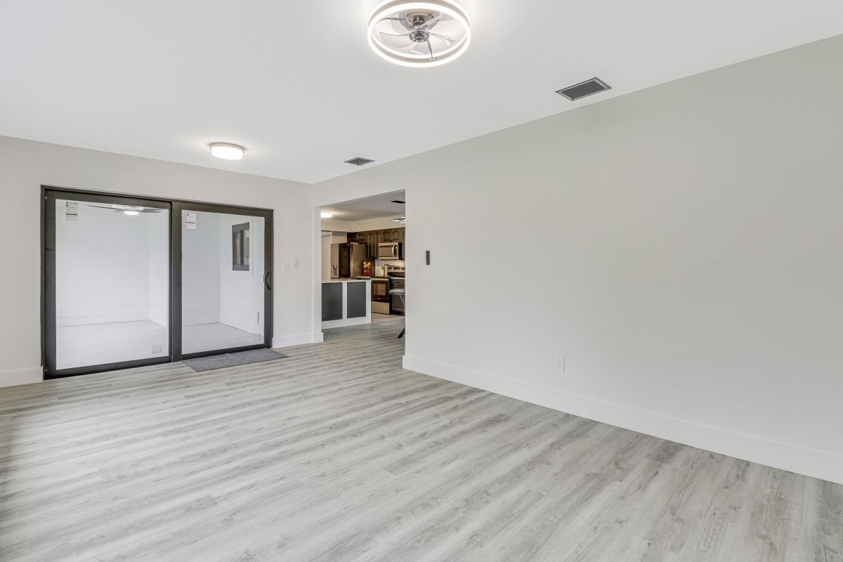 Discover this fully renovated 4-bedroom, 2-bathroom home with large living room plus family room and large screened in porch, boasting a NEW roof & NEW full impact doors/windows. Other features include full luxury ''life-proof'' vinyl flooring throughout, smoothed walls and ceilings, all 4 bedrooms have professionally installed custom closets, new baseboards, all new light fixtures. Both bathrooms were completely gutted and feature high end tiles, custom vanities, quartz counters, LED mirrors and frameless glass shower / bath enclosures. Nestled on an oversized lot with a fenced yard, offering ample space for a pool or RV/boat parking. Includes a 1-stall garage with new garage door motor. New washer /dryer located in garage. No HOA, centrally located near highways and shopping.