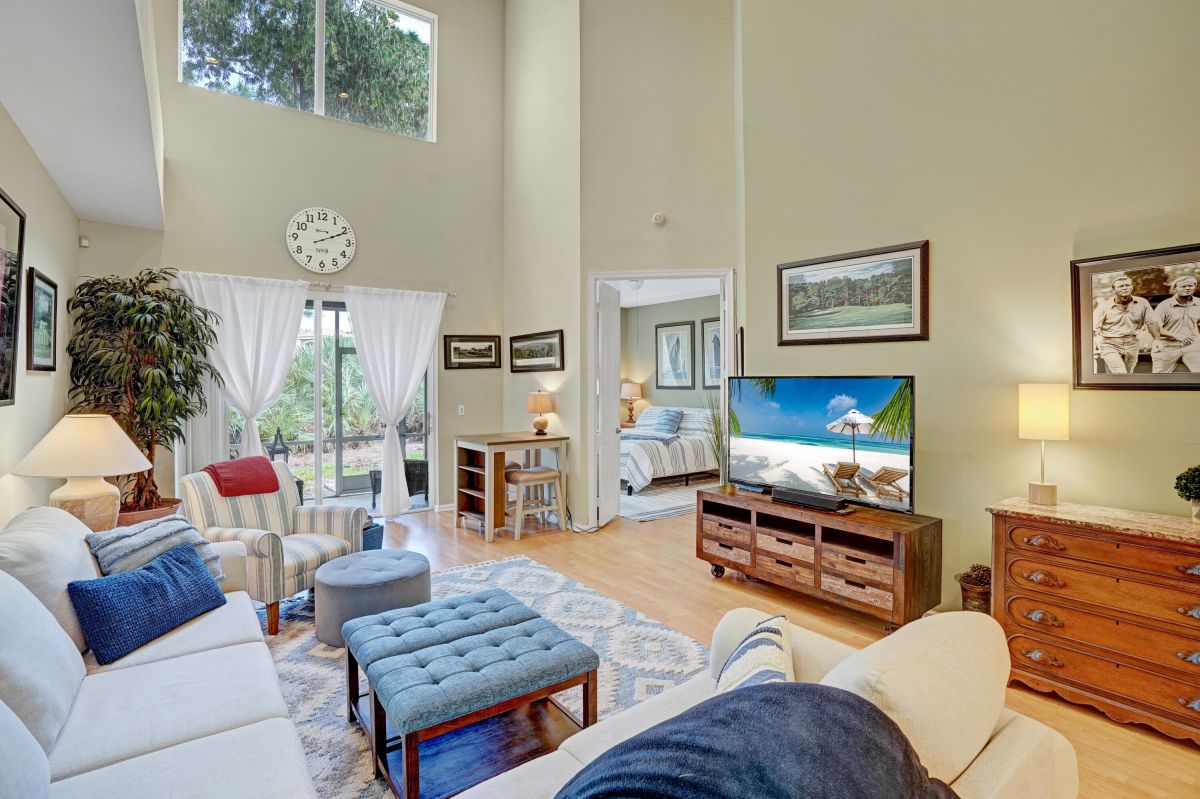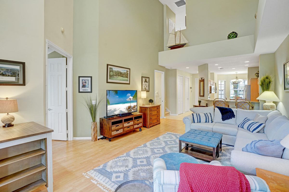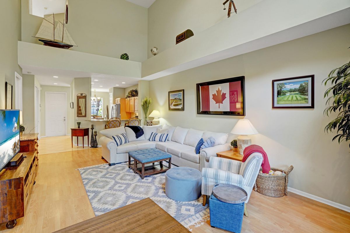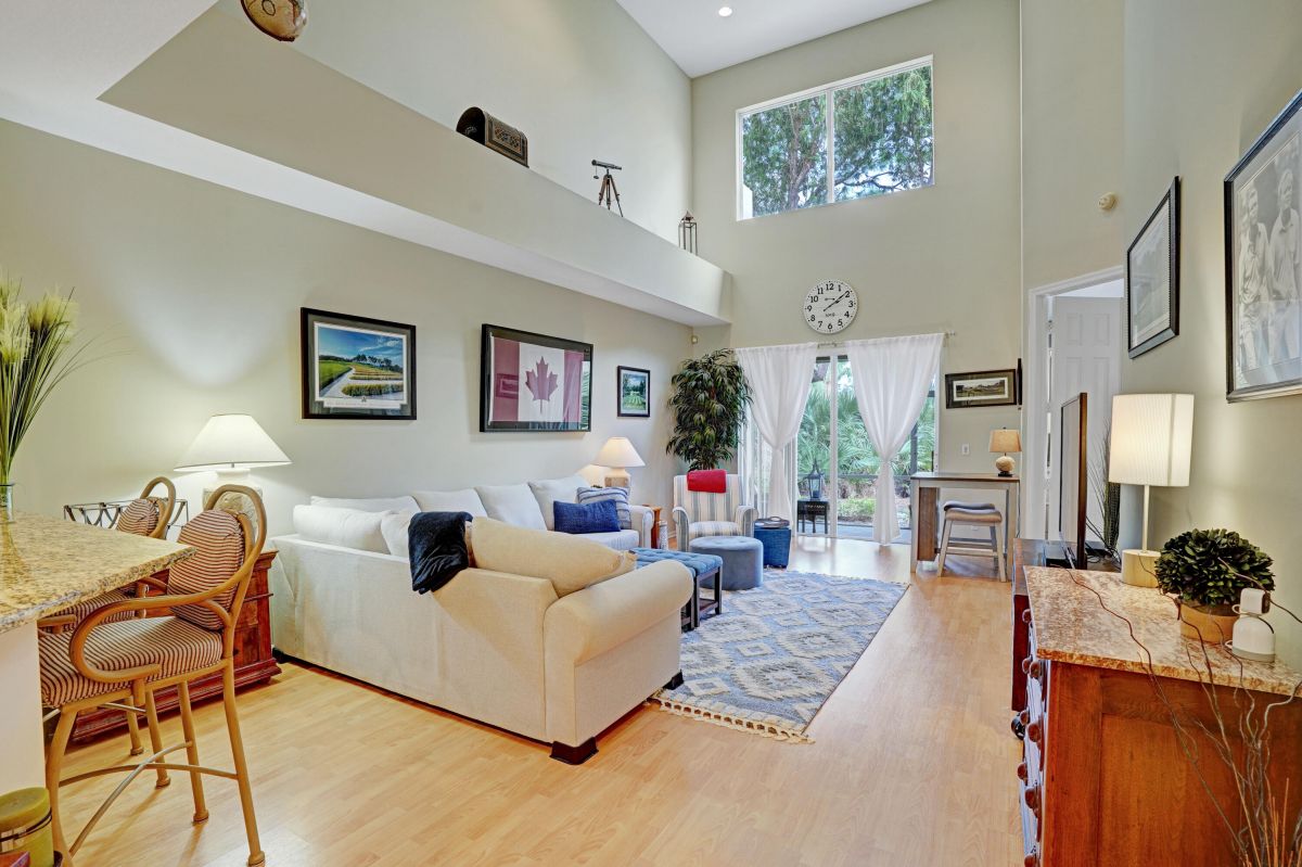Discover the ultimate lifestyle in this spacious townhome, perfectly situated on the PGA Village campus. Enjoy unparalleled access to the PGA Golf Club, shopping, and restaurants, all just moments away.This beautiful townhome features a one-car garage for convenient parking, a spacious eat-in kitchen perfect for culinary delights, and a main living area boasting soaring ceiling heights that create a sense of grandeur. The owner's bedroom suite and half bath are located on the first floor for ultimate convenience. A staircase leads to a private bedroom retreat upstairs, ideal for guests or family members. The PGA Village community offers a range of amenities, including a private pool, clubhouse, tennis and pickleball courts.