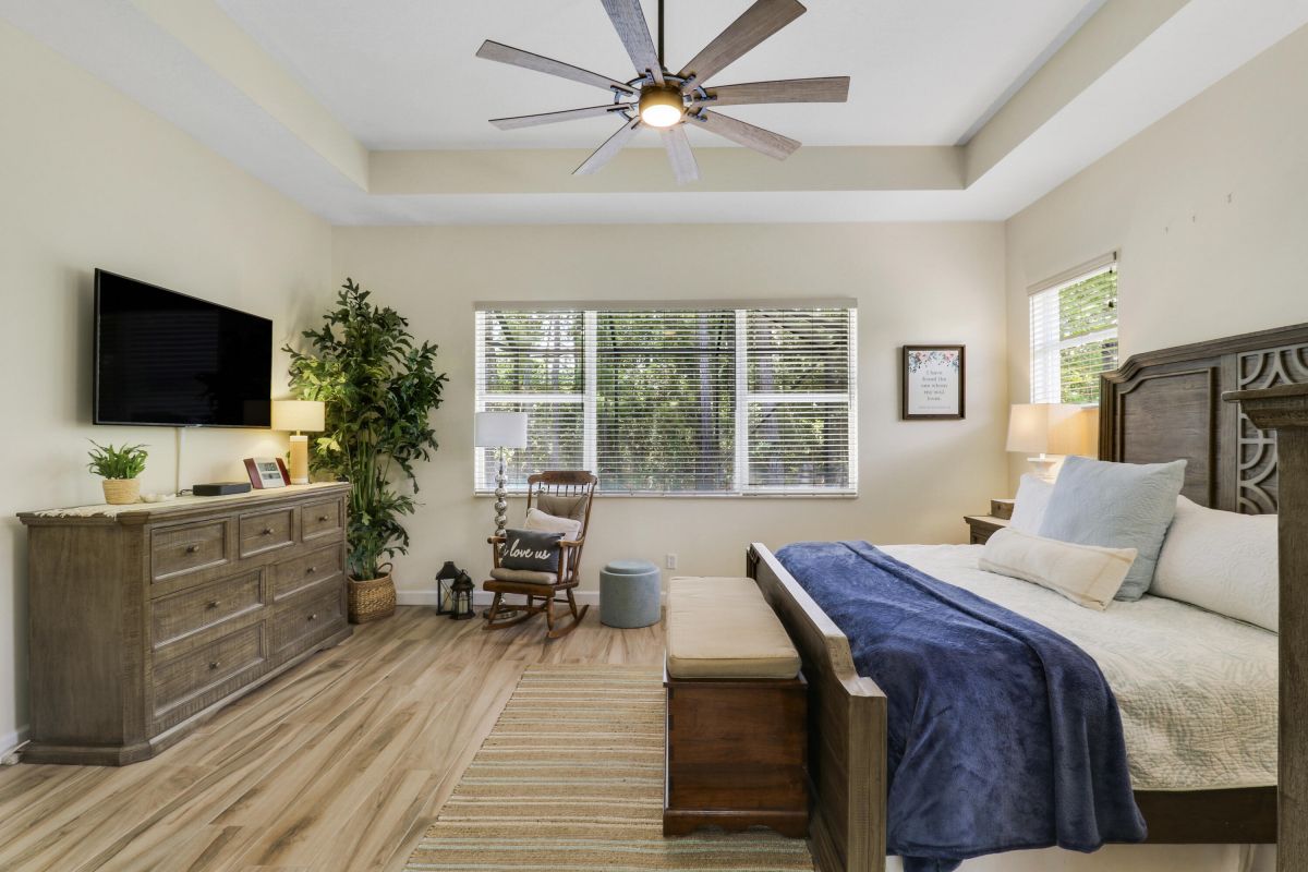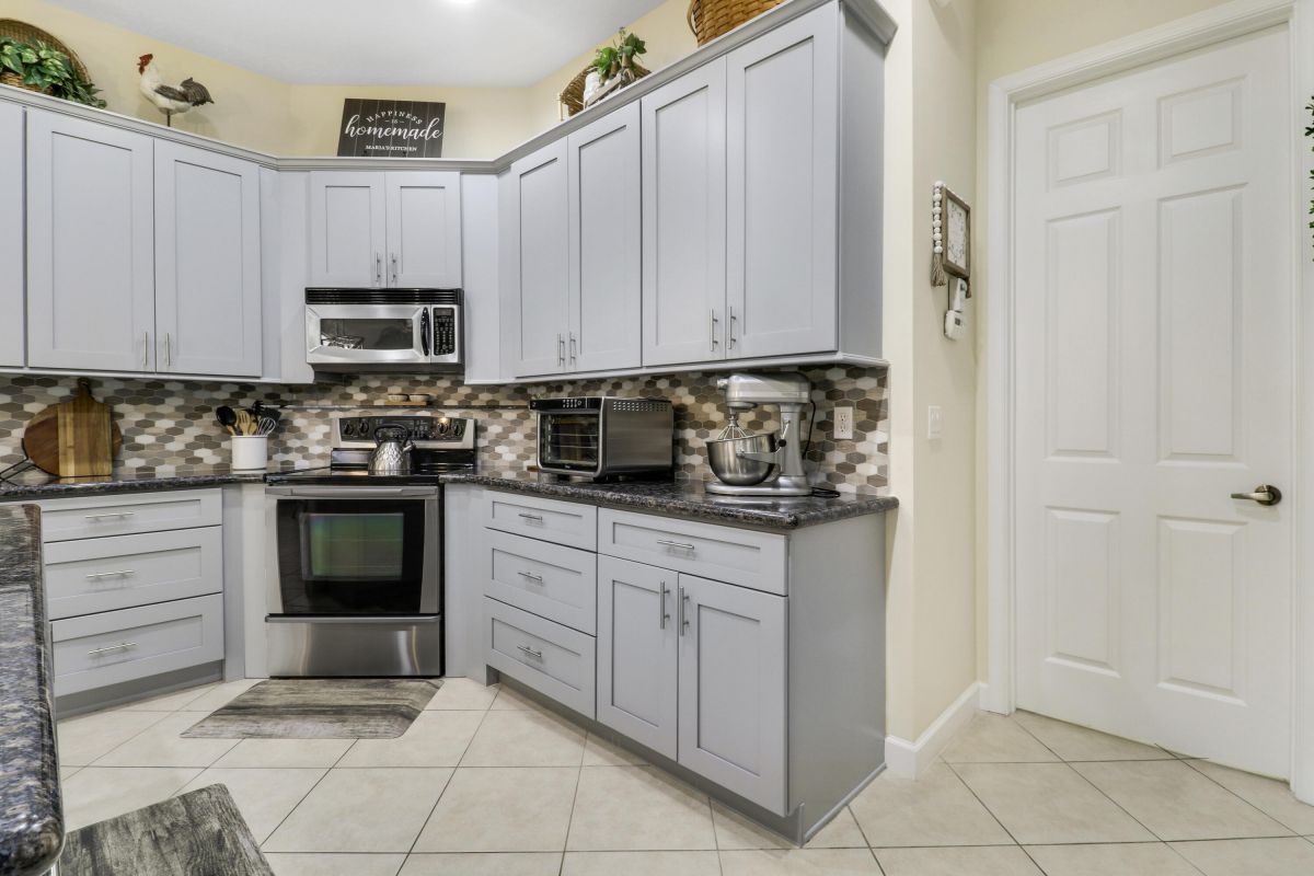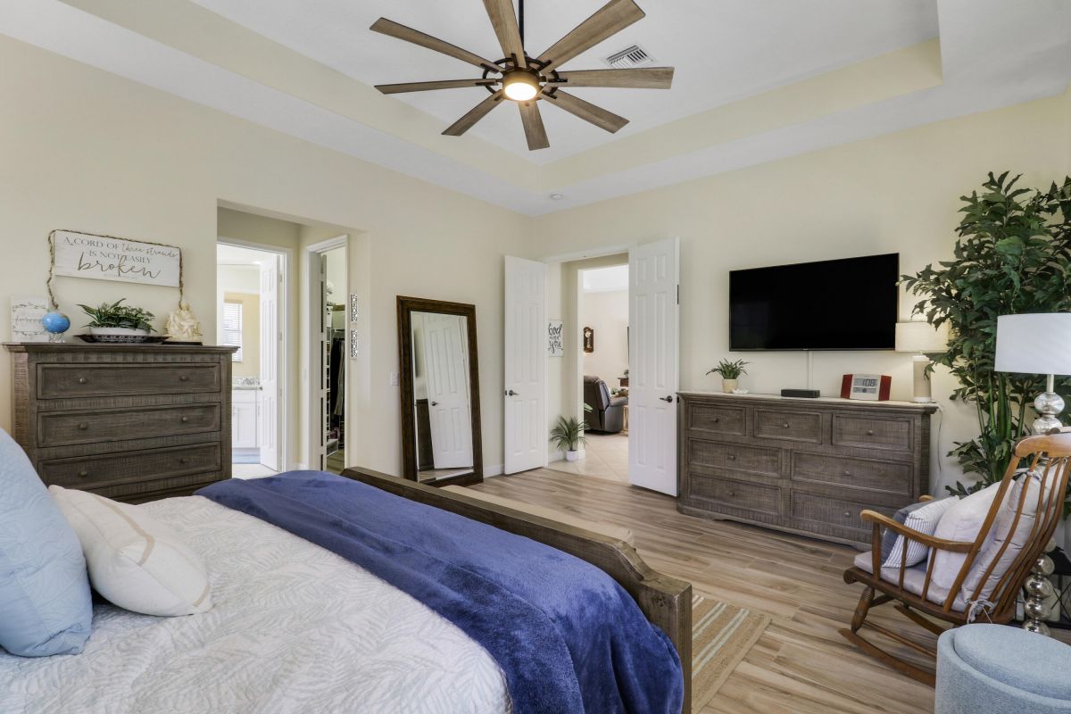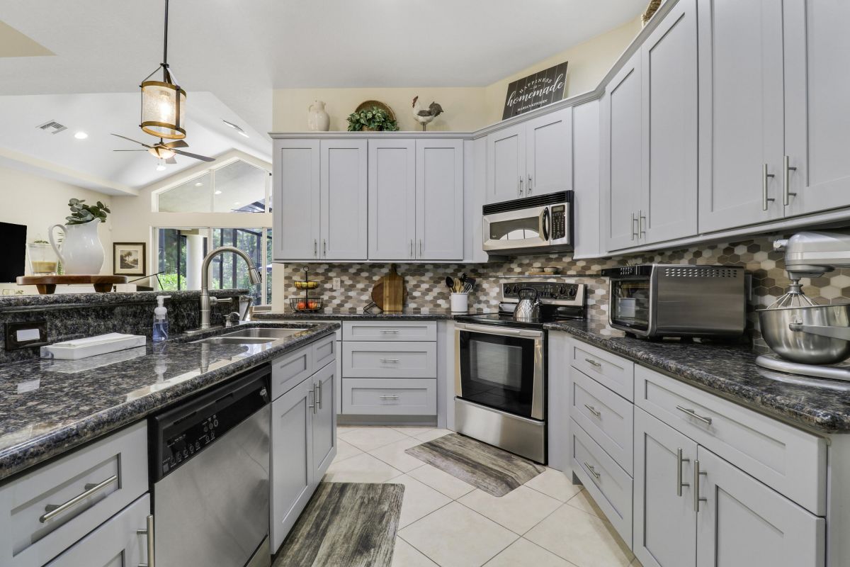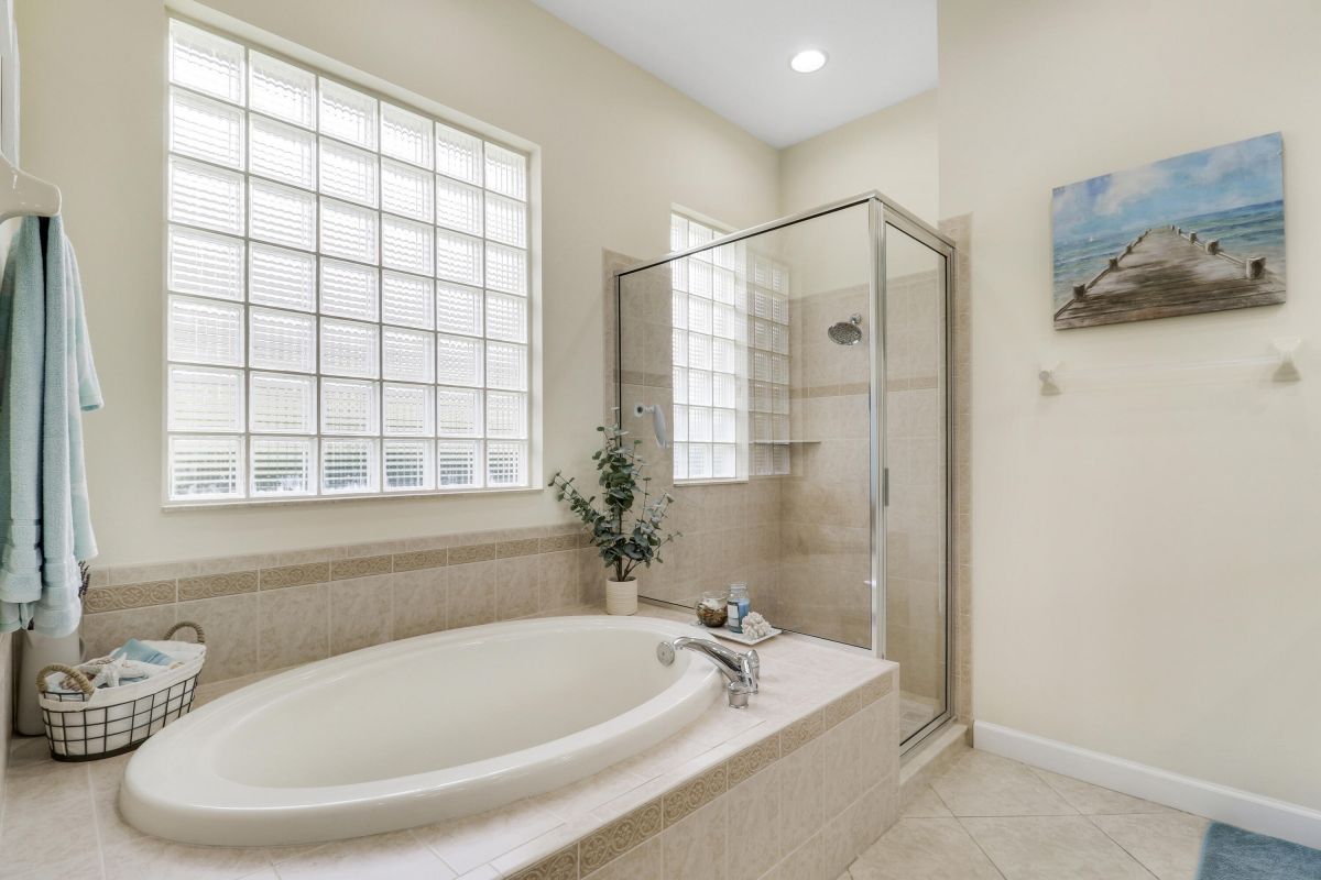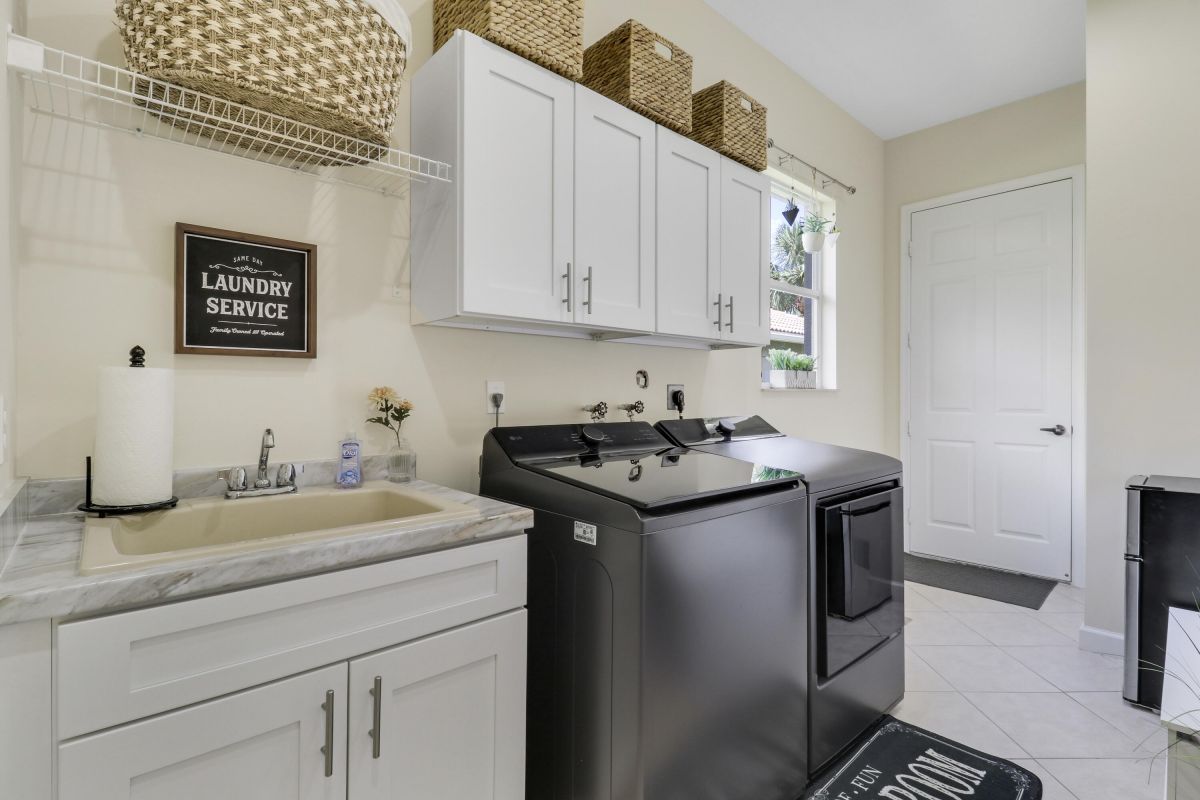 WELCOME HOME! Popular Fairview plan in PGA Village w/ NEW 2024 SALTWATER POOL & SPA! This 2BR+Den/2BA/2CG home has an open floor plan ideal for entertaining & modern living. Special features include tile flooring throughout, decorative glass entry front door, neutral interior paint, new refrigerator, washer, dryer and water heater, vaulted ceilings, updated cabinetry and more. The spacious kitchen features gray cabinetry, granite counters, tile backsplash, SS appliances, pantry closet and breakfast bar. Master Suite has large walk-in closets and a spa like ensuite w/ soaking tub, walk in shower and large vanity w/ dual sinks. The guest bedroom and den are both close to the hall bathroom. Spacious laundry room leads to the garage. The star of the show is the NEW POOL & SPA, built in 2024.