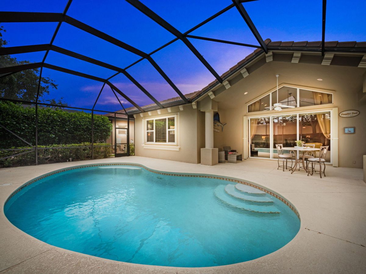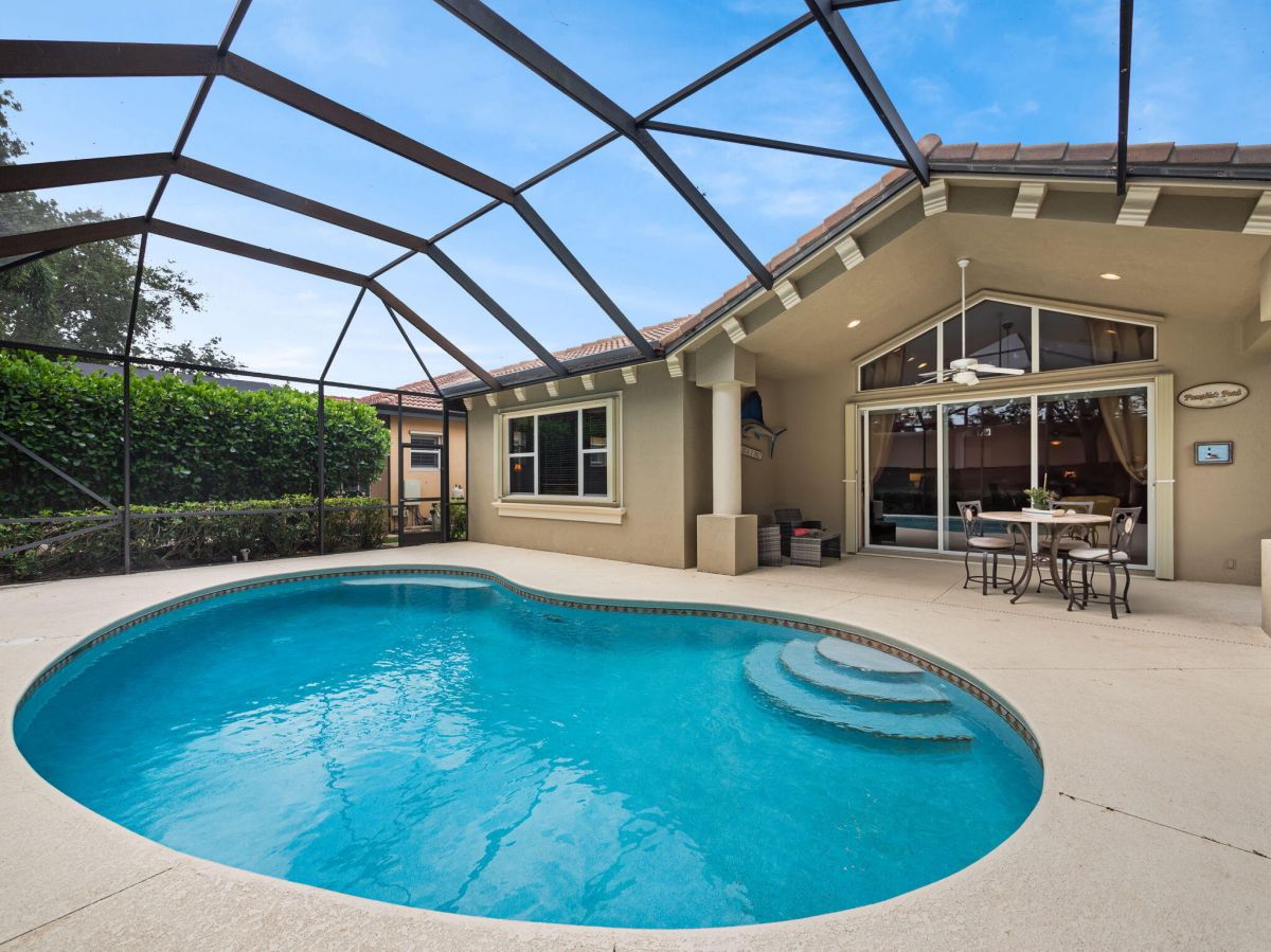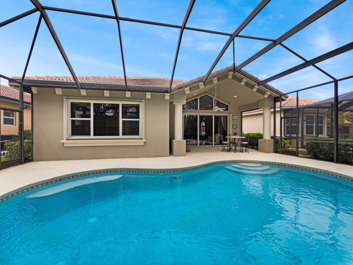 Pool Home Priced to Sell! Fantastic opportunity own this 2 possible 3 BD & 2 BA Fairview Model home found at PGA Village in the Maidstone Subdivision. Home has cathedral and tray ceilings and tile flooring. Floor plan is open and flowing, perfect for entertaining your friends and family. Large Kitchen with loads of cabinets and granite counter tops. Kitchen opens to the spacious dining area where large groups can easily dine together. From dining to reclining, the grand family room is the essence of the house w/large sliding doors that open to screen enclosed patio and pool. Grand Owner's Suite, generous Closets, Bath complete w/Roman tub, dual sinks, and separate shower. Comfortable 2nd BD plus Den/possible 3rd BD. HURRY UP!