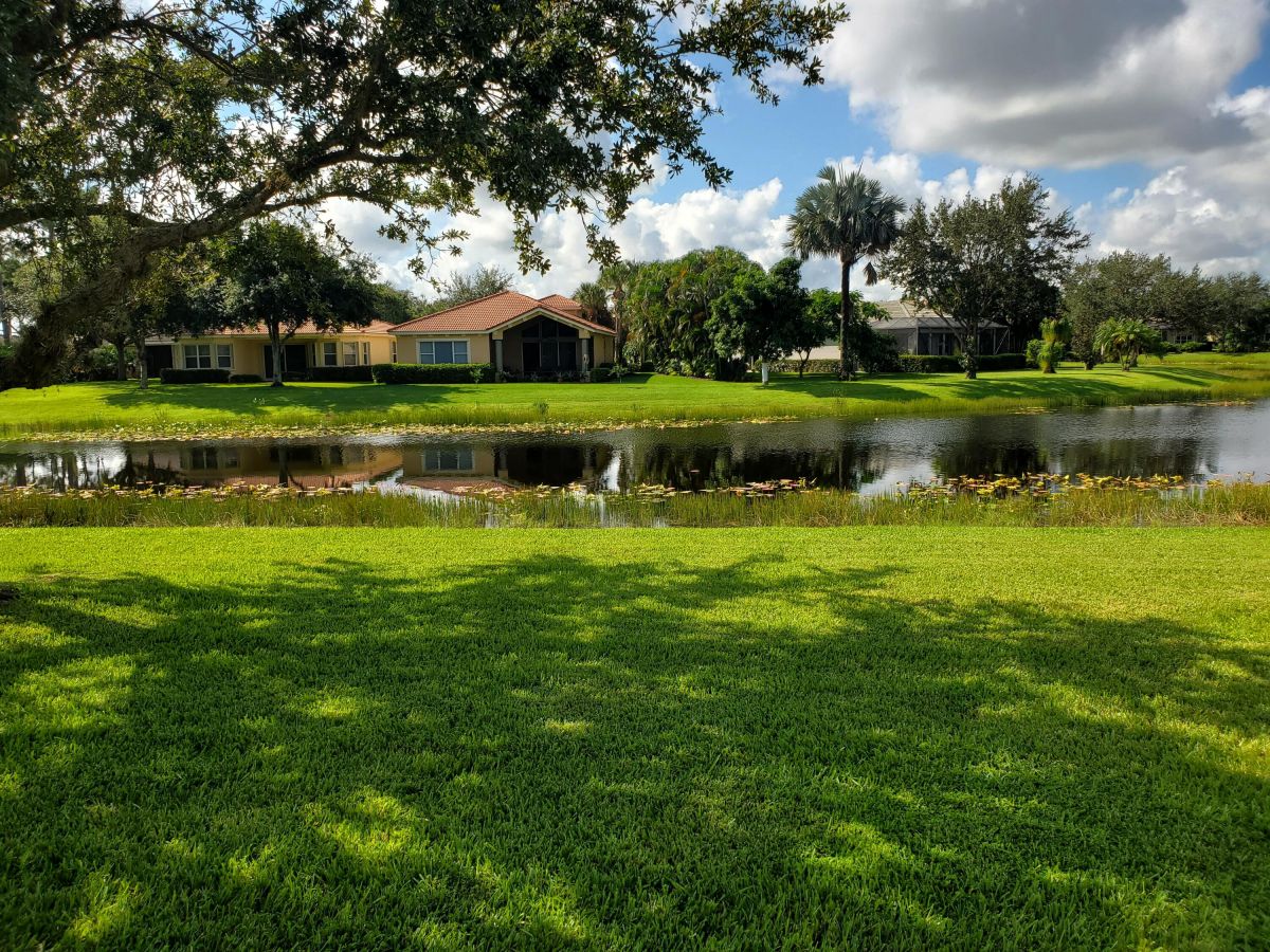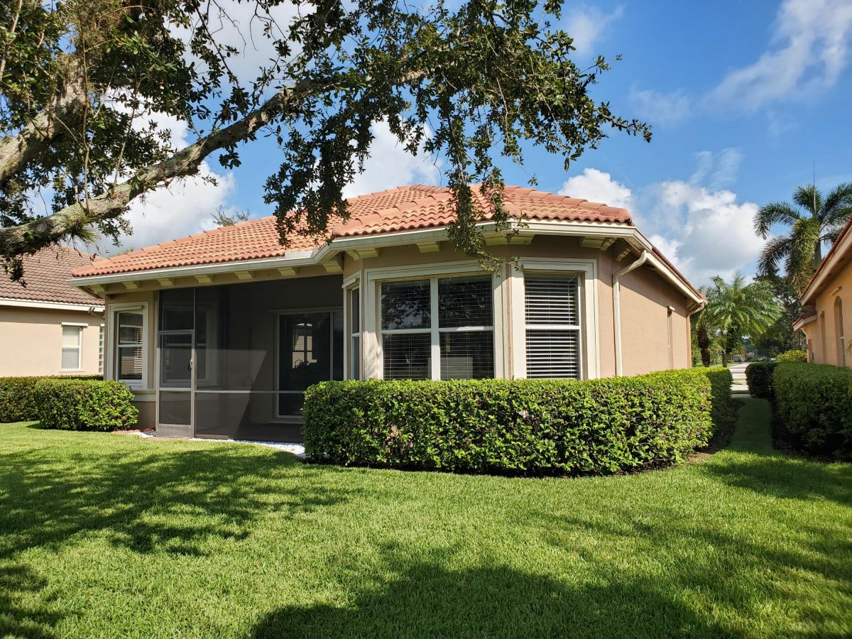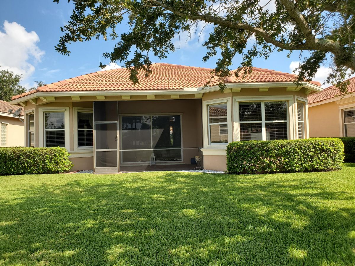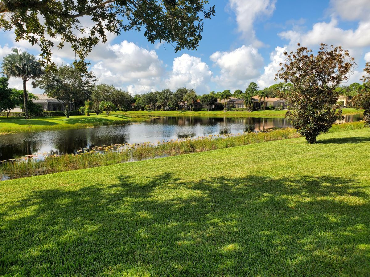 Location, Location, Location! A perfectly situated mediterranean ranch located in the beautiful quiet tree lined community of PGA Village. This popular 3-bedroom 2-bath 2-car garage mid ocean model sets on an expensive waterfront lot. Has newer a/c, s/s appliances, featuring granite counter tops, and 42'' cabinets. The primary suite has his and her walk-in closets. The Primary bath has a roman tub, separate shower and dual sink. HOA fees pay for all the fabulous amenities of the island club, including a heated Olympic size pool, jacuzzi, tennis, work out facility, ball room, arts and crafts, card rooms, billiard room, library, basketball, pickleball and lots of other activities. Also included is cable TV, internet, total lawn care, irrigation, 24 hr. security patrol and manned gates.