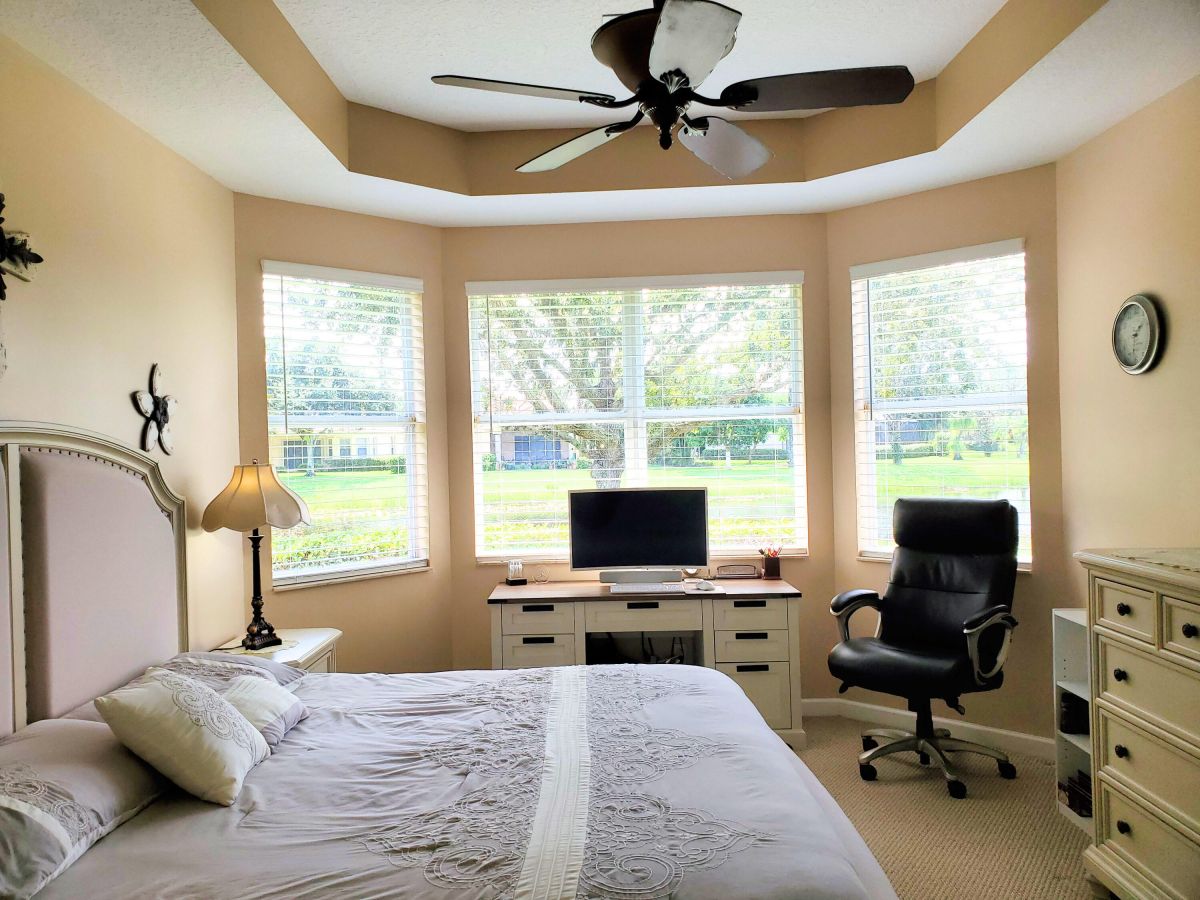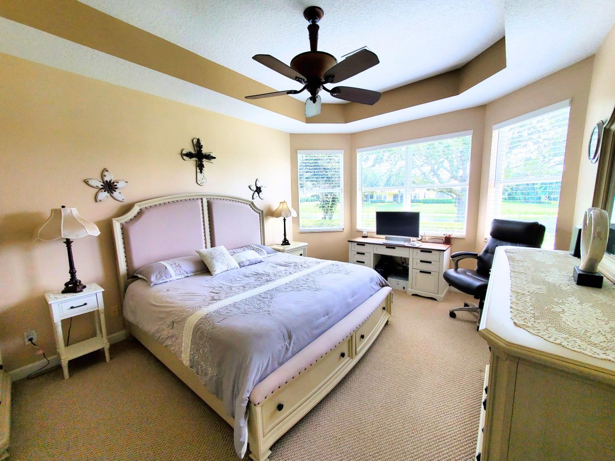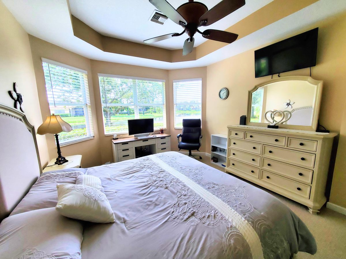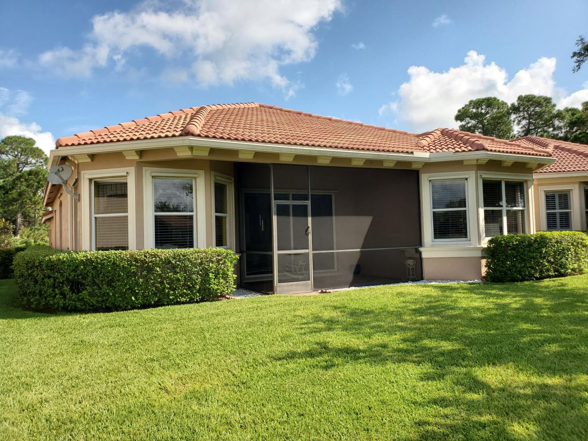Location, Location, Location! A perfectly situated mediterranean ranch located in the beautiful quiet tree lined community of PGA Village. This popular 3-bedroom 2-bath 2-car garage mid ocean model sets on an expensive waterfront lot. Has newer a/c, s/s appliances, featuring granite counter tops, and 42'' cabinets. The primary suite has his and her walk-in closets. The Primary bath has a roman tub, separate shower and dual sink. HOA fees pay for all the fabulous amenities of the island club, including a heated Olympic size pool, jacuzzi, tennis, work out facility, ball room, arts and crafts, card rooms, billiard room, library, basketball, pickleball and lots of other activities. Also included is cable TV, internet, total lawn care, irrigation, 24 hr. security patrol and manned gates.