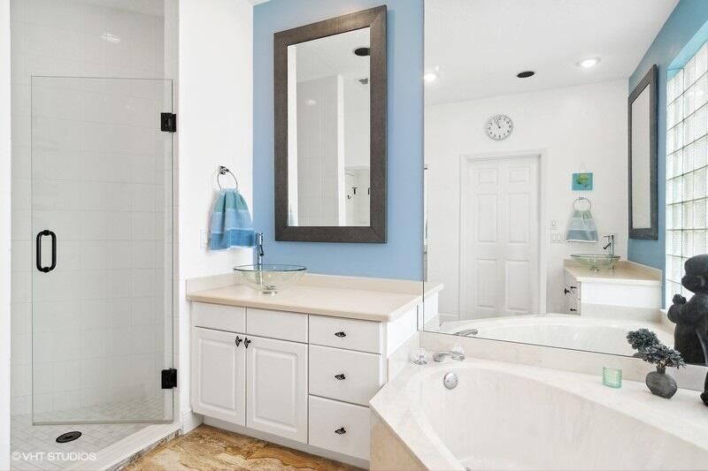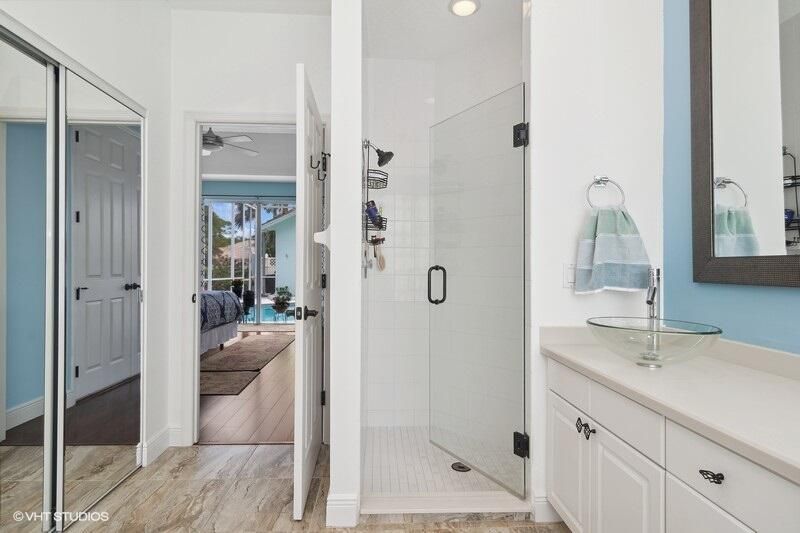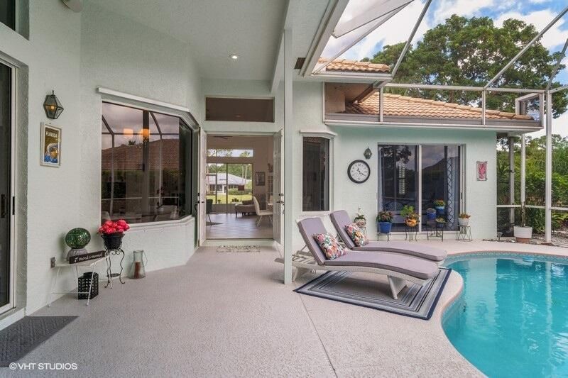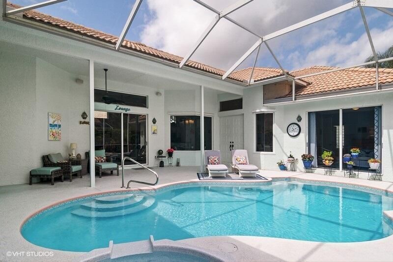 Very well maintained home with all the right upgrades. This 3 bedroom 3 baths includes a casita, separate entrance perfect for your adult kids, in-laws, and over night guests. Main suite has plantation shutters, walk-in closet with built-ins, bath with frameless shower & soaking tub. Open concept kitchen has 2 year new SS appliances with granite counter tops & adjacent to the family room that leads out to the covered screened lanai which houses a refreshing pool & hot tub. A separate screened patio area over-looks the lake & gives you the perfect peaceful coffee spot. Garage has an A/C office space perfect for working at home.