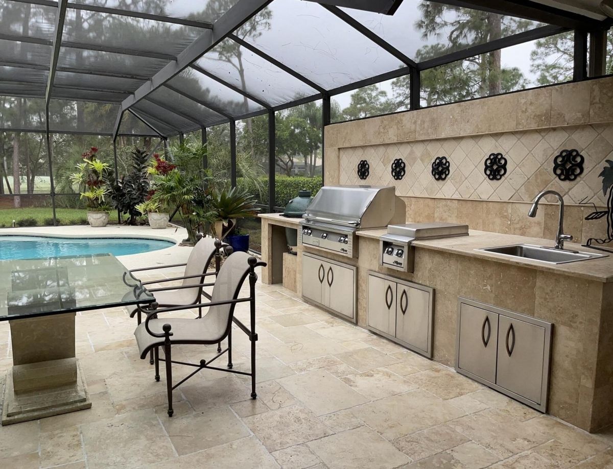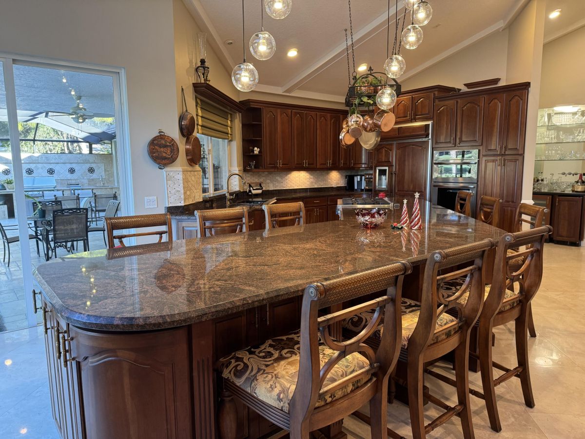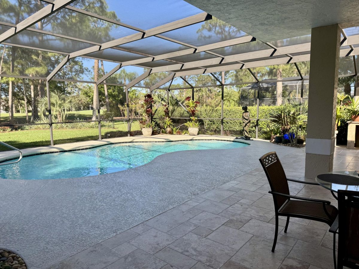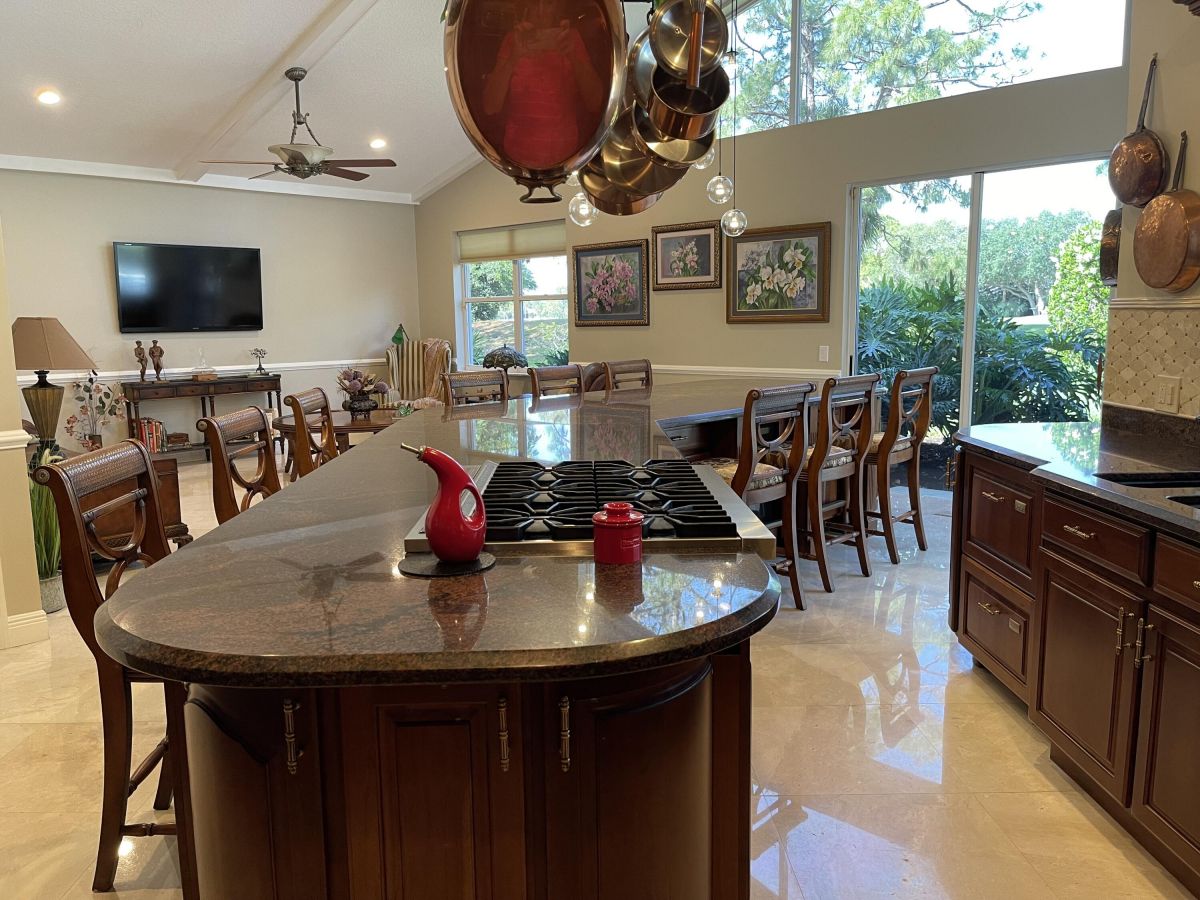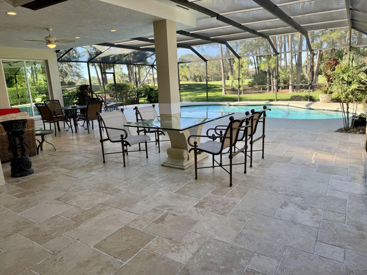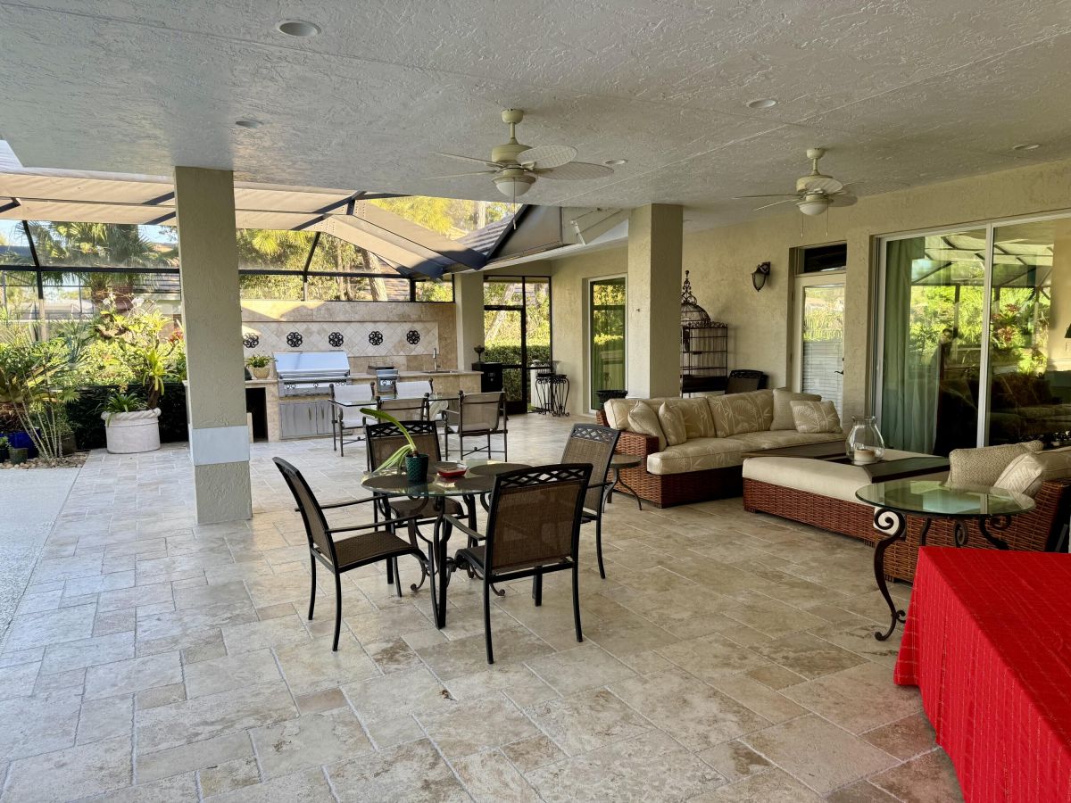 Casual elegance at its finest. Located in the prestigious PGA Village and situated on over 1/2 acre lot, on the private Legacy Golf course.This home was totally remodeled in 2006 with many timeless updates since. Designed with entertaining in mind, both indoors and out.Polished marble floors throughout, 8' interior doors, gourmet kitchen with a Viking gas cooktop, new LG Ovens, Newer 48' built-in fridge, Fisher-Paykel dishwashing drawers with an island that seats 9 comfortably, with cabinetry on both sides. The wet bar has a wine chiller an icemaker. and a crystal vessel sink. The covered patio area is an additional room! The summer kitchen has a Big Green Egg, 6 burner gas grill, 2 side burners and sink. The colors and materials are timeless and can be decorated in your style.