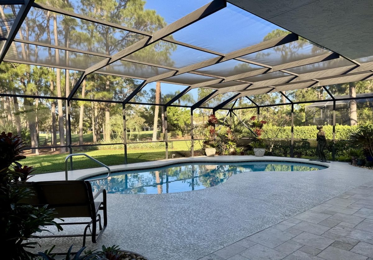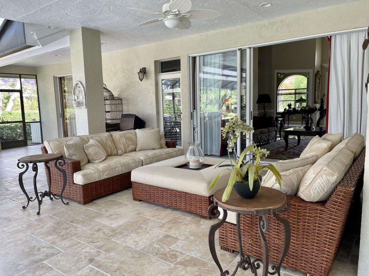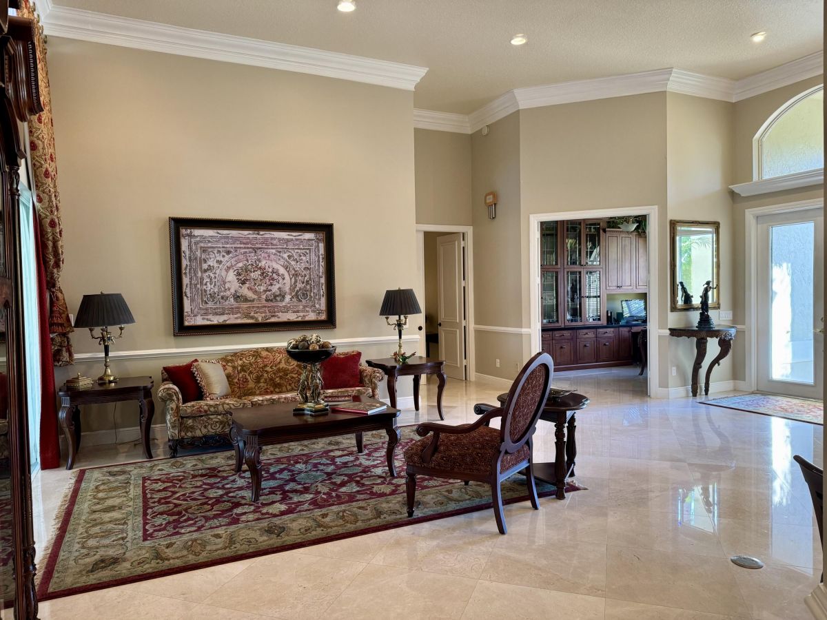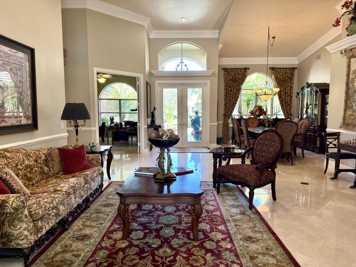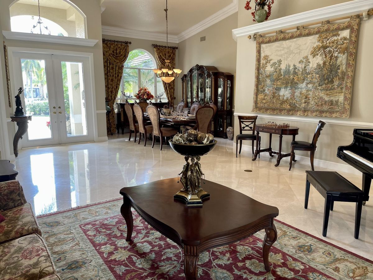 Casual elegance at its finest. Located in the prestigious PGA Village and situated on over 1/2 acre lot, on the private Legacy Golf course.This home was totally remodeled in 2006 with many timeless updates since. Designed with entertaining in mind, both indoors and out.Polished marble floors throughout, 8' interior doors, gourmet kitchen with a Viking gas cooktop, new LG Ovens, Newer 48' built-in fridge, Fisher-Paykel dishwashing drawers with an island that seats 9 comfortably, with cabinetry on both sides. The wet bar has a wine chiller an icemaker. and a crystal vessel sink. The covered patio area is an additional room! The summer kitchen has a Big Green Egg, 6 burner gas grill, 2 side burners and sink. The colors and materials are timeless and can be decorated in your style.