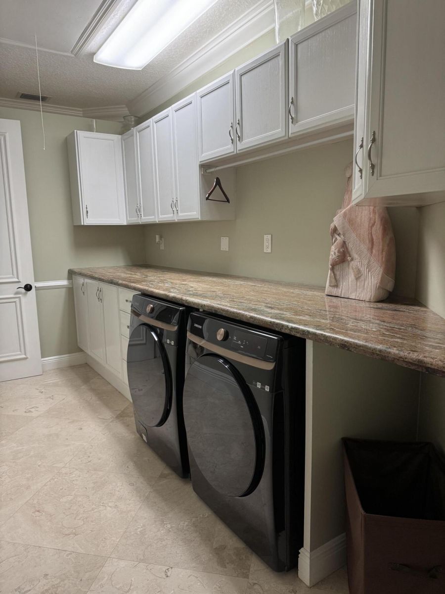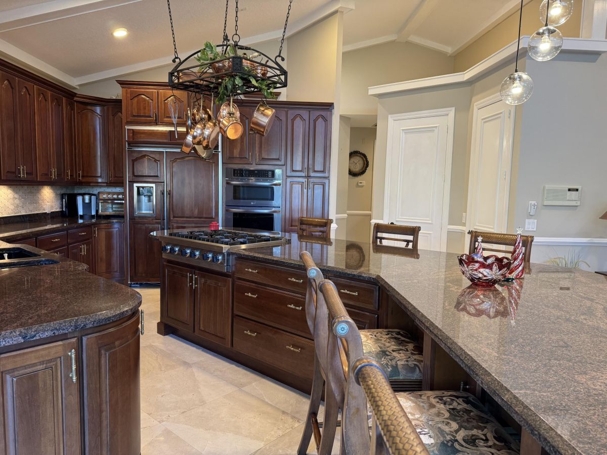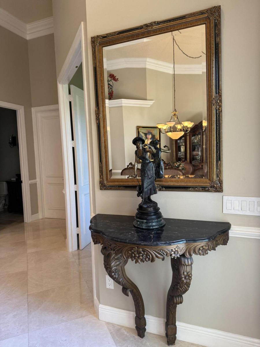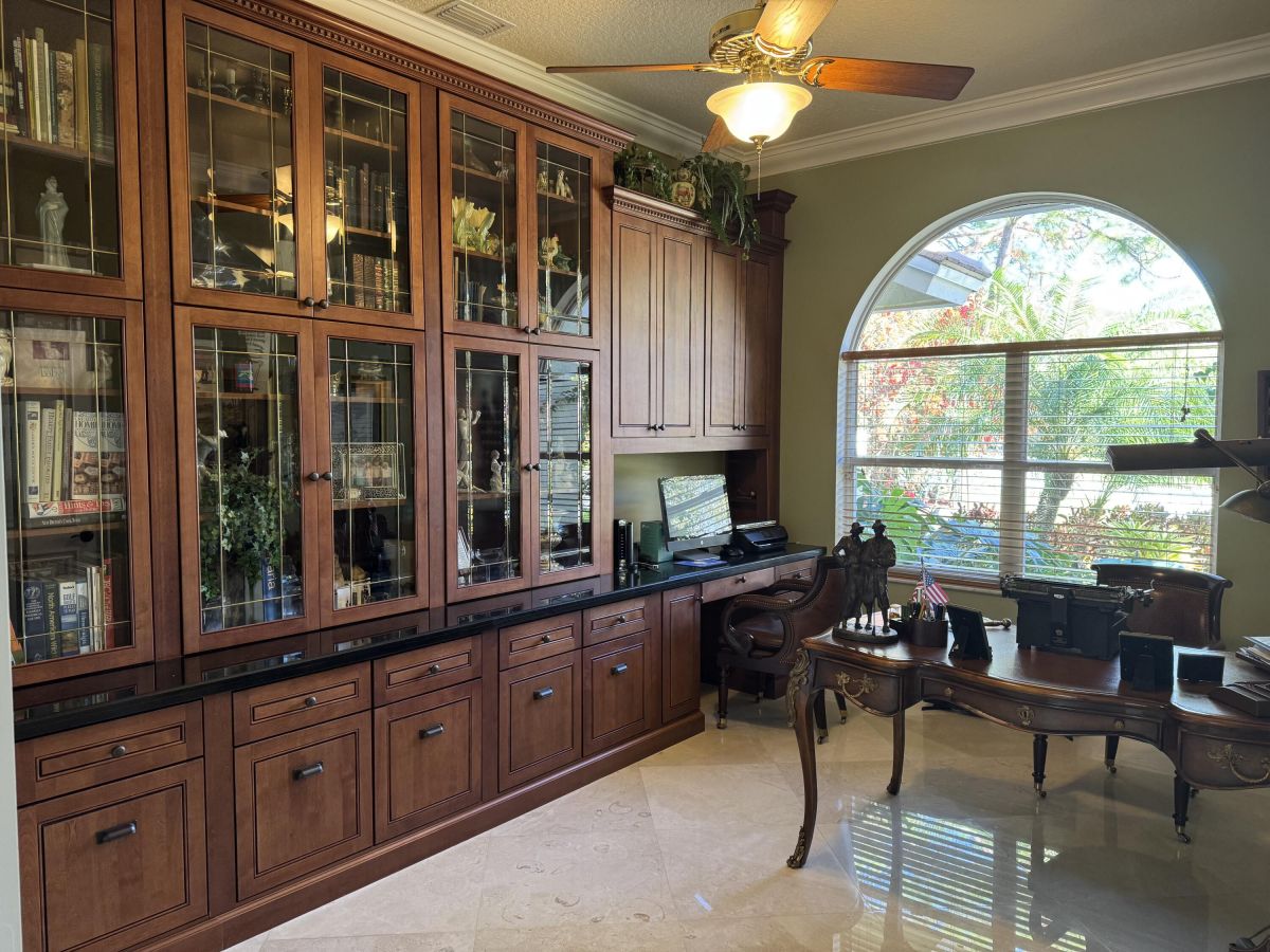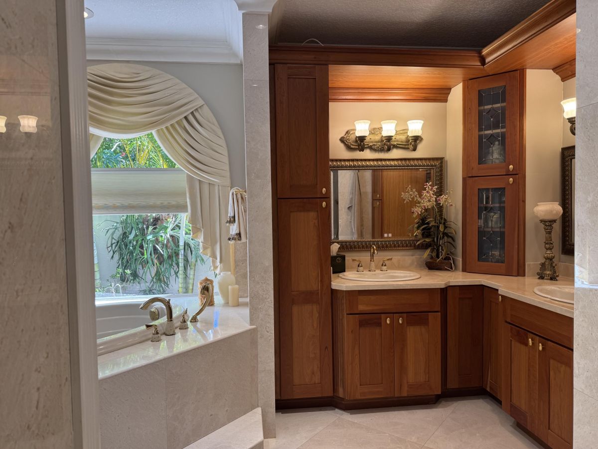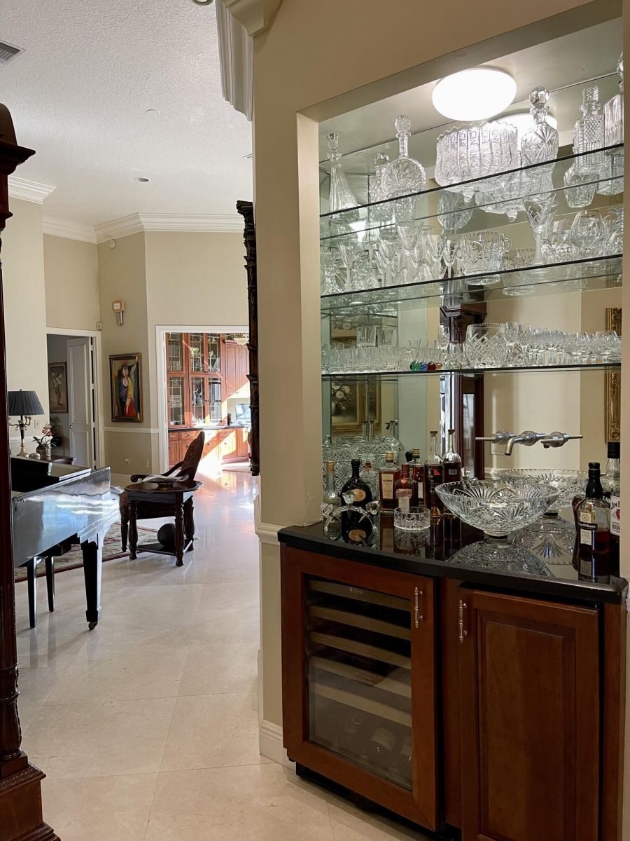 Casual elegance at its finest. Located in the prestigious PGA Village and situated on over 1/2 acre lot, on the private Legacy Golf course.This home was totally remodeled in 2006 with many timeless updates since. Designed with entertaining in mind, both indoors and out.Polished marble floors throughout, 8' interior doors, gourmet kitchen with a Viking gas cooktop, new LG Ovens, Newer 48' built-in fridge, Fisher-Paykel dishwashing drawers with an island that seats 9 comfortably, with cabinetry on both sides. The wet bar has a wine chiller an icemaker. and a crystal vessel sink. The covered patio area is an additional room! The summer kitchen has a Big Green Egg, 6 burner gas grill, 2 side burners and sink. The colors and materials are timeless and can be decorated in your style.