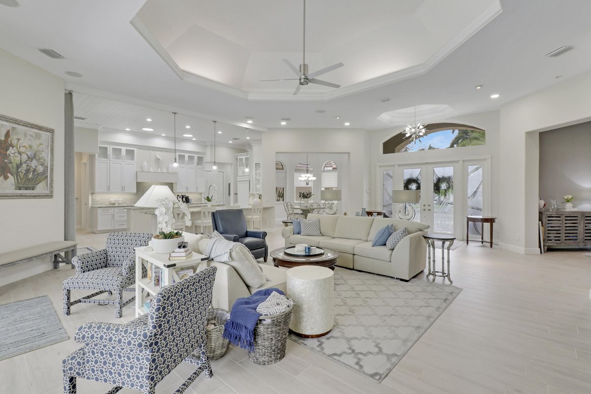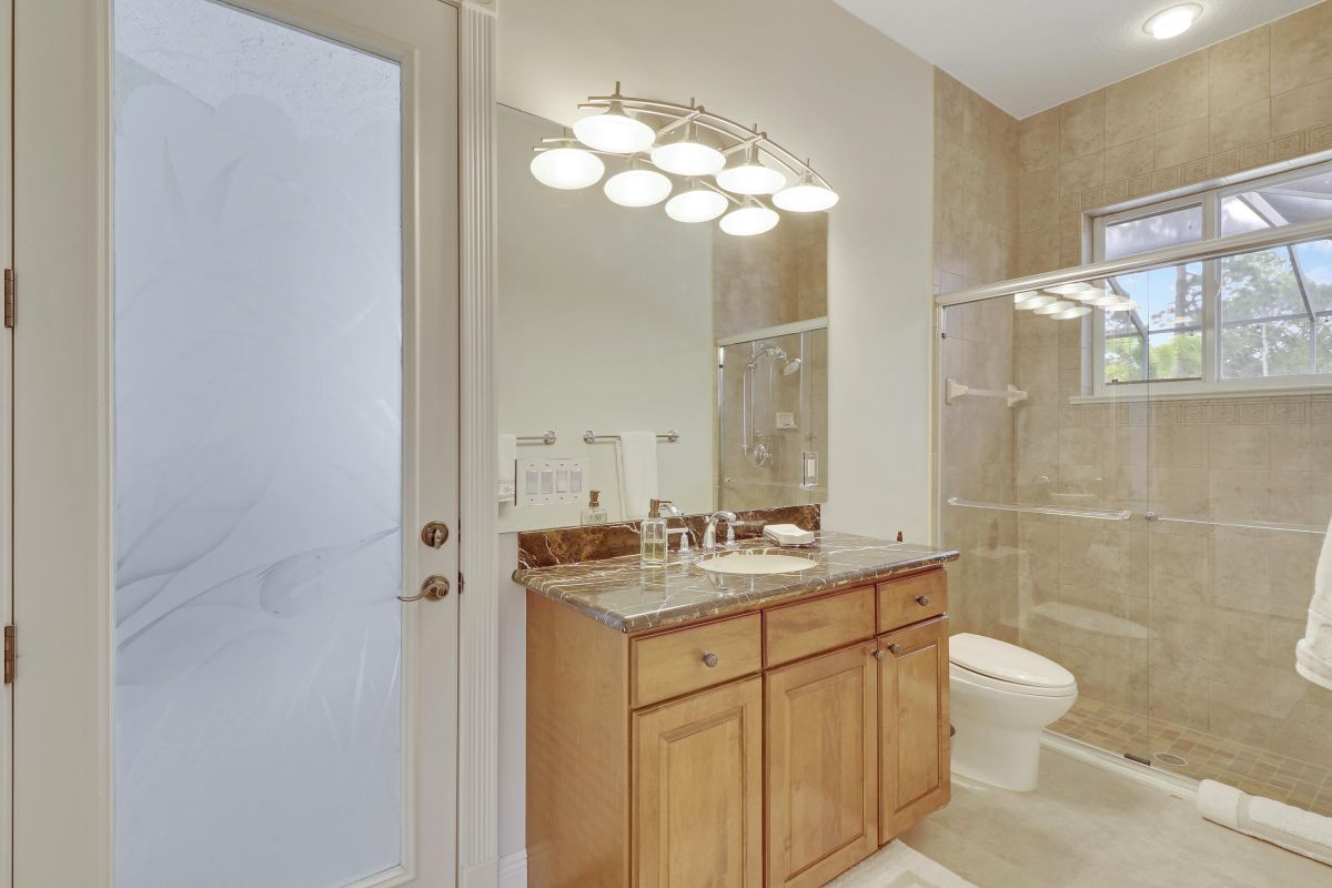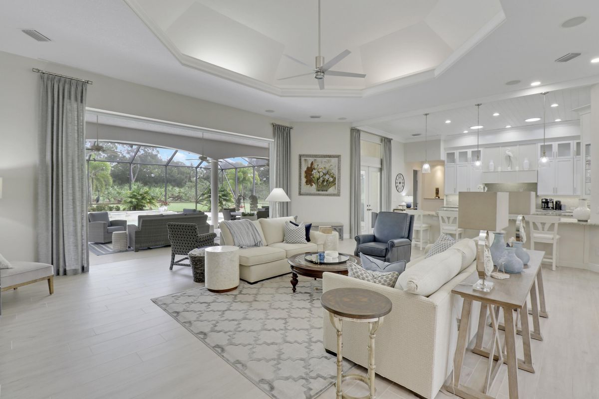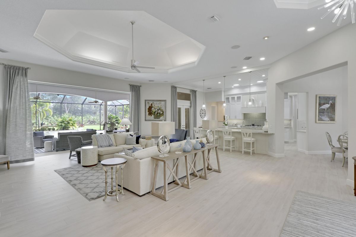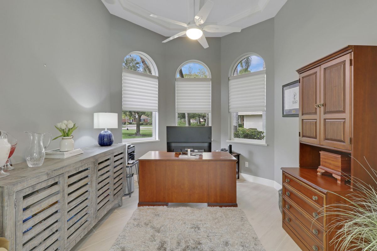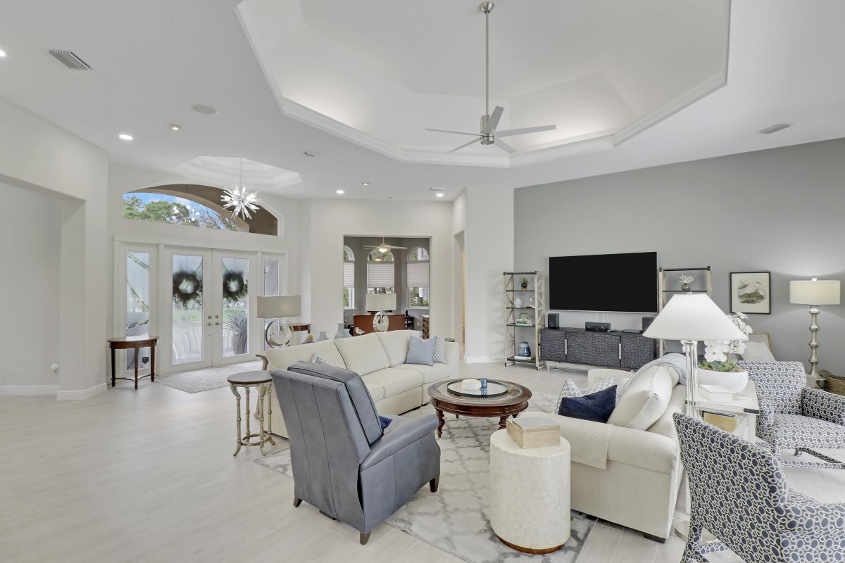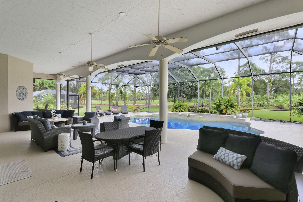 PARADISE FOUND! SPECTACULAR 3BR+DEN/3.5BA/3CG POOL HOME NESTLED ON A GOLF FRONT ESTATE LOT IN THE HEART OF PGA VILLAGE! This custom built great room floor plan is brimming with upgrades and has been recently renovated with elegant and sophisticated finishes around every turn. The minute you enter you will begin to notice some of the many special features including decorative glass insert front doors, wood-look tile through the main living areas, volume ceiling in the great room, built in speakers, pocketing living room doors seamlessly blend indoor & outdoor living, LED hihats, custom light fixtures & draperies, neutral interior paint, charming dining area, solid core doors, crown moldings and expansive views of the 1st and 2nd holes of The Legacy Golf Course.