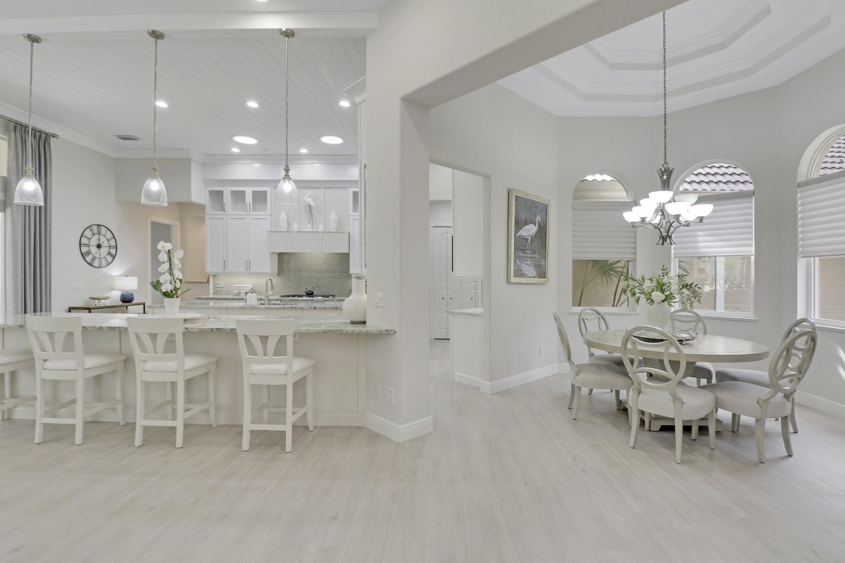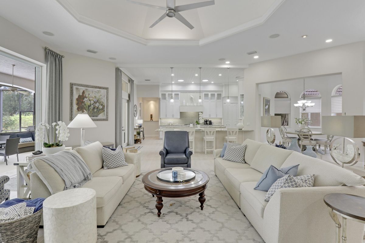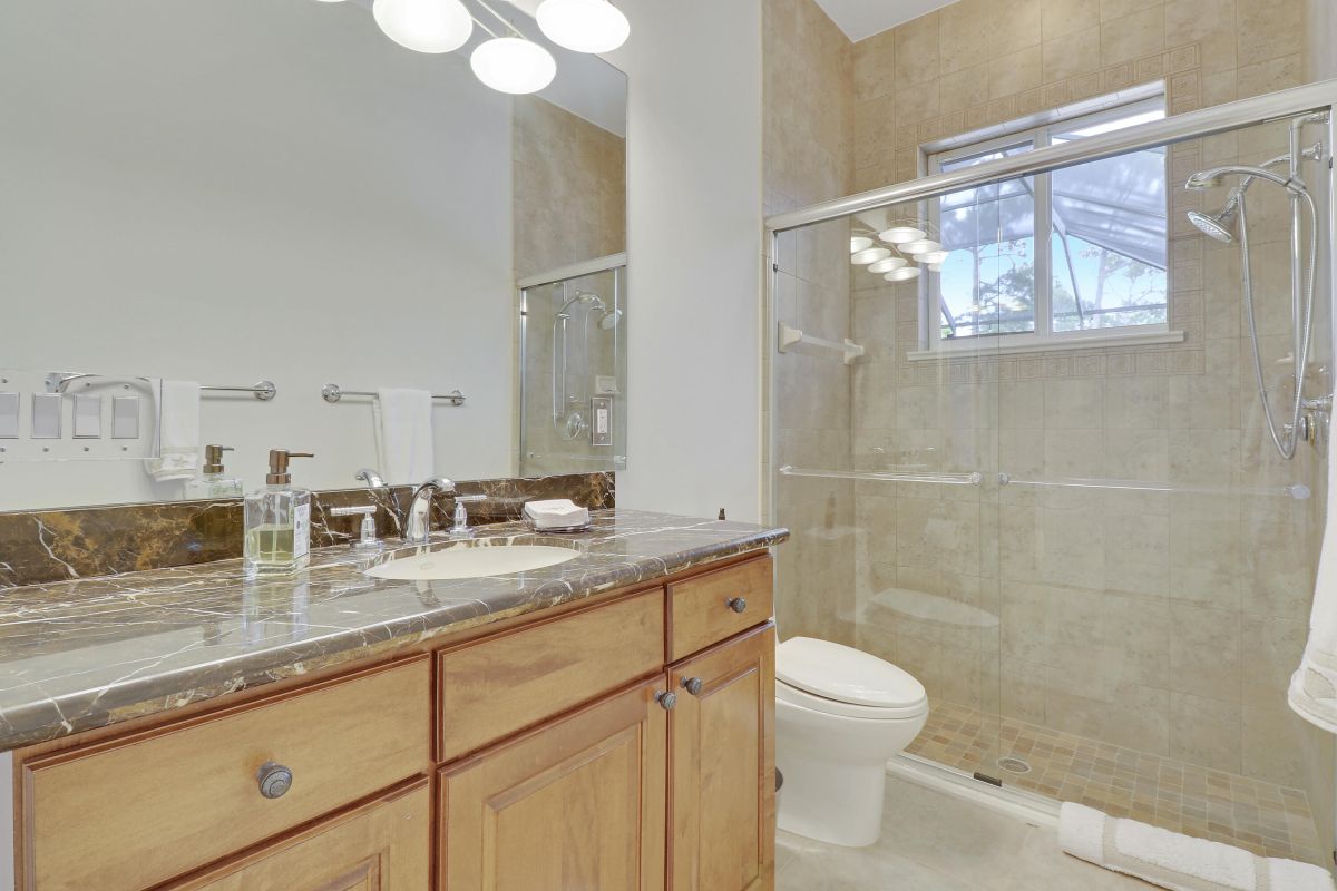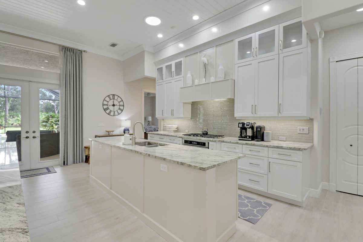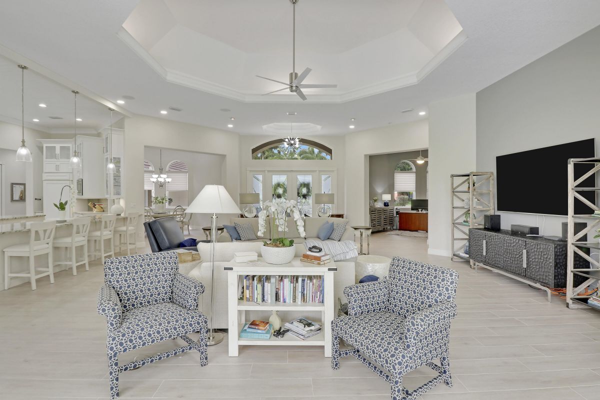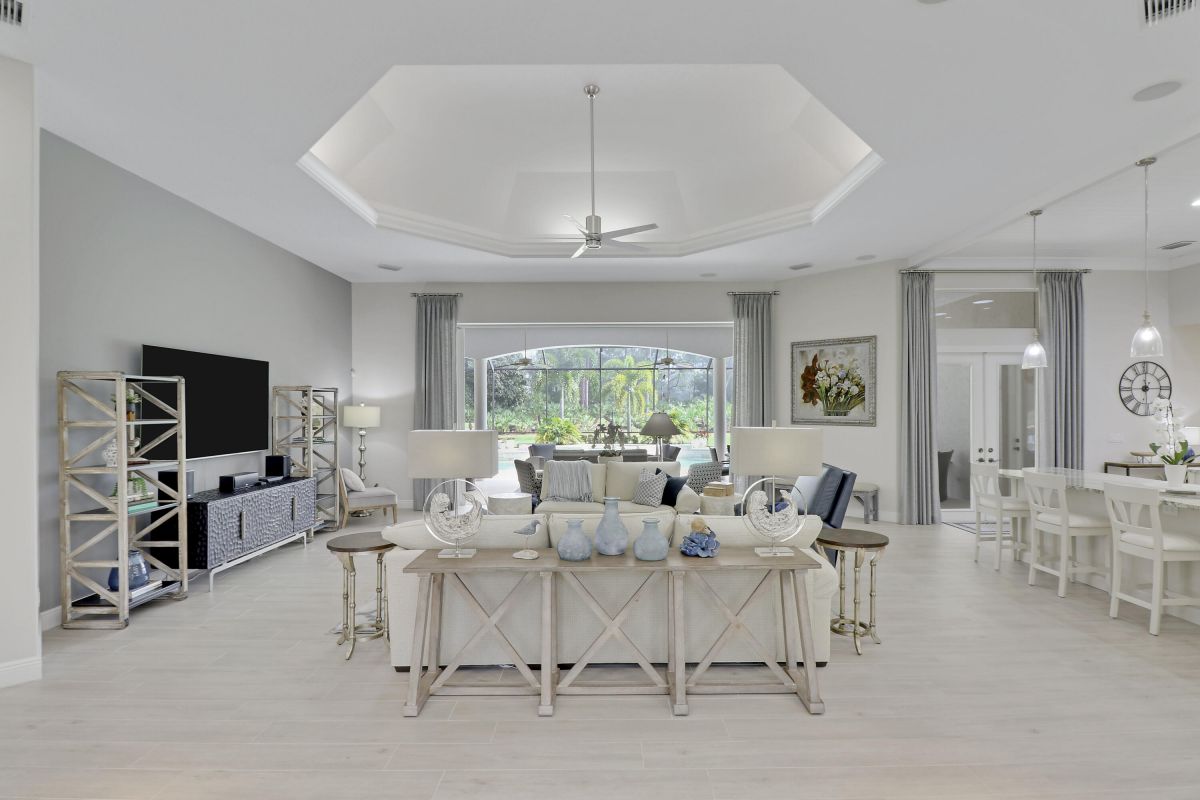 PARADISE FOUND! SPECTACULAR 3BR+DEN/3.5BA/3CG POOL HOME NESTLED ON A GOLF FRONT ESTATE LOT IN THE HEART OF PGA VILLAGE! This custom built great room floor plan is brimming with upgrades and has been recently renovated with elegant and sophisticated finishes around every turn. The minute you enter you will begin to notice some of the many special features including decorative glass insert front doors, wood-look tile through the main living areas, volume ceiling in the great room, built in speakers, pocketing living room doors seamlessly blend indoor & outdoor living, LED hihats, custom light fixtures & draperies, neutral interior paint, charming dining area, solid core doors, crown moldings and expansive views of the 1st and 2nd holes of The Legacy Golf Course.