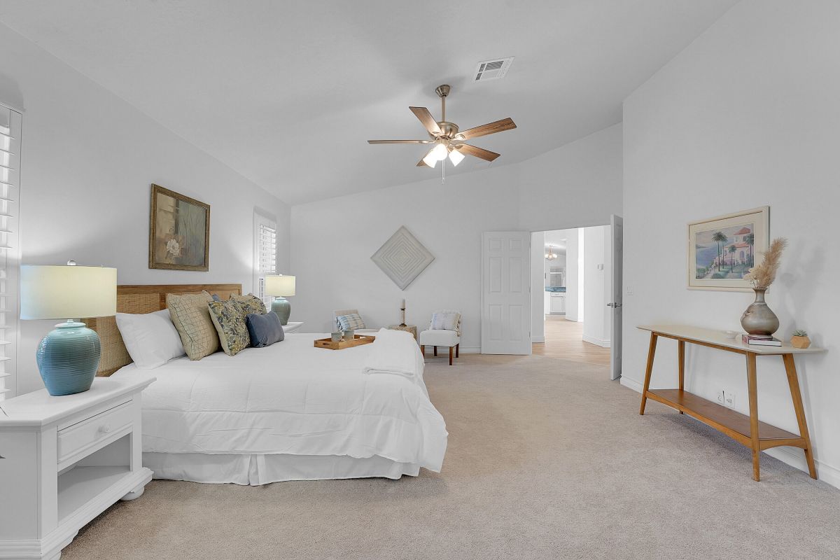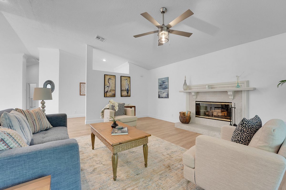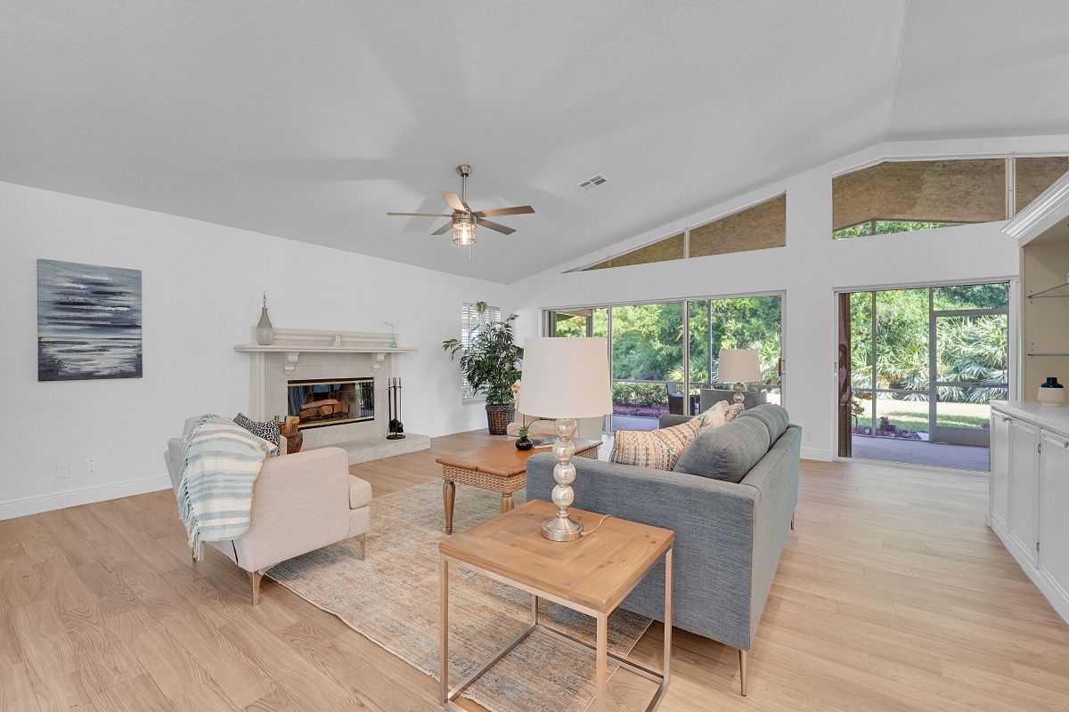 **SIGNIFIGANT PRICE REDUCTION FOR CASH OFFERS ONLY** Interior freshly painted and many updates completed since originally listed. Three spacious bedrooms and 3 Full Bathrooms., including a cabana bath and a ''Jack & Jill'' bath adjacent to Bedroom 2. Large, open home with many built-ins and 5 sky-lights. Beautiful porcelain plank flooring in main living areas, carpet in bedrooms. Real wood-burning fireplace in living room. Granite counters and stainless steel appliances in kitchen. Large screened patio overlooks private back yard with room for a pool. Located on Legends golf course in PGA Village. Roof 2016, AC 2010. Miami-Dade rated accordion hurricane shutters throughout. HOA covers lawncare, pest control, cable, high-speed internet, security, etc