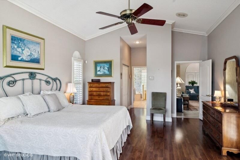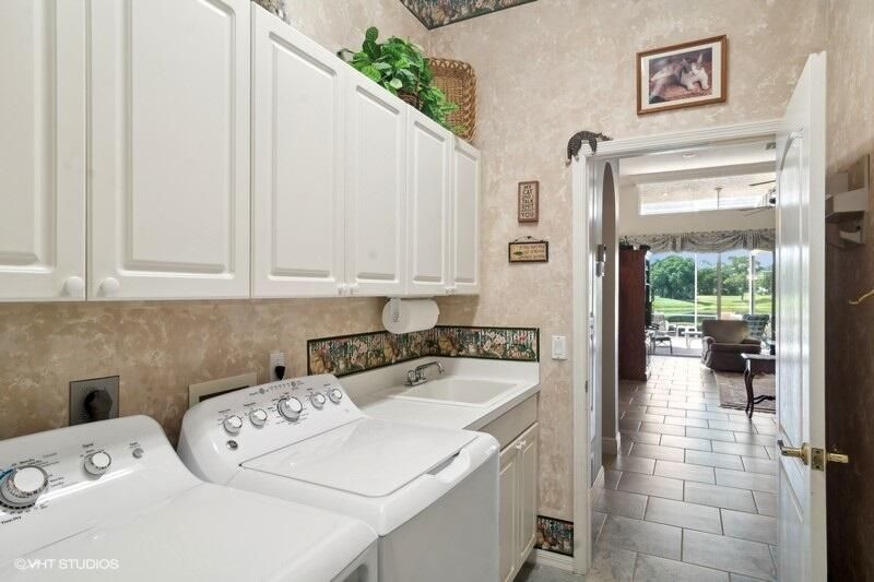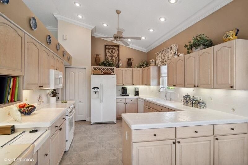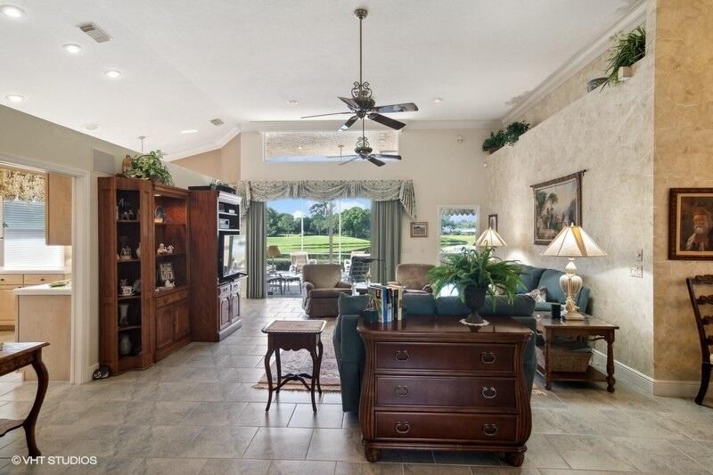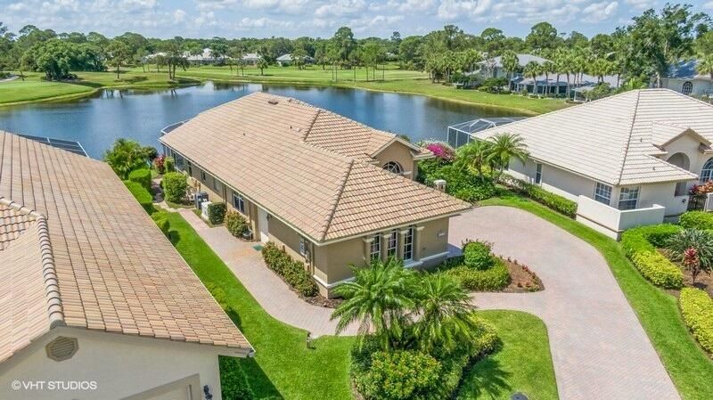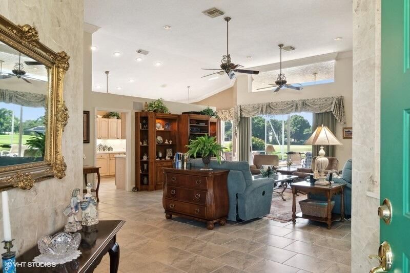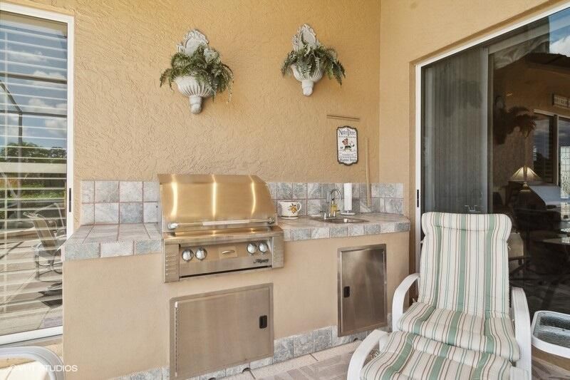 NEW ROOF WITH DOUBLE UNDERLAYMENT INSTALLED IN 2023. Don't miss this large home located in a serene cul-de-sac with spectacular lake & golf views. Original owners have maintained this home impeccably. Expanded Sawgrass floor plan offers three bedrooms (3rd being used as office with built-ins) 2 full baths, great room, formal dining room, & a large bright kitchen with a breakfast area has views to the covered screened lanai which houses a summer kitchen for all your entertaining needs & relaxing spa overlooking the beautiful lake & The Legacy Golf Course. Additional features include: 500 ga. propane tank, WHOLE HOUSE GENERATOR, central vac, impact glass on the den window & main bedroom window, 3M Film on all other windows, water purification system & surround system throughout