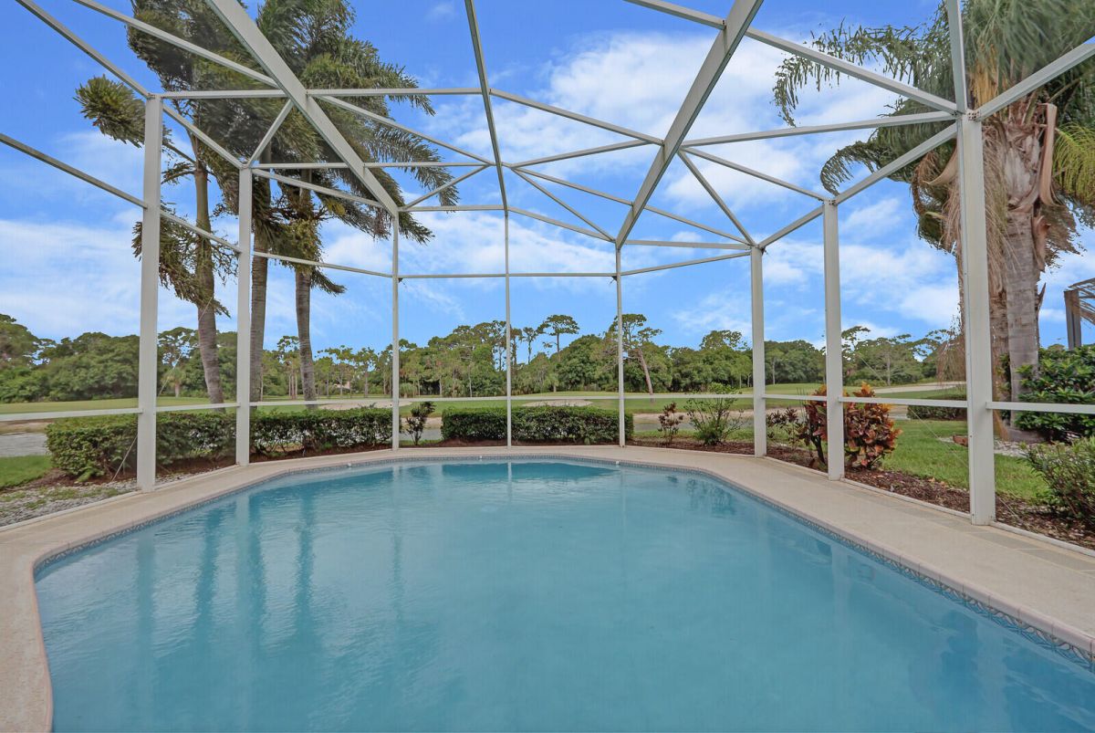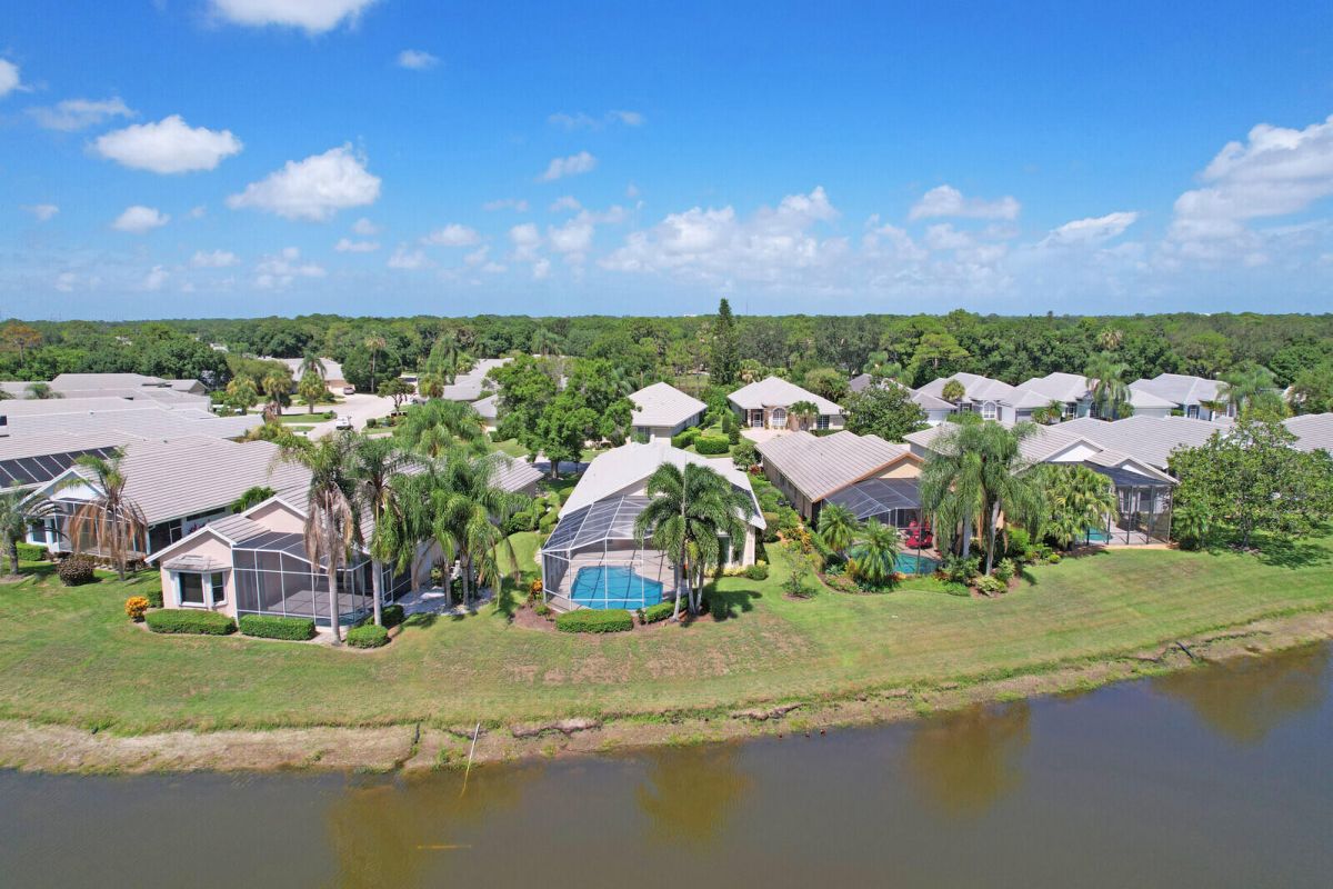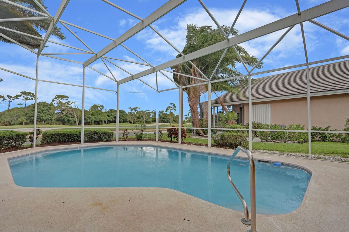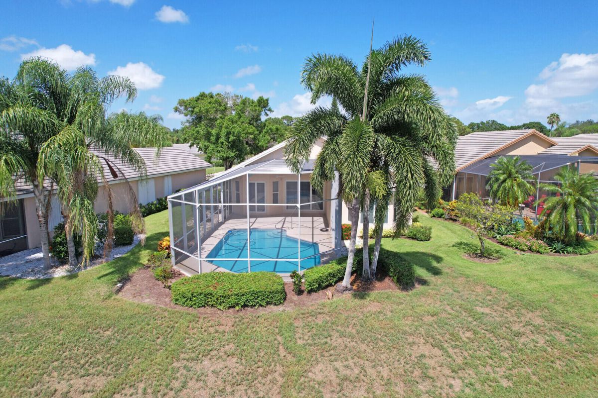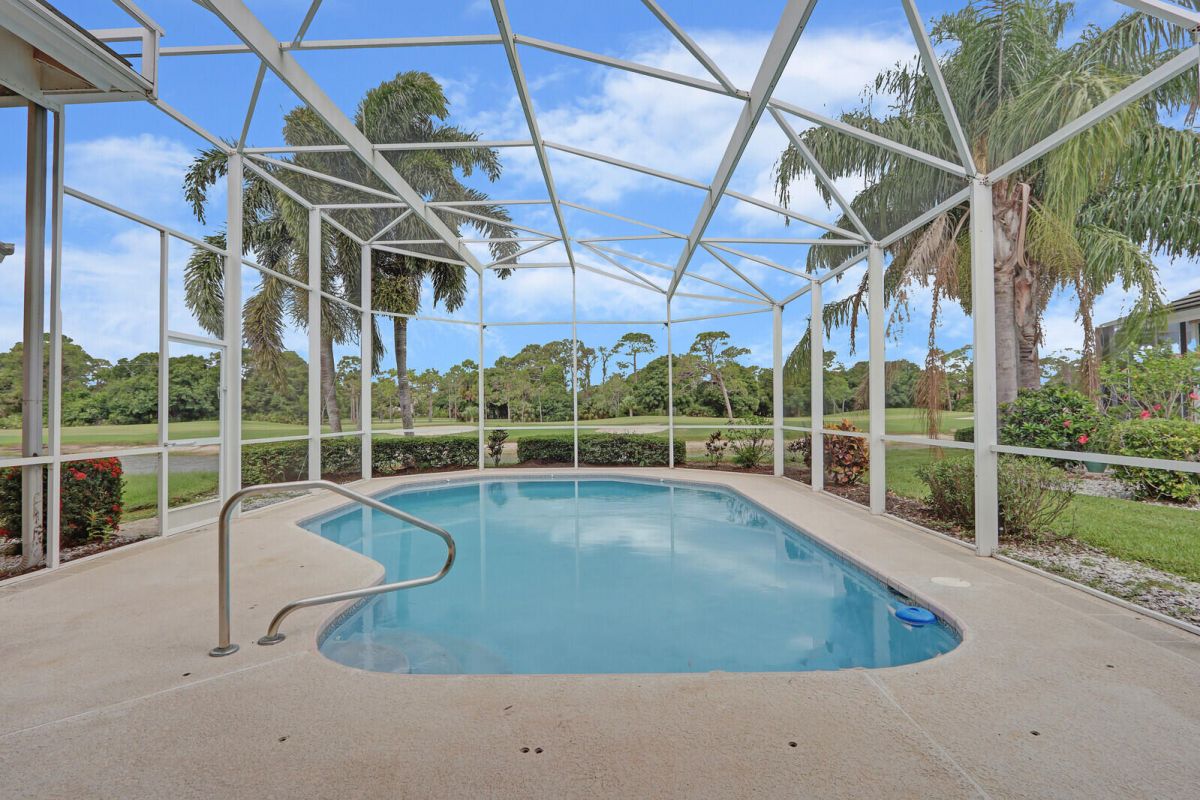 Location, location, location! Stunning water and golf views. This PGA Village home has amazing views of the 12th fairway on the members only, Legacy golf course. Two bedroom suites plus a flex room that can become a third bedroom or den. The newly resurfaced, heated pool with both solar and electric. True tropical paradise living! HIGH IMPACT WINDOWS AND DOORS for worry free weather events. The roof was replaced in 2012.