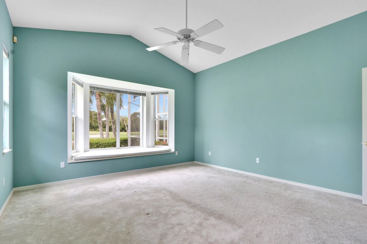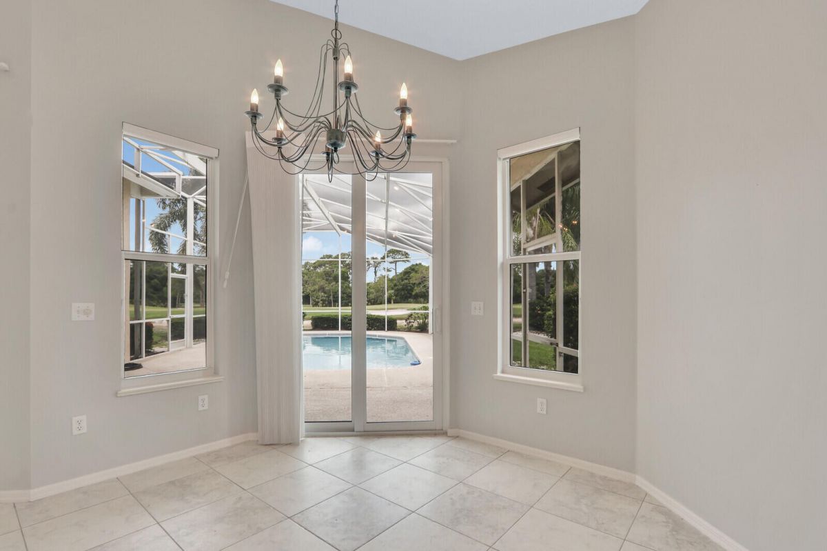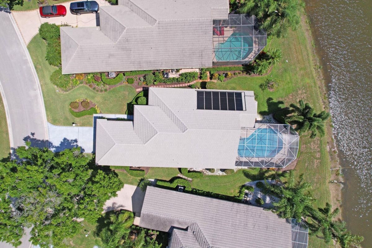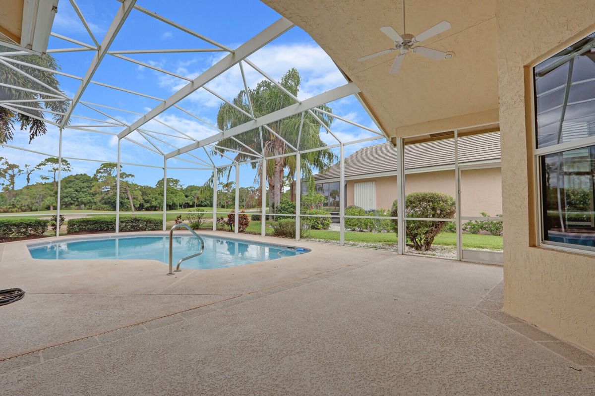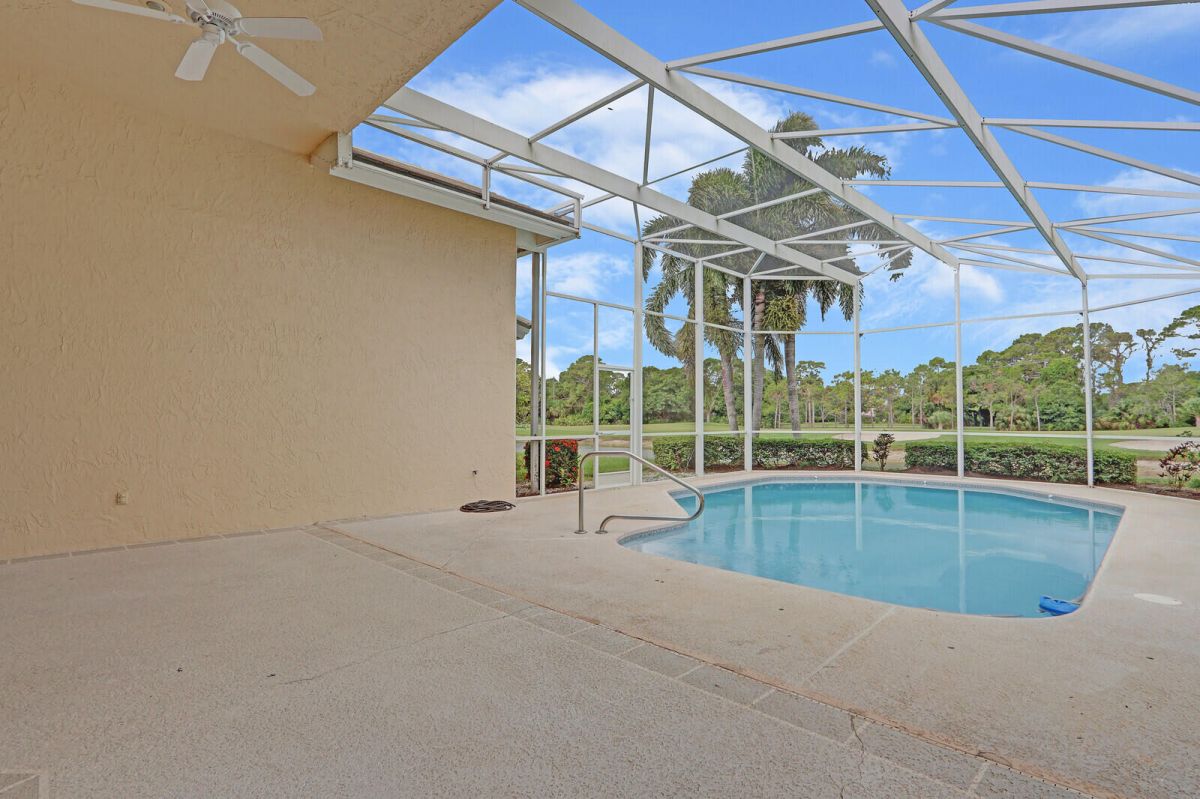 Location, location, location! Stunning water and golf views. This PGA Village home has amazing views of the 12th fairway on the members only, Legacy golf course. Two bedroom suites plus a flex room that can become a third bedroom or den. The newly resurfaced, heated pool with both solar and electric. True tropical paradise living! HIGH IMPACT WINDOWS AND DOORS for worry free weather events. The roof was replaced in 2012.