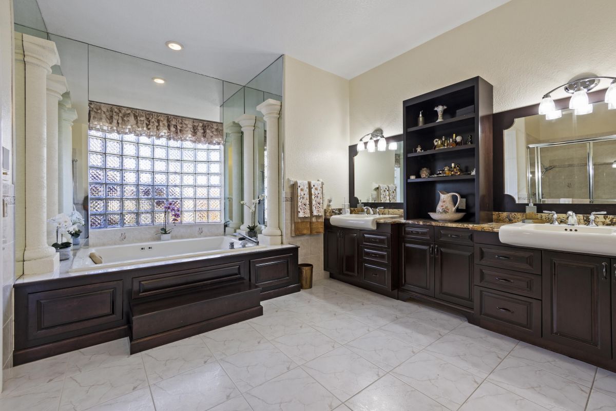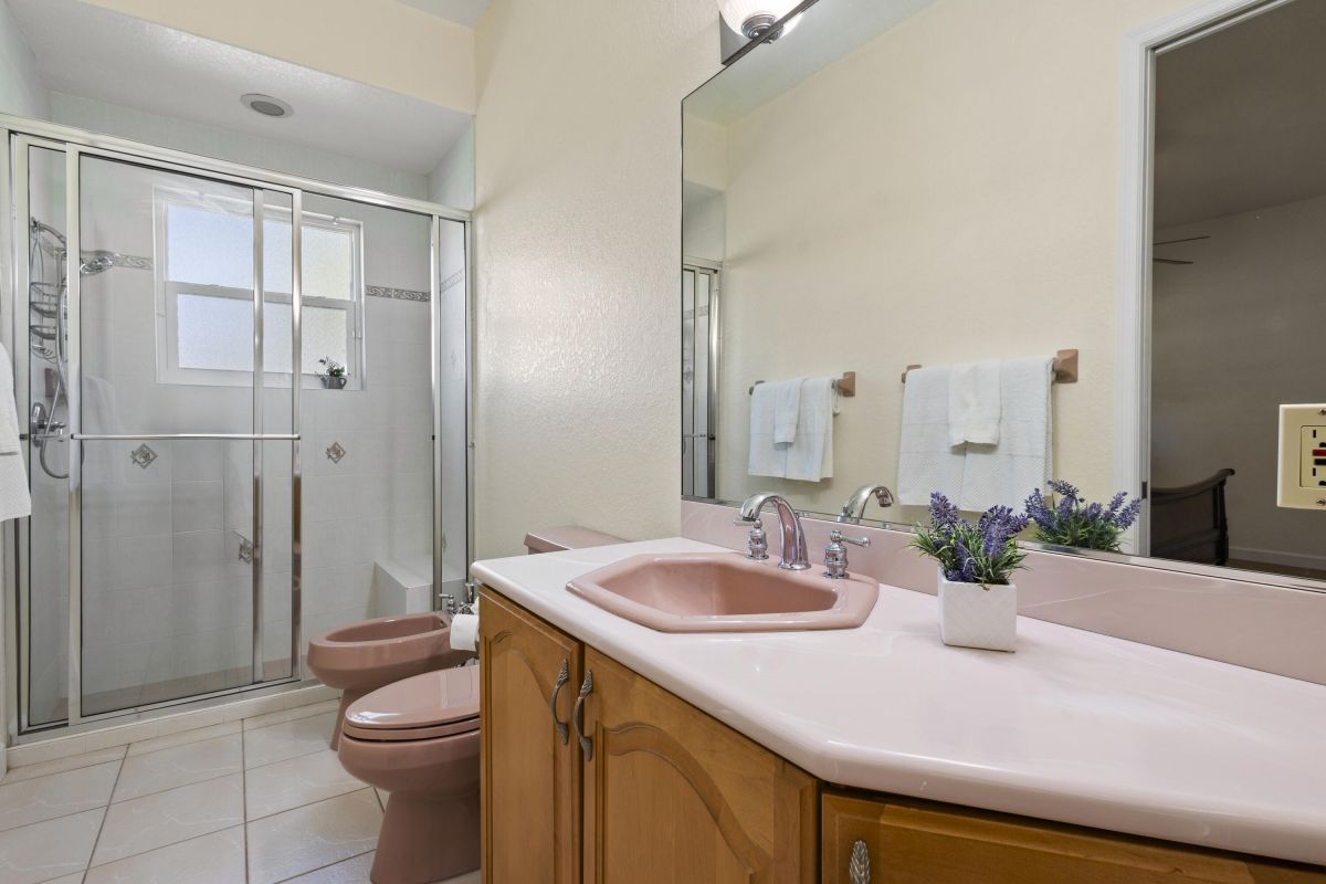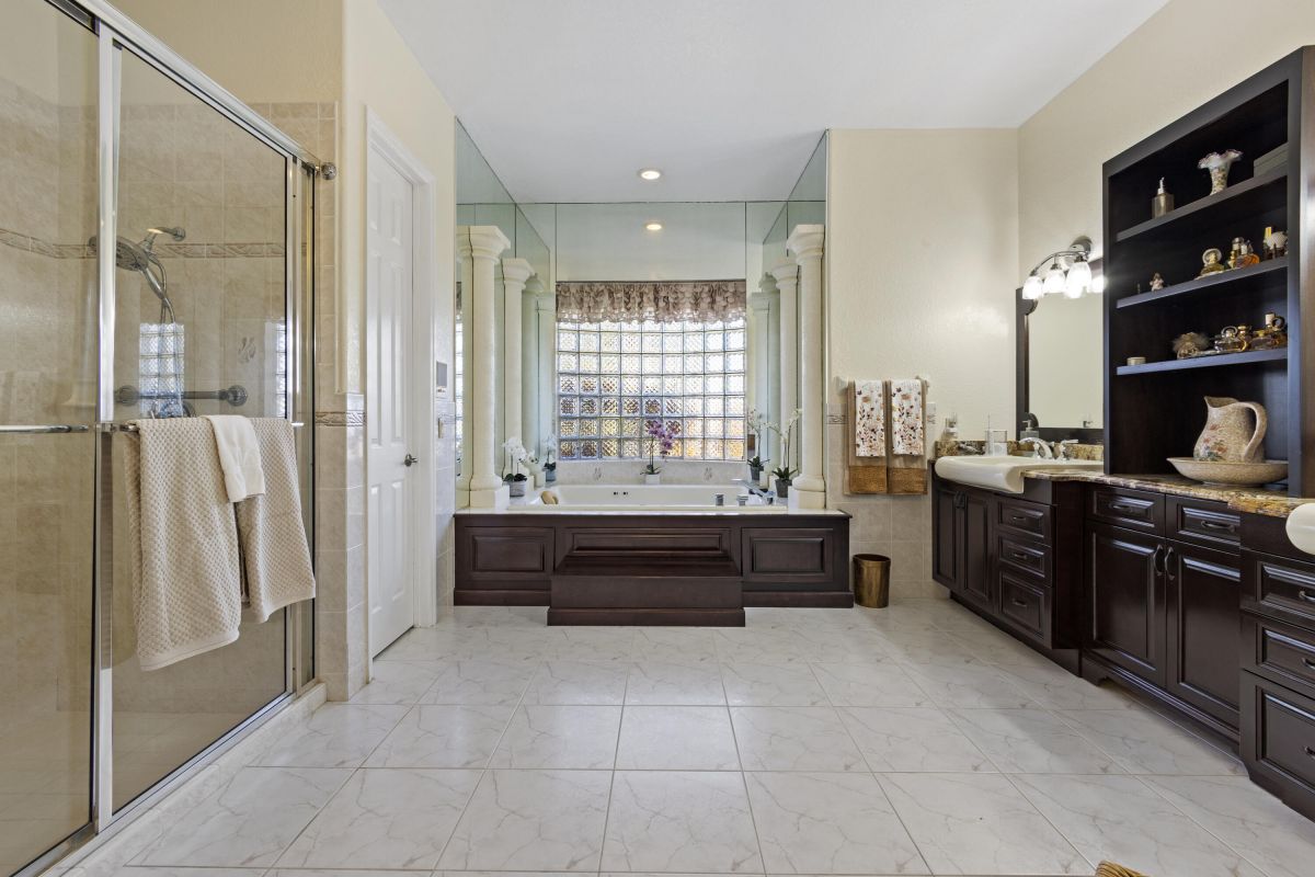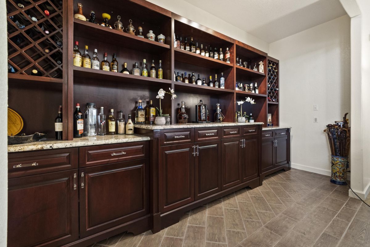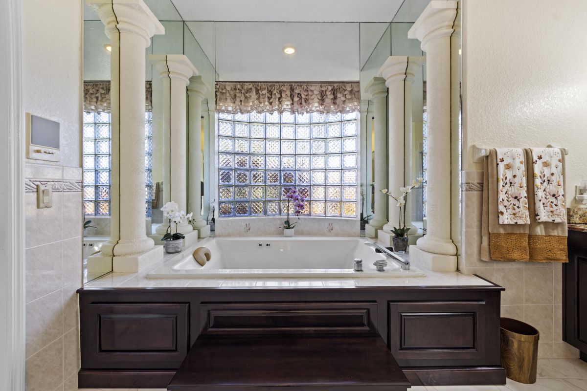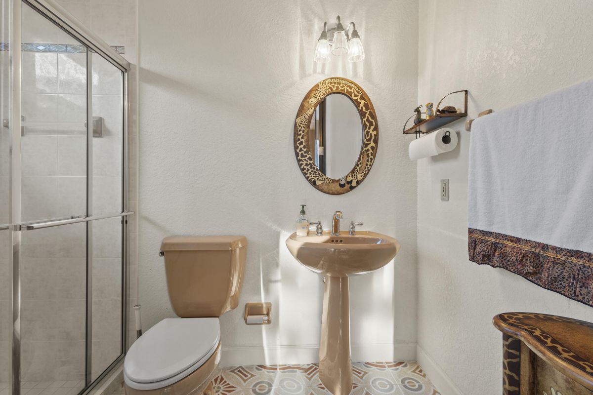 SELLER OFFERING $25,000 AT CLOSE! Looking for something special? Look no further! This custom-built pool home, tucked away in the prestigious PGA Village, offers elegance and privacy on nearly an acre of lush landscaping with mature fruit trees and a tranquil lake backdrop. Boasting over 3,500 sq. ft. of living space, grand coffered ceilings, and nearly 5,000 sq. ft. of total space, it includes 3 ensuite bedrooms, a cabana bath with patio access, a den, and a flex space. The living room features a built-in wall unit with triple pocket sliders for seamless indoor-outdoor living. The gourmet chef's kitchen, recently remodeled, showcases granite counters, a large island, and top of the line Viking appliances, including a double oven, convection oven, hood vent, refrigerator , and wine chille