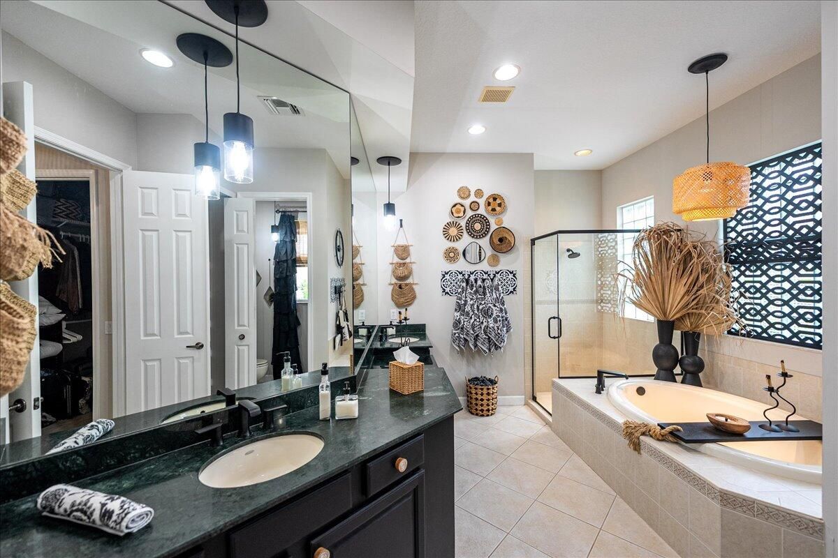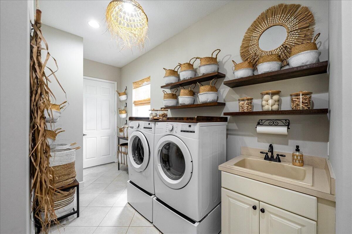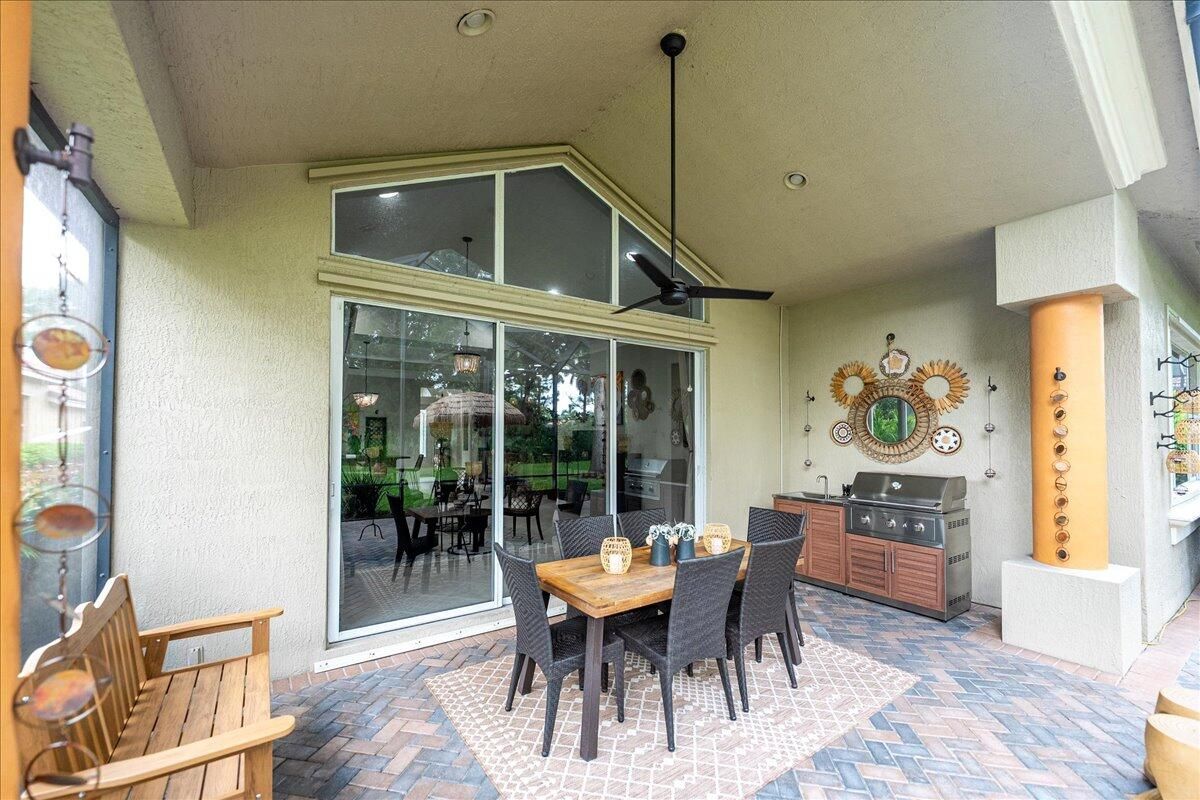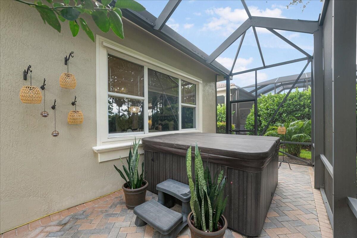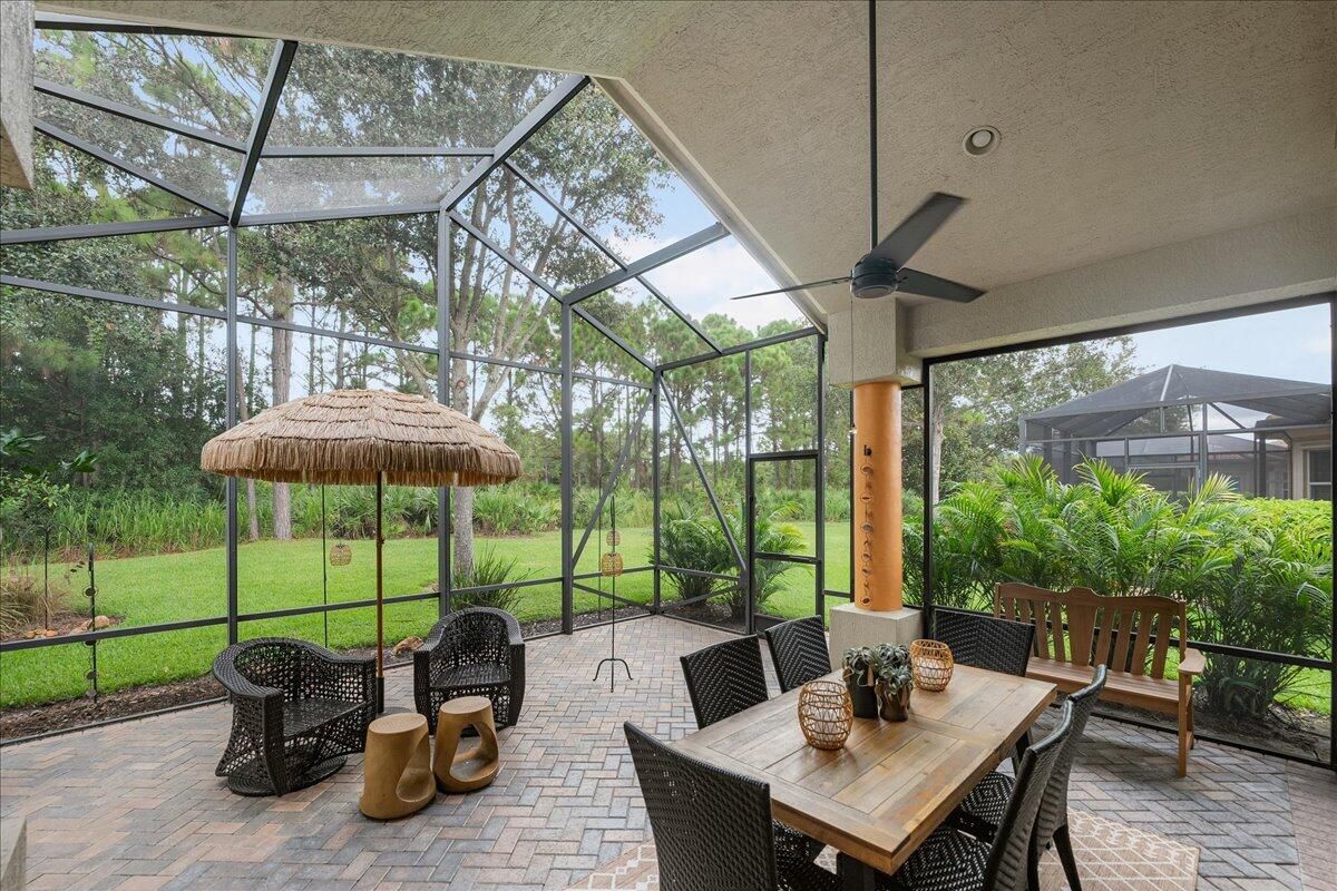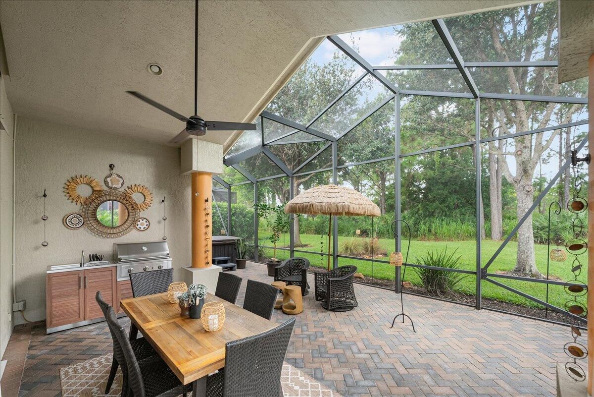 Stunning well maintained home with private serene PRESERVE views, perfectly situated in the Maidstone community of PGA. Features: an open floor plan concept, tile through out, 6 months old stainless steel appliances & a 2022 AC. Inside laundry room has sink & front load washer and dryer. This home offers Lots of light from all sides. Master suite has dual walk in closets with built ins, & luxurious master bath with dual sinks, soaking tub & separate shower. Enjoy an private extended covered screened in patio with outdoor grill & hot tub. Low HOA includes landscaping, cable, internet & Island Club access. Island Club amenities include Pool, playground, gym, tennis, & activities. Golf memberships optional. Close to major roadways, medical, shopping, & restaurants.