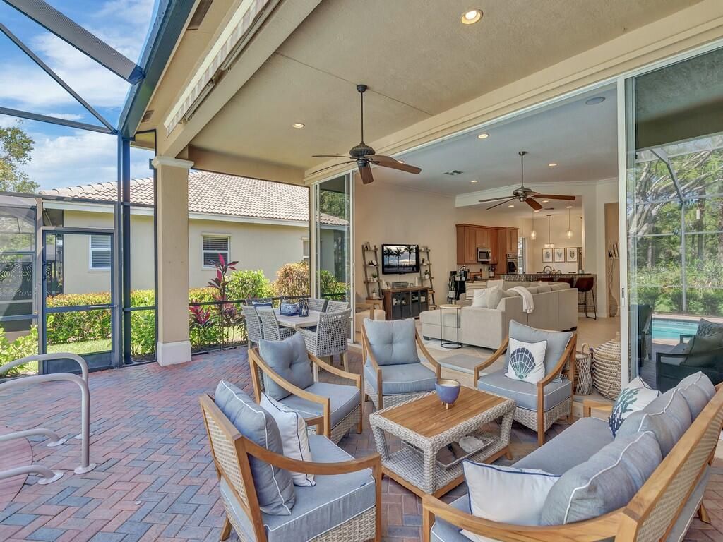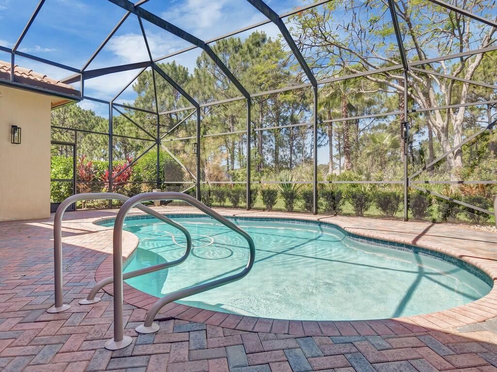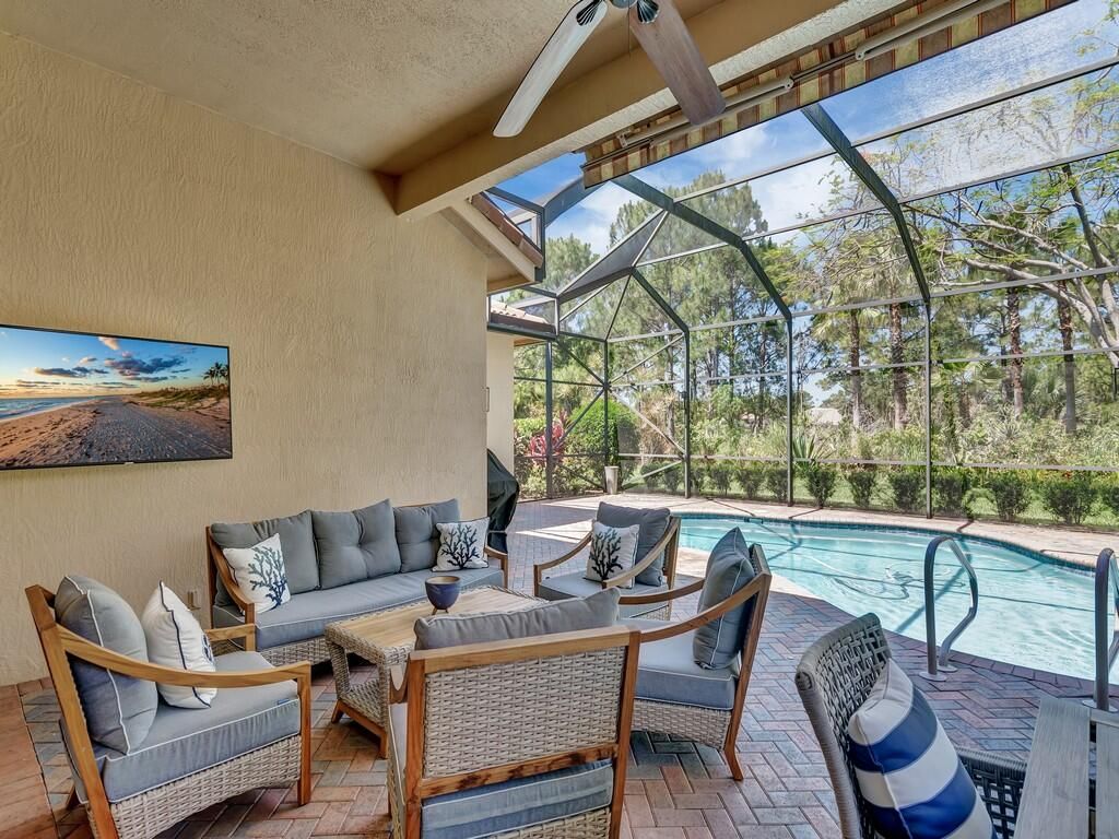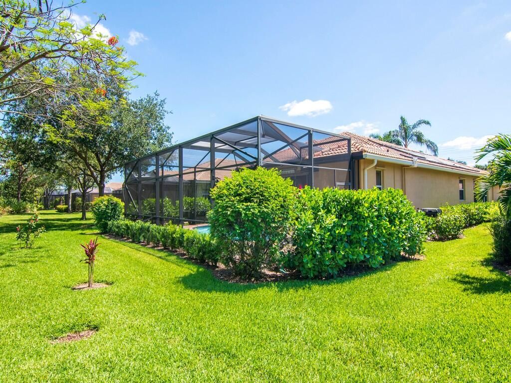 METICULOUSLY MAINTAINED THREE BEDROOM, FOUR BATH POOL HOME IN PGA VILLAGE WITH GOLF/PRESERVE VIEWS. TILE THROUGHOUT ALL LIVING AREAS!!! CHEF'S KITCHEN FEATURING A COOKToP AND DOUBLE OVEN. GRANITE COUNTERS AND STAINLESS-STEEL APPLIANCES. RARE CABANA BATH OPTION INCLUDED IN THIS HOME FOR A TRUE THREE BEDROOM FOUR BATH. ONE OF THE ONLY FLOOR PLANS FEATURING 10' POCKET SLIDING GLASS DOORS THAT OPEN TO THE LARGE COVERED LANAI/POOL AREA. PRIVACY ABOUNDS WITH PRESERVE/GOLF VIEWS BACKING UP TO THE 7TH HOLE OF PGA'S PETE DYE GOLF COURSE. ELECTRIC HEAT PUMP AND SOLAR HEAT FOR THE POOL. NEW GUTTERS AS WELL AS A NEW SUPER GUTTER ON THE SCREENED LANAI, NEW POOL MOTOR & A NEW SALT SYSTEM IN THE POOL, NEW LED LIGHT IN THE A/C, & NEW LANDSCAPING. THIS HOME CAN BE PURCHASED FURNISHED/TURNKEY