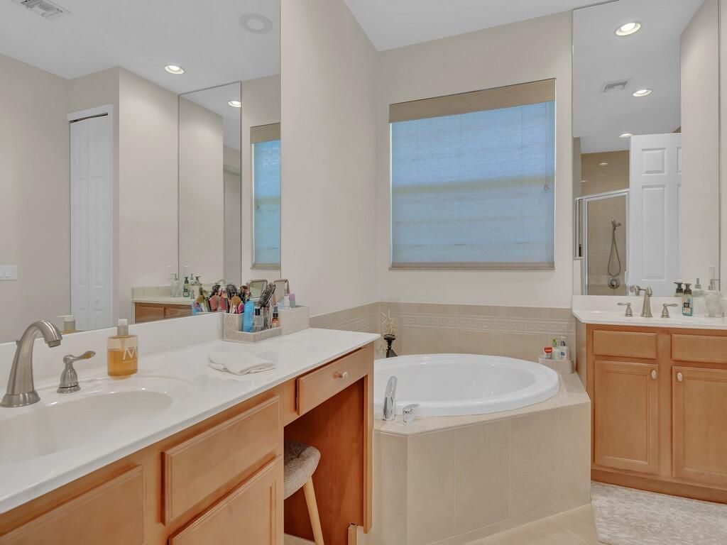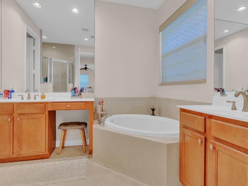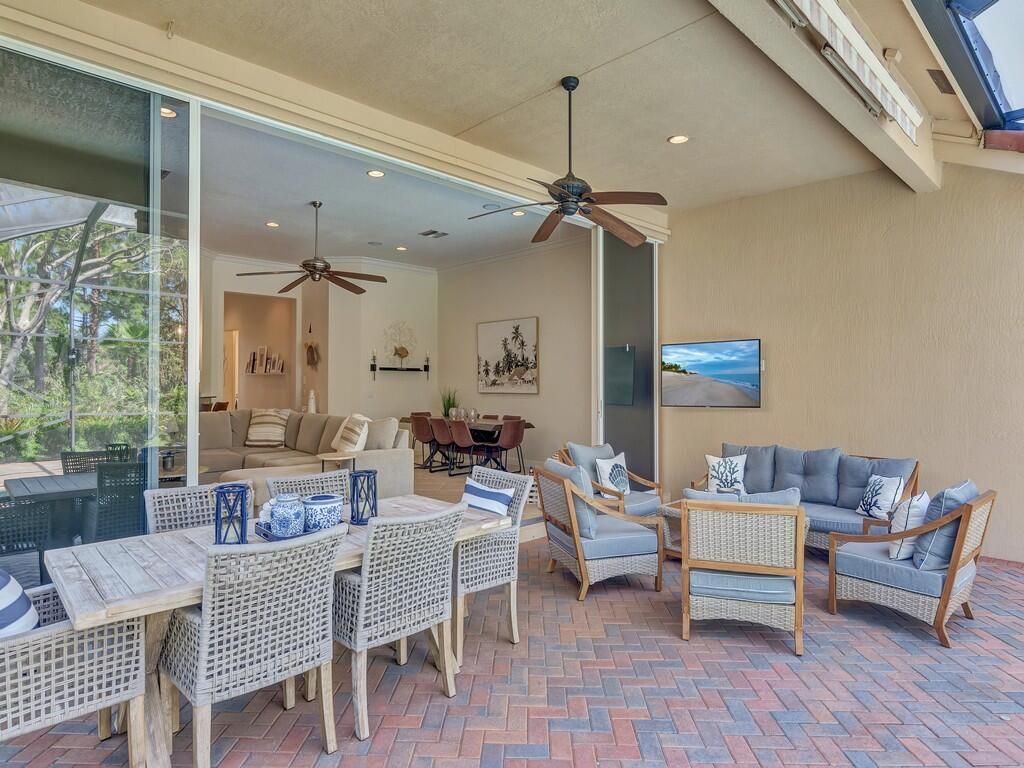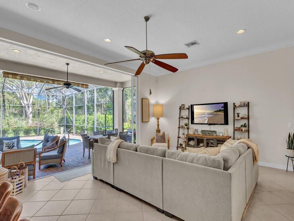 METICULOUSLY MAINTAINED THREE BEDROOM, FOUR BATH POOL HOME IN PGA VILLAGE WITH GOLF/PRESERVE VIEWS. TILE THROUGHOUT ALL LIVING AREAS!!! CHEF'S KITCHEN FEATURING A COOKToP AND DOUBLE OVEN. GRANITE COUNTERS AND STAINLESS-STEEL APPLIANCES. RARE CABANA BATH OPTION INCLUDED IN THIS HOME FOR A TRUE THREE BEDROOM FOUR BATH. ONE OF THE ONLY FLOOR PLANS FEATURING 10' POCKET SLIDING GLASS DOORS THAT OPEN TO THE LARGE COVERED LANAI/POOL AREA. PRIVACY ABOUNDS WITH PRESERVE/GOLF VIEWS BACKING UP TO THE 7TH HOLE OF PGA'S PETE DYE GOLF COURSE. ELECTRIC HEAT PUMP AND SOLAR HEAT FOR THE POOL. NEW GUTTERS AS WELL AS A NEW SUPER GUTTER ON THE SCREENED LANAI, NEW POOL MOTOR & A NEW SALT SYSTEM IN THE POOL, NEW LED LIGHT IN THE A/C, & NEW LANDSCAPING. THIS HOME CAN BE PURCHASED FURNISHED/TURNKEY