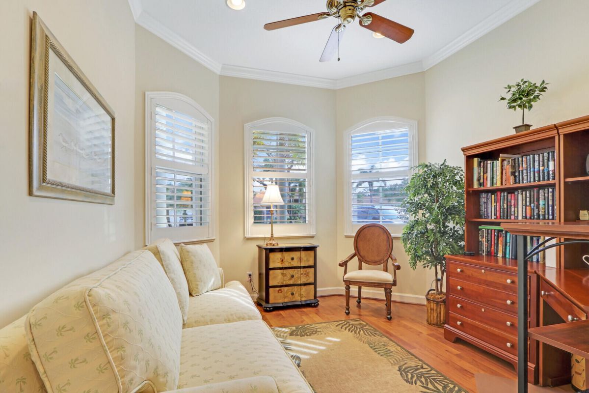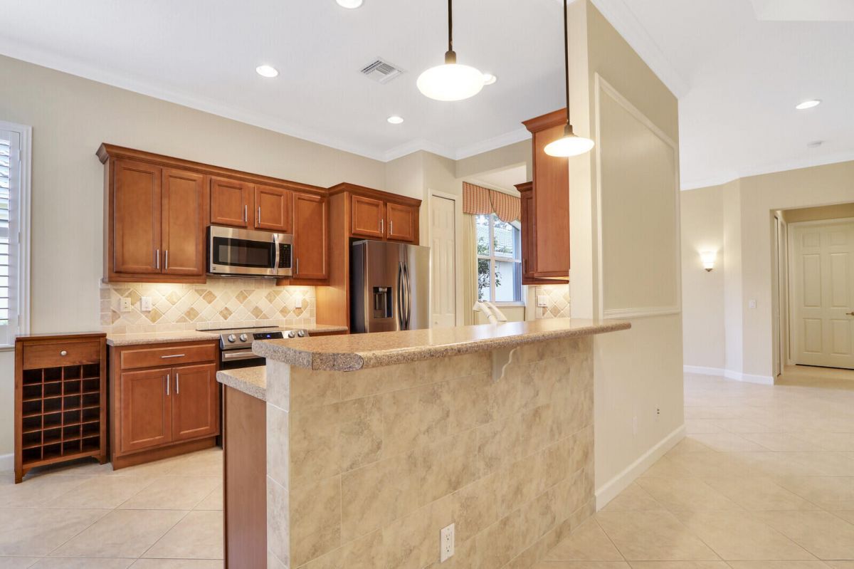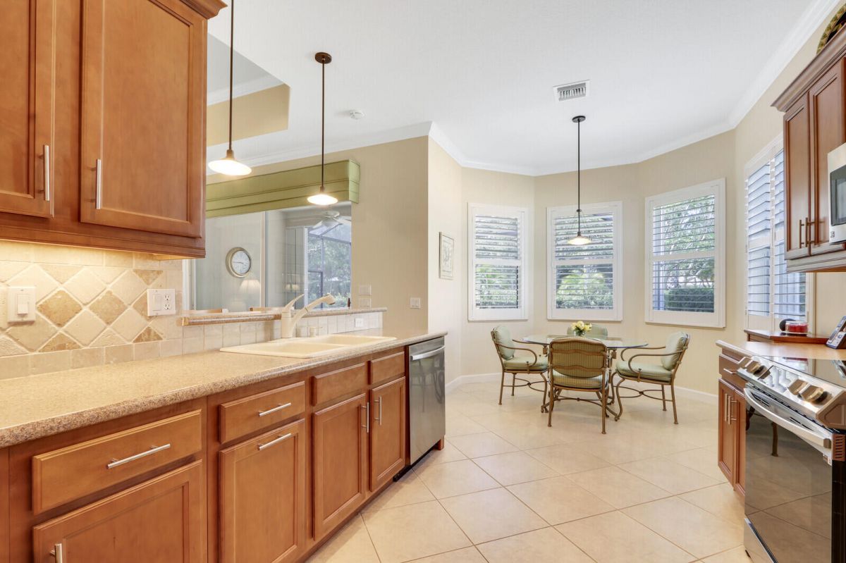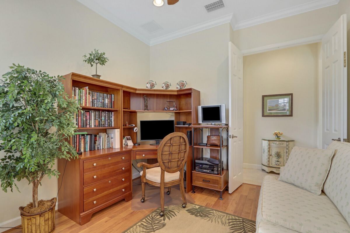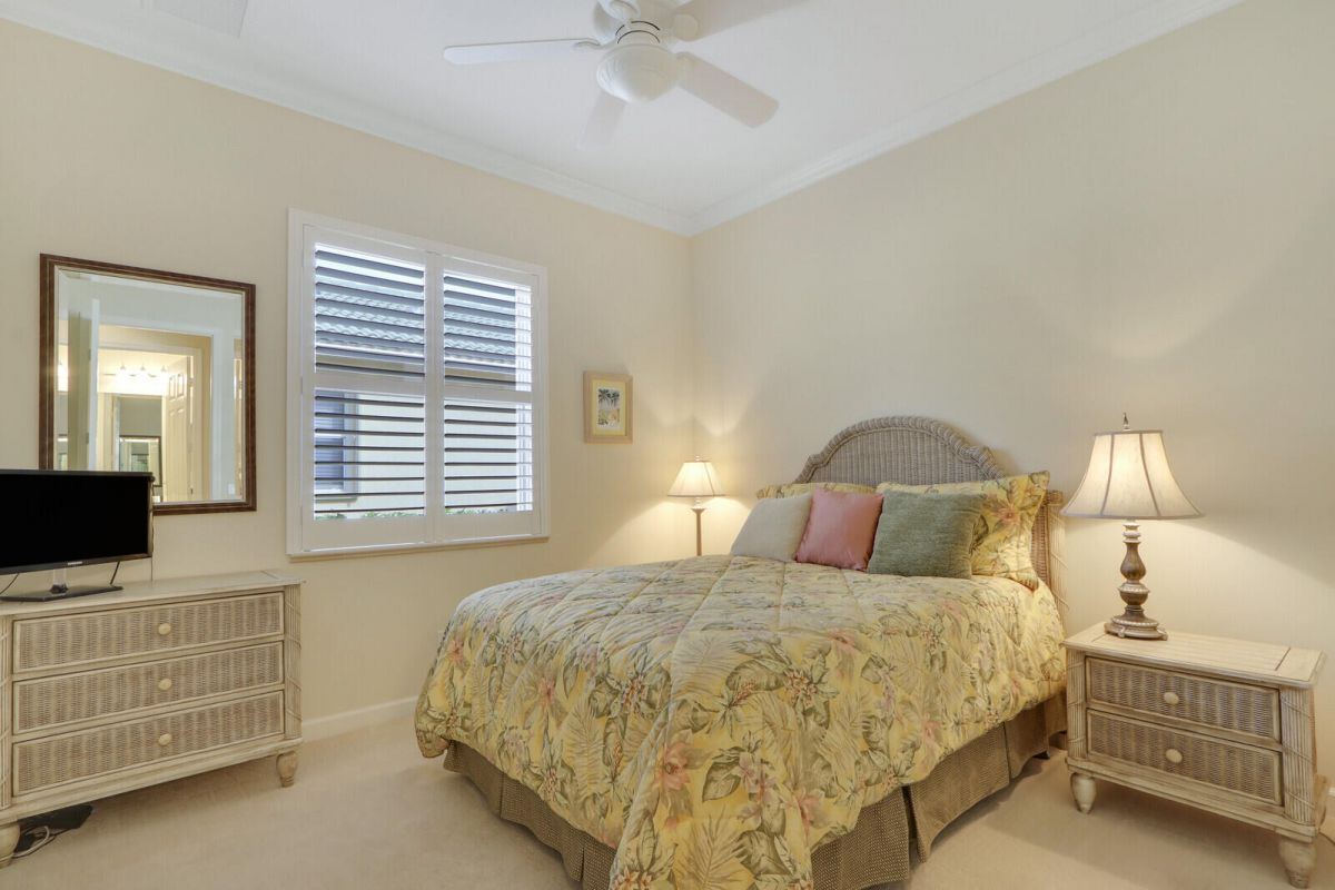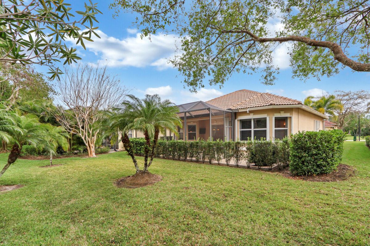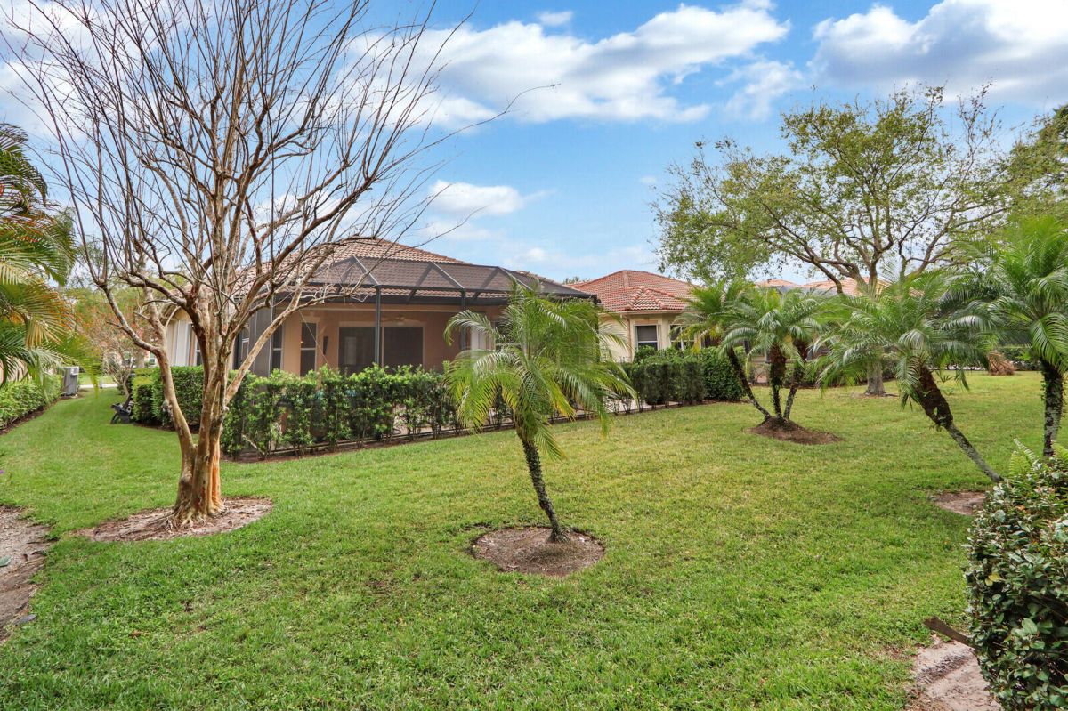 NESTLED IN GREENBRIER NEIGHBORHOOD IN THE HEART OF PGA VILLAGE, just a stone's throw away from The Legacy Golf & Tennis Club & a short golf cart ride to The PGA Golf Club & it's 3 world class championship golf courses! This charming home boast a private, treed rear yard & an extended lanai that beckons you to relax & unwind in the hot tub after a day on the course! Inside the pride of ownership & attention to detail is evident in every corner. This open, great room plan has 2 spacious brs + den, 2 full baths & a convenient 1/2 bath, the perfect combination for comfort & convenience! For added peace of mind, accordion shutters provide protection, ensuring the safety & security of the home during storm season. NEW SS APPLIANCES. Gently lived in & lovingly maintained by the original owner