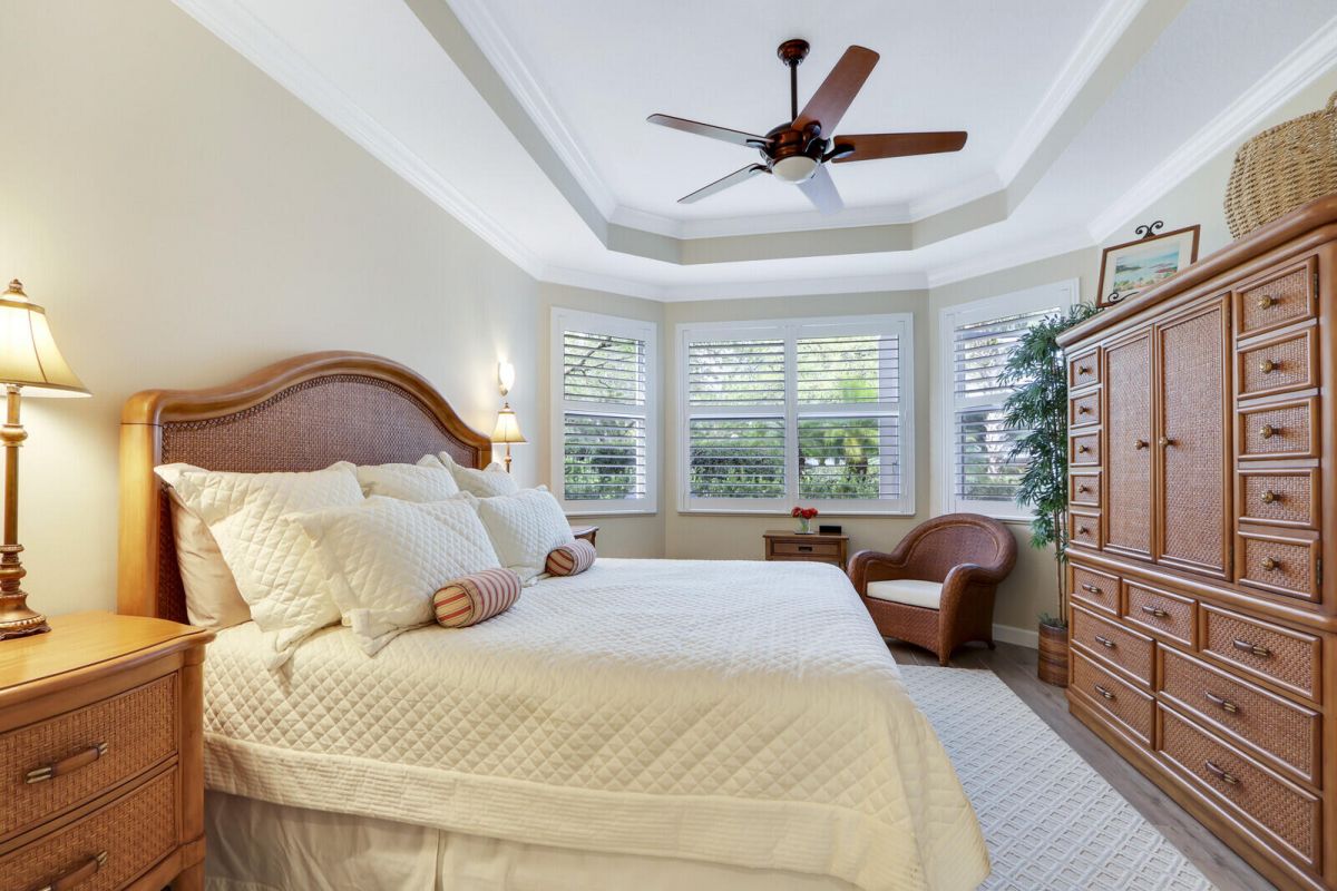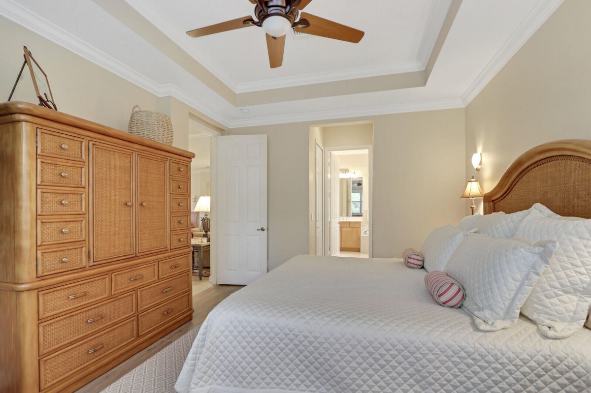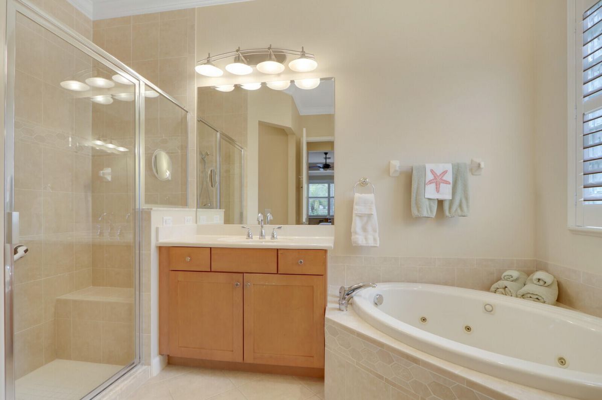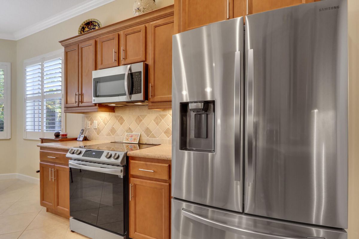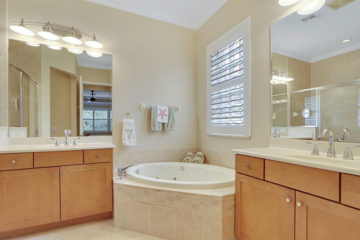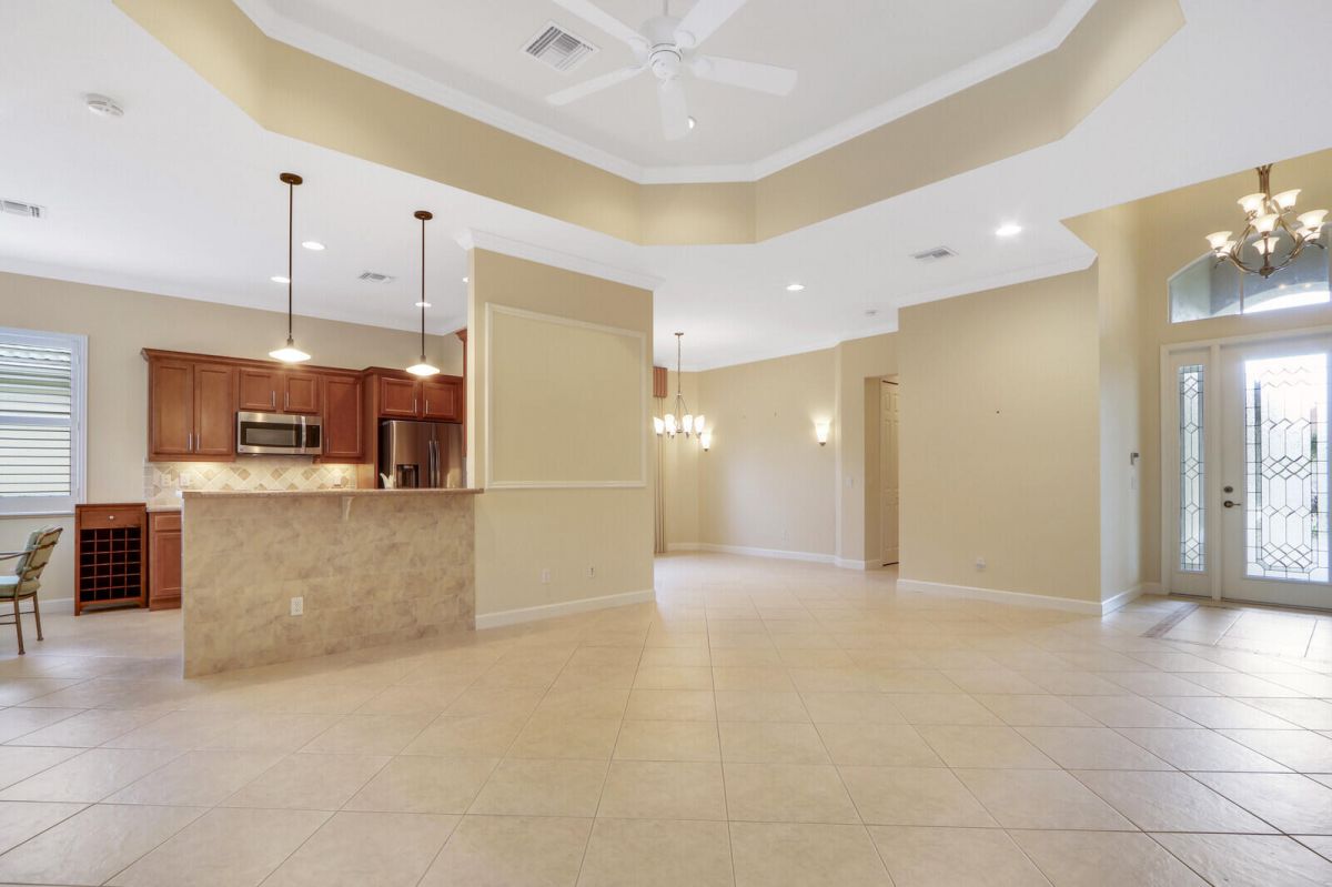 NESTLED IN GREENBRIER NEIGHBORHOOD IN THE HEART OF PGA VILLAGE, just a stone's throw away from The Legacy Golf & Tennis Club & a short golf cart ride to The PGA Golf Club & it's 3 world class championship golf courses! This charming home boast a private, treed rear yard & an extended lanai that beckons you to relax & unwind in the hot tub after a day on the course! Inside the pride of ownership & attention to detail is evident in every corner. This open, great room plan has 2 spacious brs + den, 2 full baths & a convenient 1/2 bath, the perfect combination for comfort & convenience! For added peace of mind, accordion shutters provide protection, ensuring the safety & security of the home during storm season. NEW SS APPLIANCES. Gently lived in & lovingly maintained by the original owner