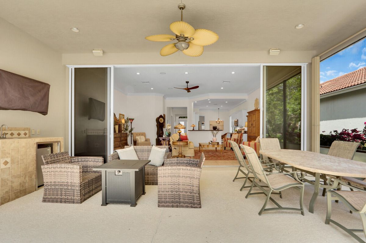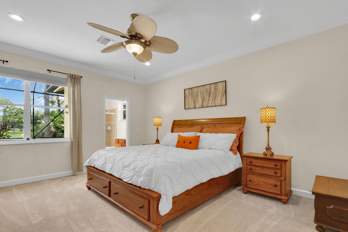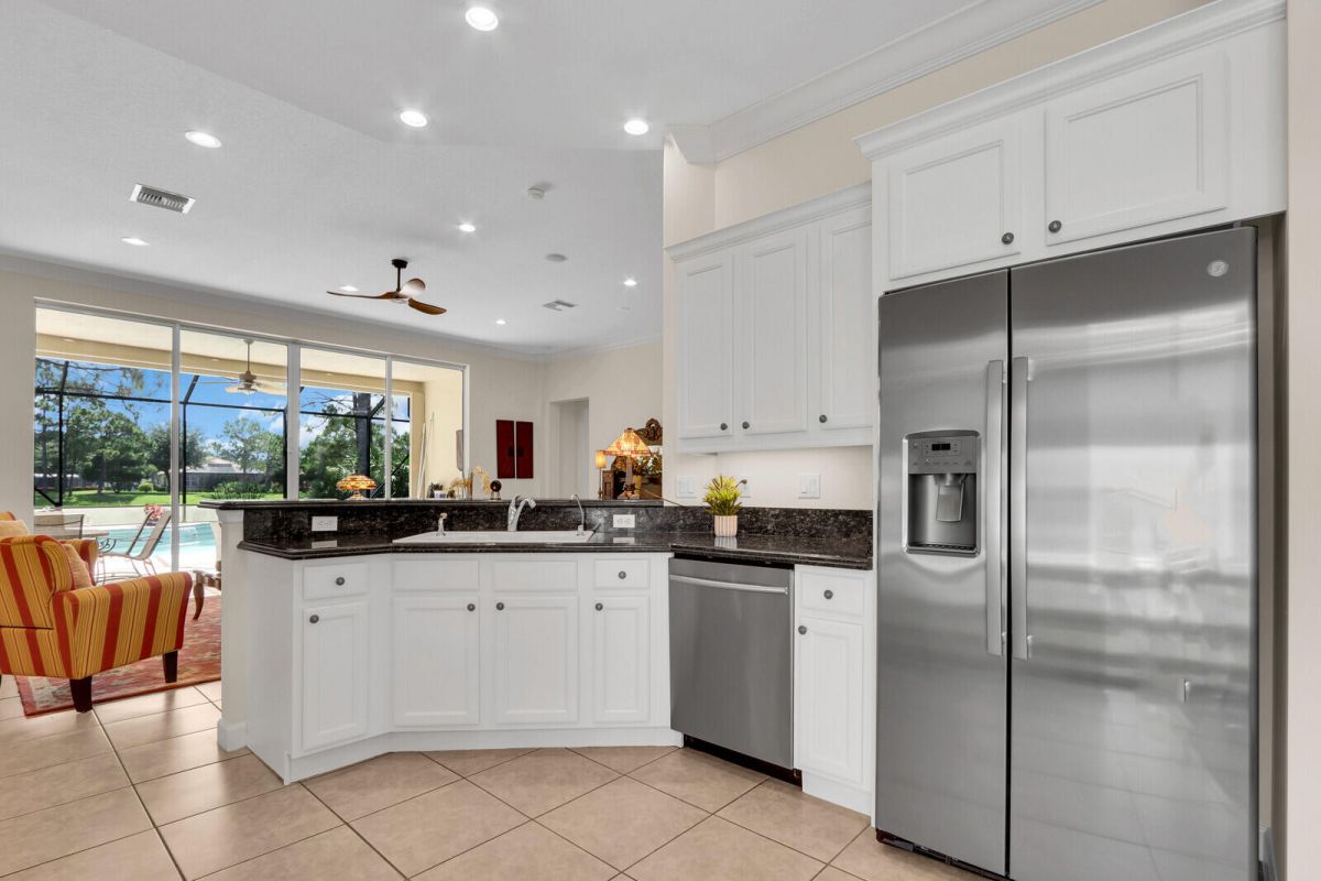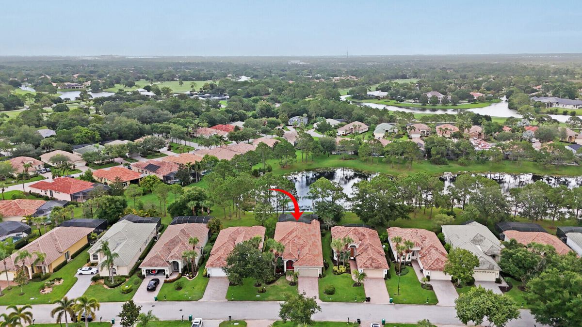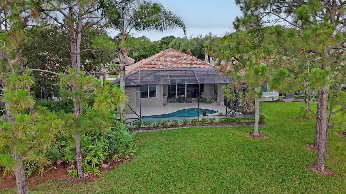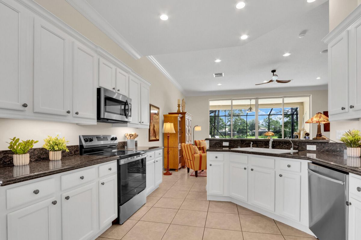 Stunning Pool Home on the Water in PGA Village! Beautifully maintained & freshly painted Medinah model with private, peaceful water view in the Greenbrier neighborhood-right in the heart of PGA Village. Offering 2,284 sq. ft. of air-conditioned living space, this spacious 2-bedroom plus den, 3.5-bath home can easily be converted to 3 bedrooms plus den to suit your lifestyle. Enjoy Florida living at its finest with a screened pool overlooking the water, a covered patio & summer kitchen, 10' pocketing patio doors that fully open to blend indoor & outdoor living-perfect for entertaining Water heater, range & refrigerator new in 2025. Whole house Storm shutters. Located just minutes from the 3 PGA world class golf courses & around the corner from The Legacy Golf & Tennis Club! Paradise