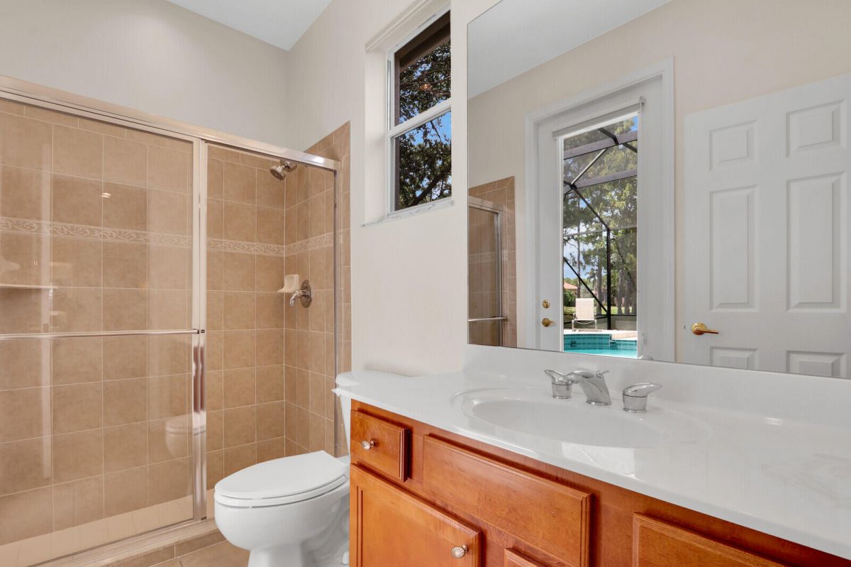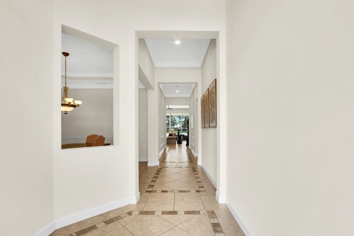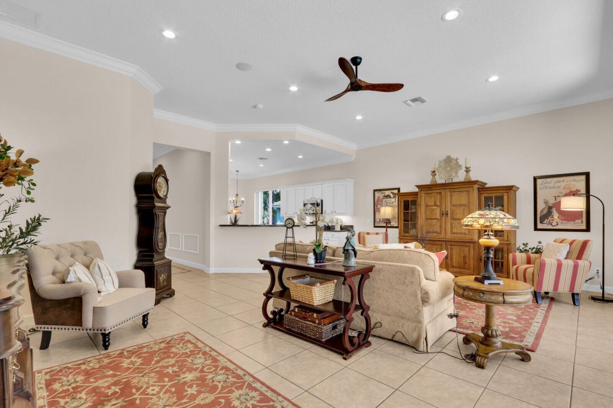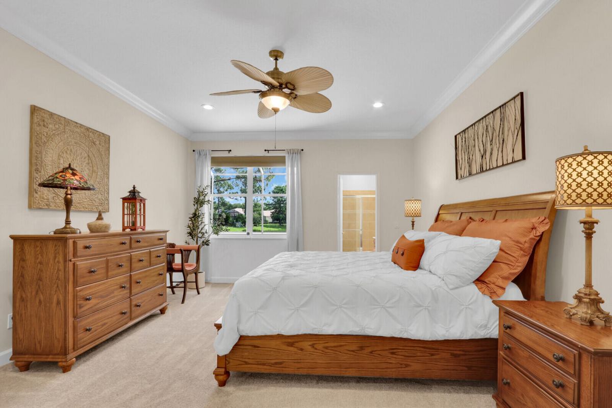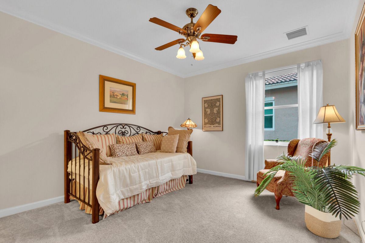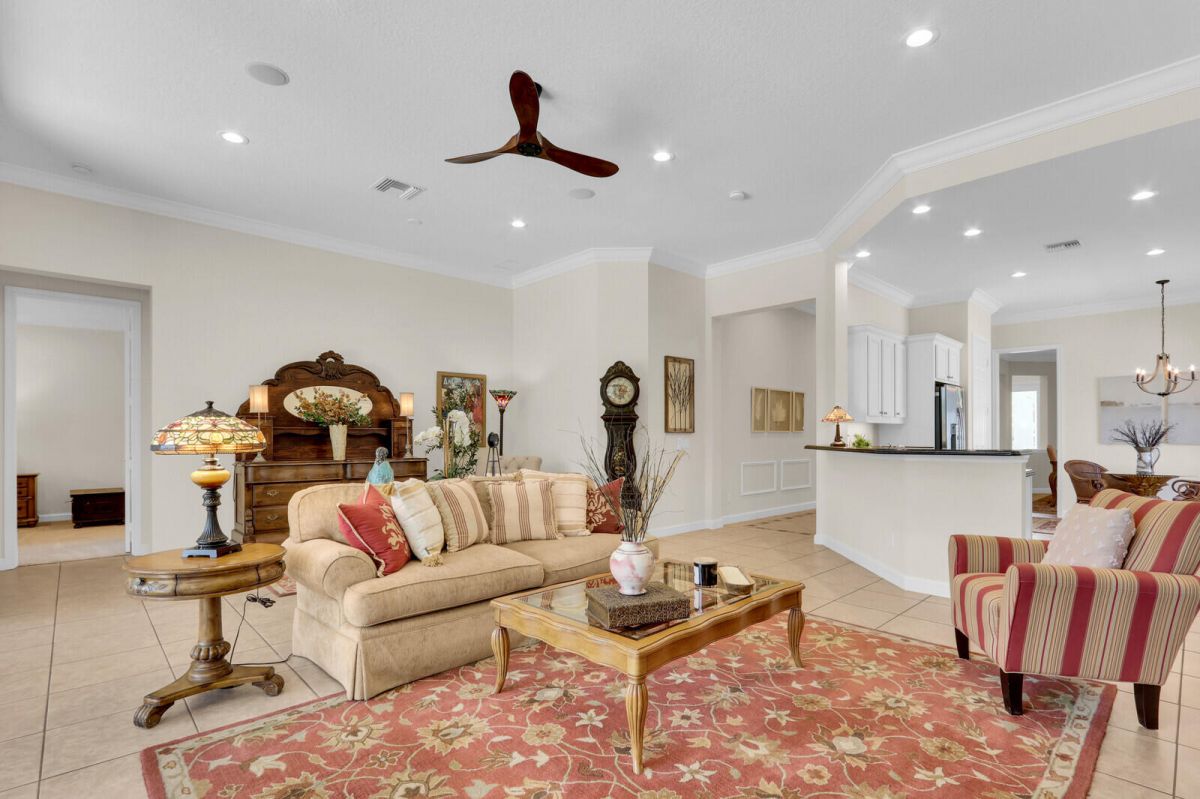 Stunning Pool Home on the Water in PGA Village! Beautifully maintained & freshly painted Medinah model with private, peaceful water view in the Greenbrier neighborhood-right in the heart of PGA Village. Offering 2,284 sq. ft. of air-conditioned living space, this spacious 2-bedroom plus den, 3.5-bath home can easily be converted to 3 bedrooms plus den to suit your lifestyle. Enjoy Florida living at its finest with a screened pool overlooking the water, a covered patio & summer kitchen, 10' pocketing patio doors that fully open to blend indoor & outdoor living-perfect for entertaining Water heater, range & refrigerator new in 2025. Whole house Storm shutters. Located just minutes from the 3 PGA world class golf courses & around the corner from The Legacy Golf & Tennis Club! Paradise