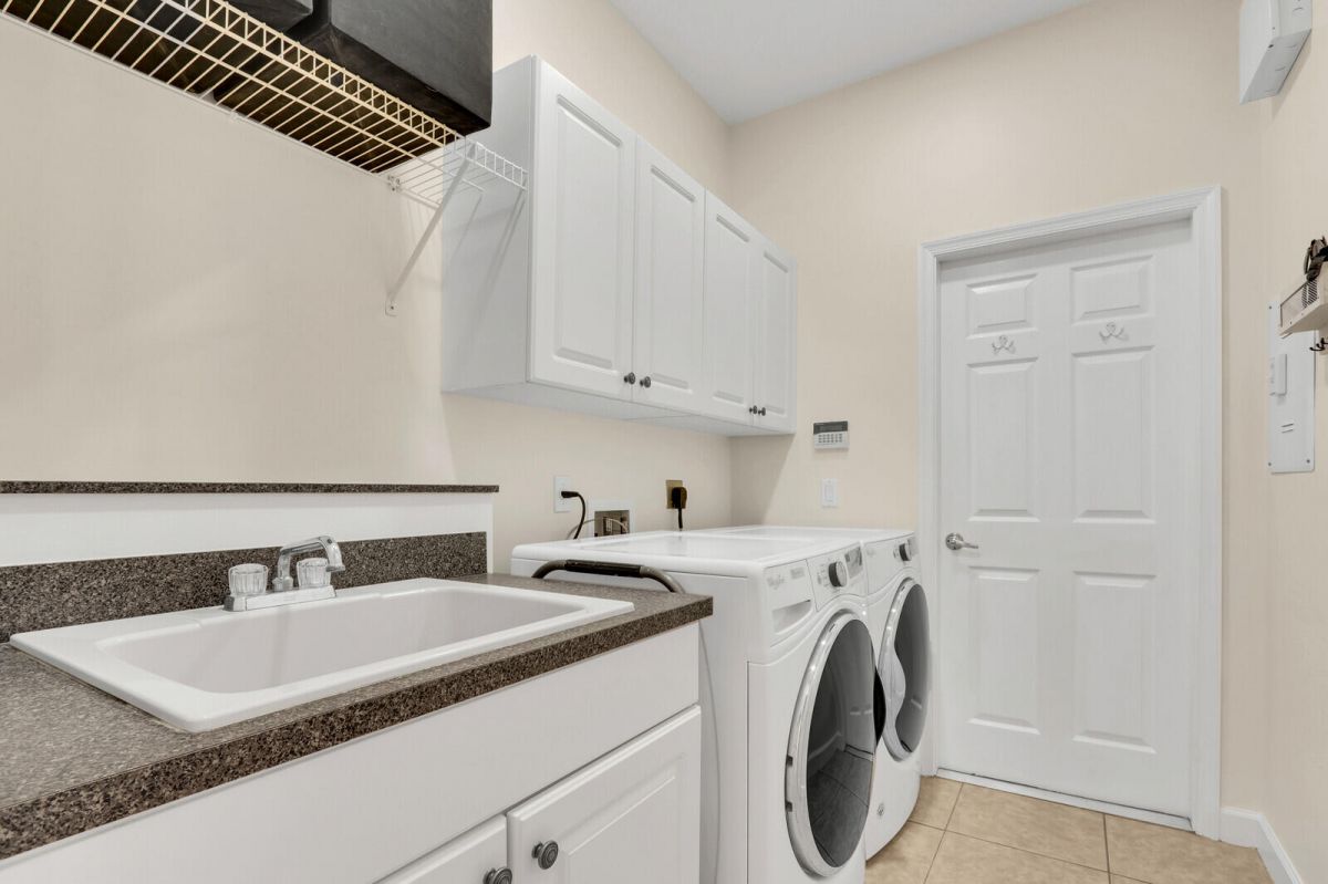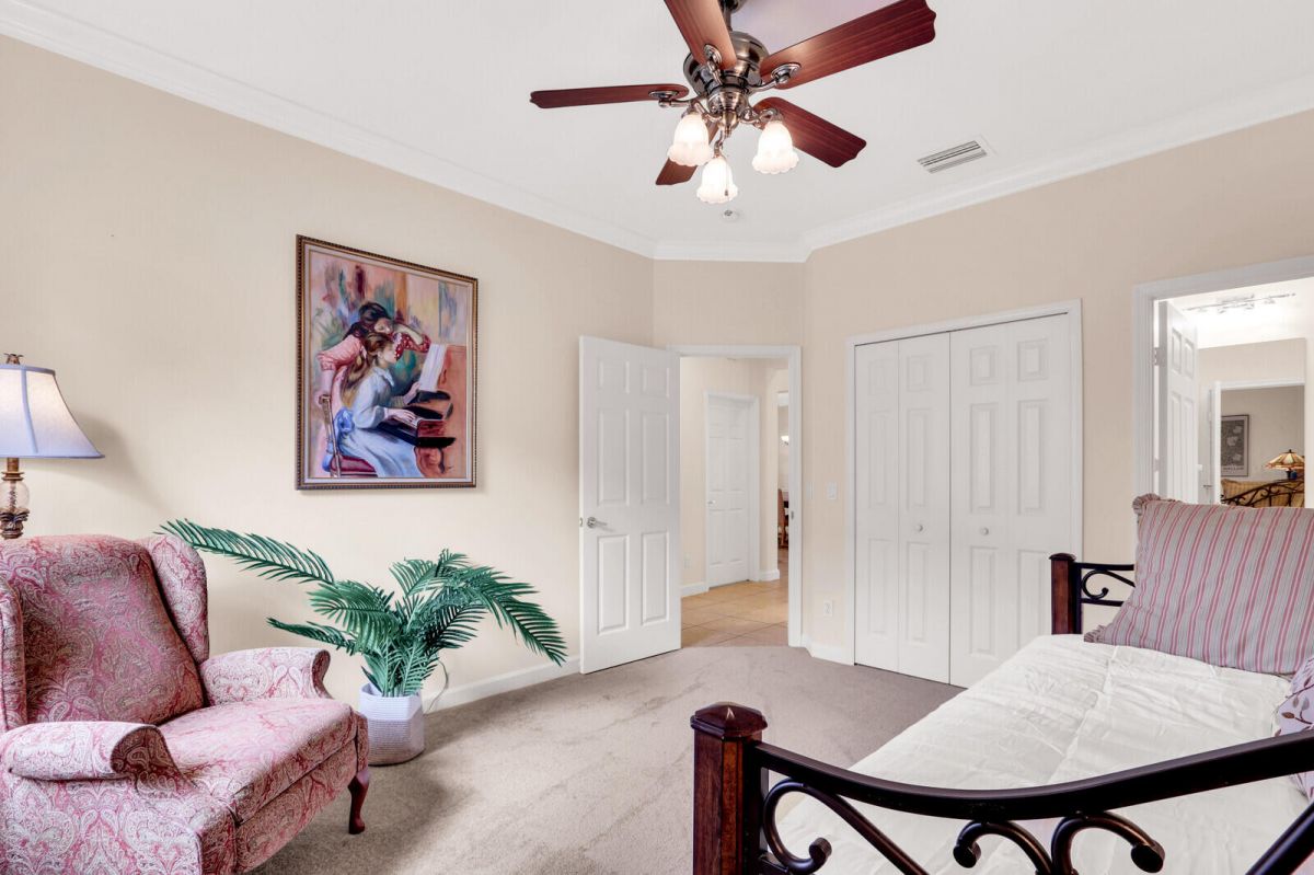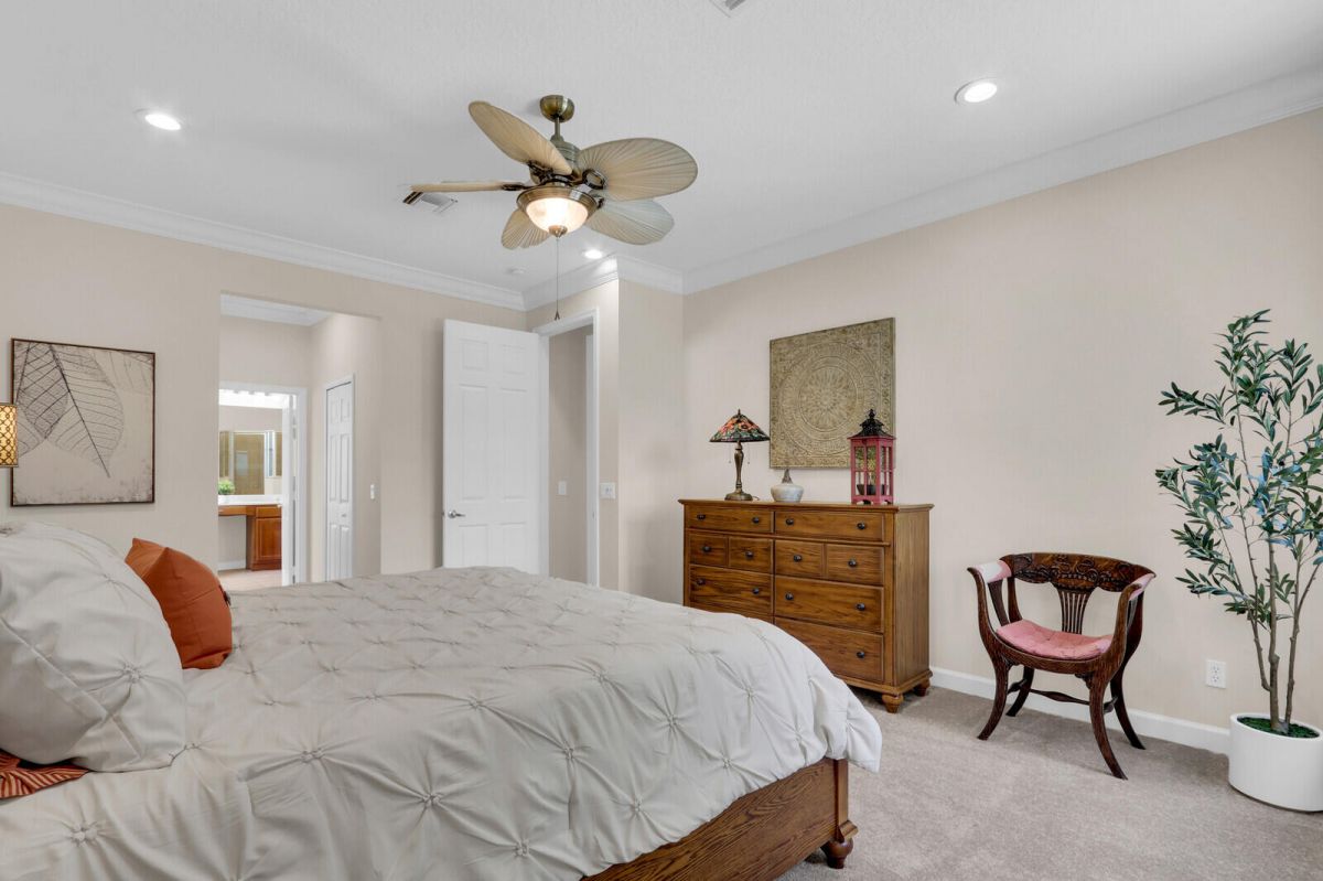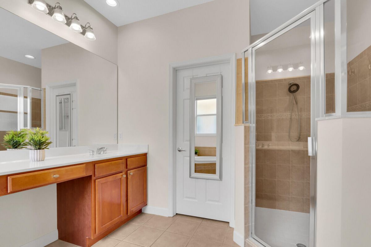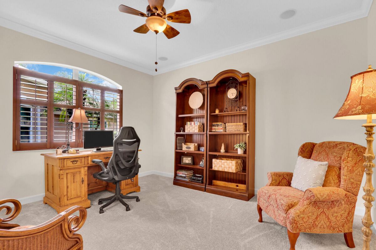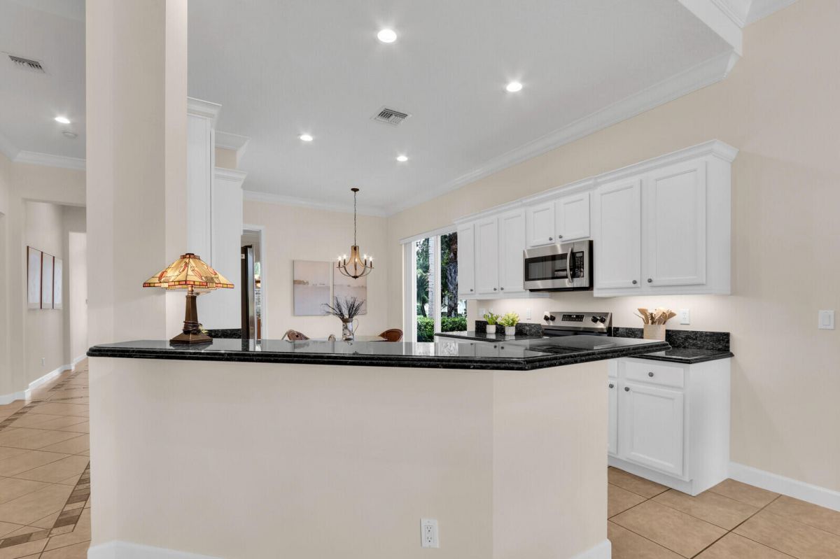 Stunning Pool Home on the Water in PGA Village! Beautifully maintained & freshly painted Medinah model with private, peaceful water view in the Greenbrier neighborhood-right in the heart of PGA Village. Offering 2,284 sq. ft. of air-conditioned living space, this spacious 2-bedroom plus den, 3.5-bath home can easily be converted to 3 bedrooms plus den to suit your lifestyle. Enjoy Florida living at its finest with a screened pool overlooking the water, a covered patio & summer kitchen, 10' pocketing patio doors that fully open to blend indoor & outdoor living-perfect for entertaining Water heater, range & refrigerator new in 2025. Whole house Storm shutters. Located just minutes from the 3 PGA world class golf courses & around the corner from The Legacy Golf & Tennis Club! Paradise