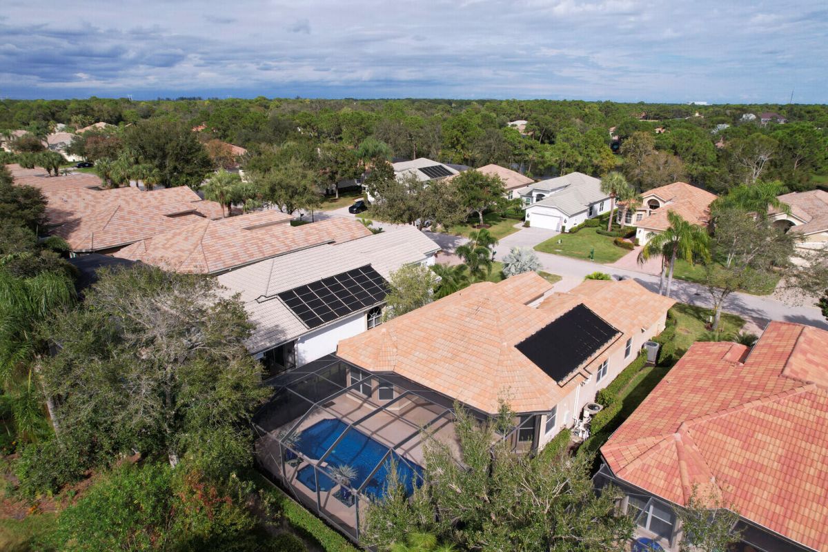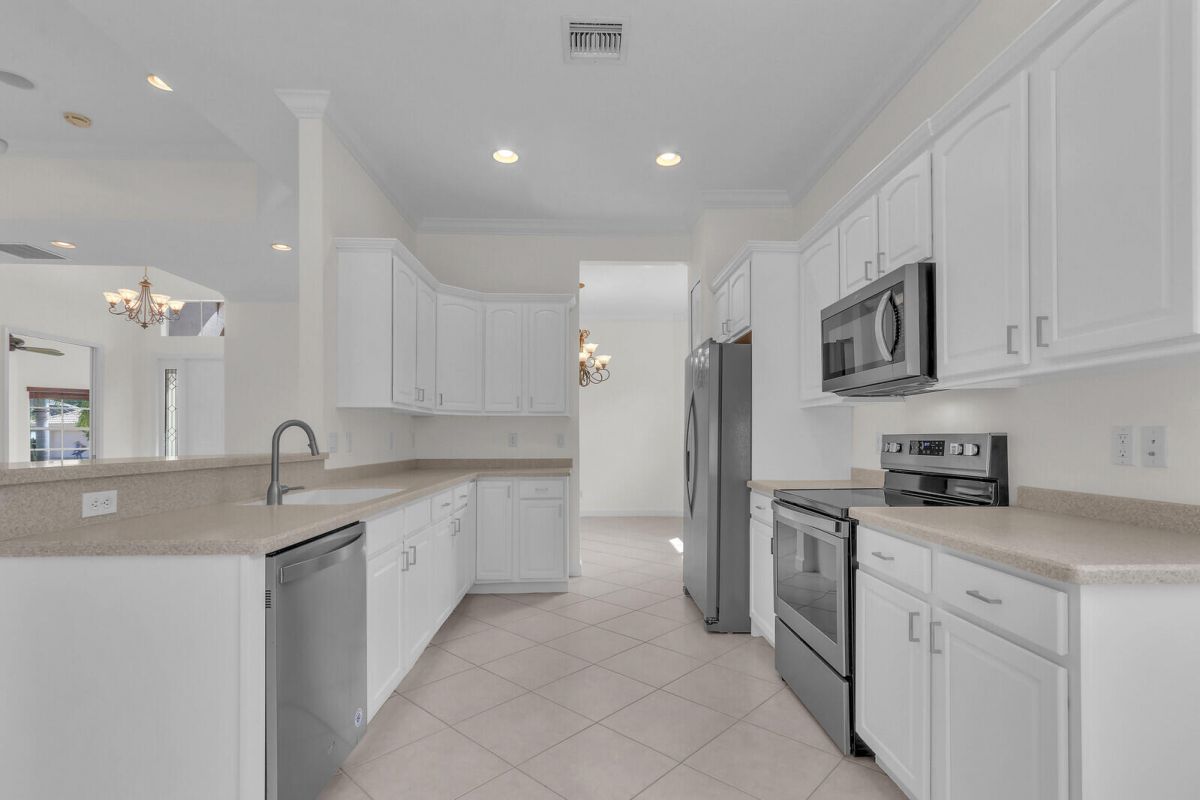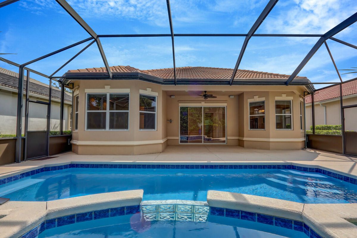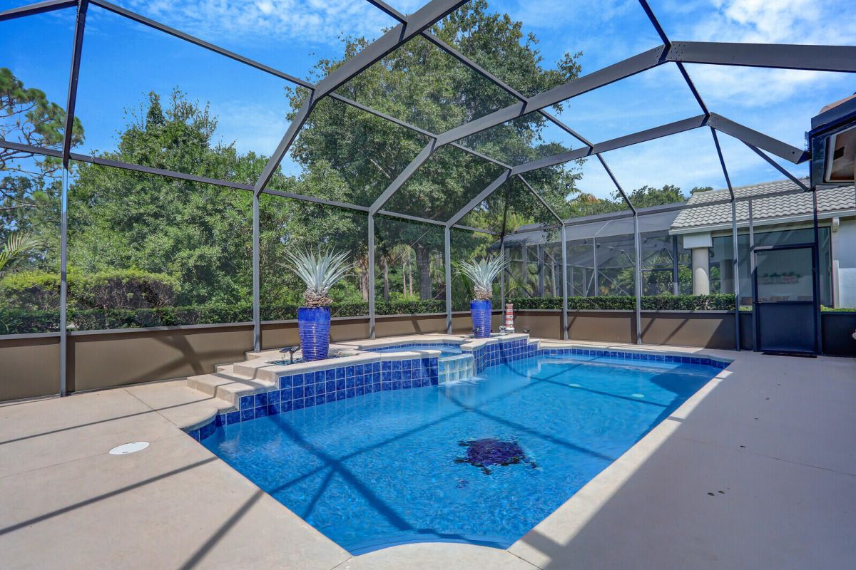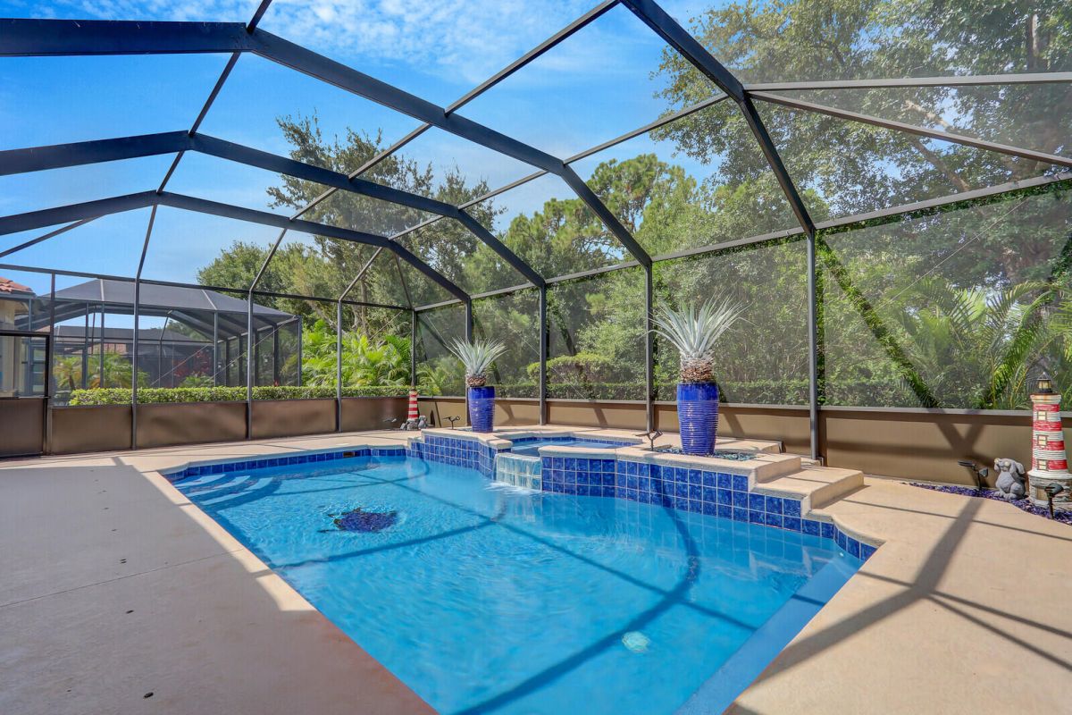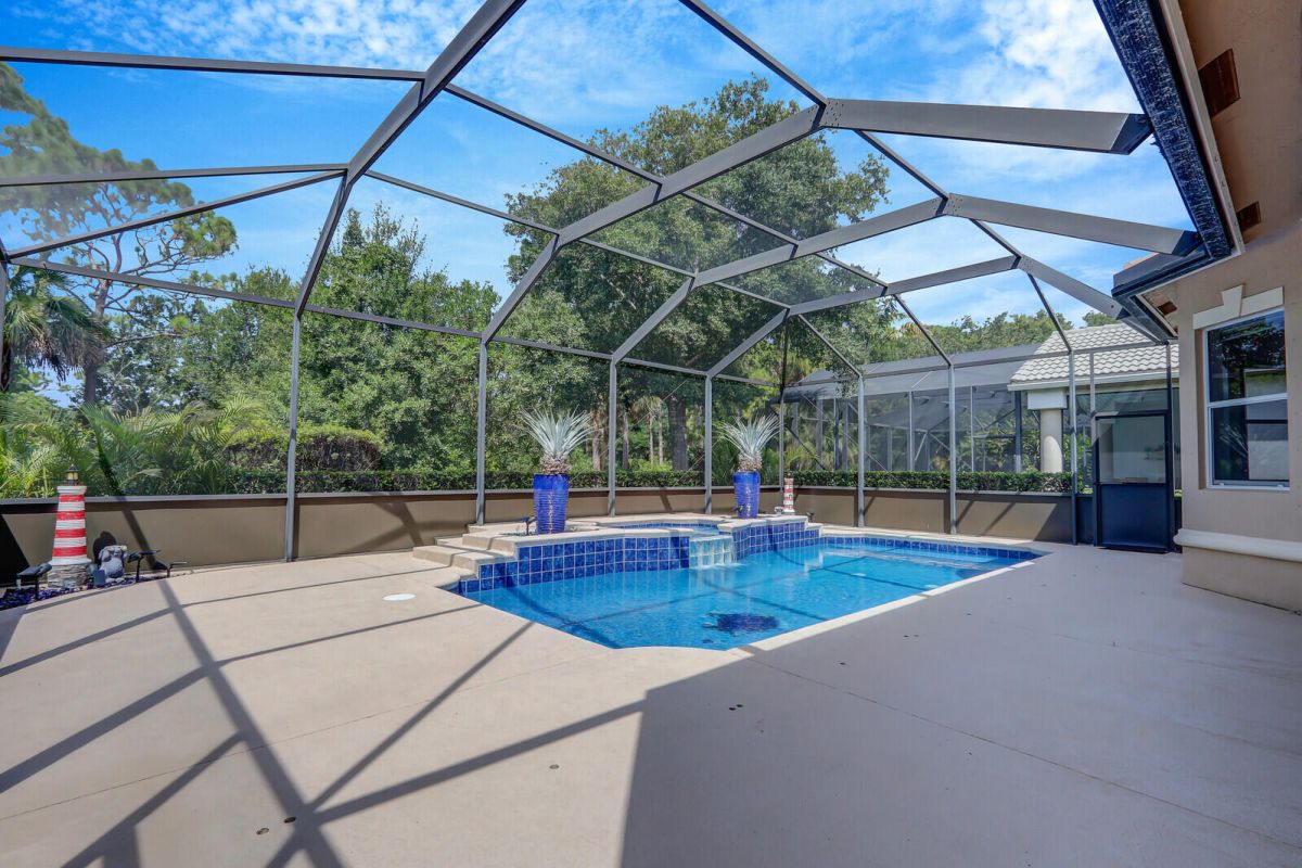 A TRUE GEM, REFRESHED WITH A NEW MODERN LOOK, IN THE HEART OF PGA VILLAGE! Featuring a spectacular pool & spa complimented by an extended screened lanai-ideal for outdoor entertaining or peaceful relaxation. The pool is equipped with solar heating installed in 2018 & a new pool heater in 2023, providing year-round enjoyment in your own private oasis. This home boasts a light, bright open floor plan, freshly painted walls & brand new carpet in the bedrooms, providing a modern, welcoming feel throughout. Updates include a newer A/C & water heater, ensuring comfort & efficiency. Nestled close to the Legacy Golf & Tennis Club & The PGA Golf Club & it's 3 championship courses, a golfer's paradise. Don't miss out on this opportunity to own a move-in-ready home PGA Village!