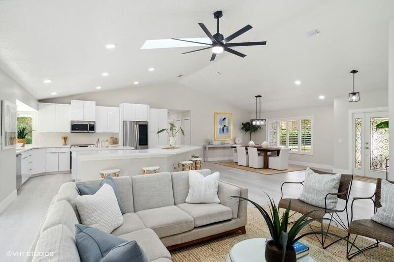 Welcome to your dream home! This stunning 2154 square foot house is located on a private cul-de-sac, set on a sprawling 1-acre lot, making it the perfect retreat from the hustle and bustle of everyday life. Completely remodeled, this home features 3 generously sized bedrooms and 2 beautifully designed baths, offering ample space and comfort. The open floor plan seamlessly connects the living room, dining room, and kitchen, creating a warm and inviting space to entertain and spend time with family and friends. The kitchen is a chef's dream, boasting modern stainless-steel appliances, quartz counter tops, a spacious center island, and ample cabinet space for all your culinary needs. You'll love preparing meals and hosting dinner parties in this stunning space. The master suite is a private