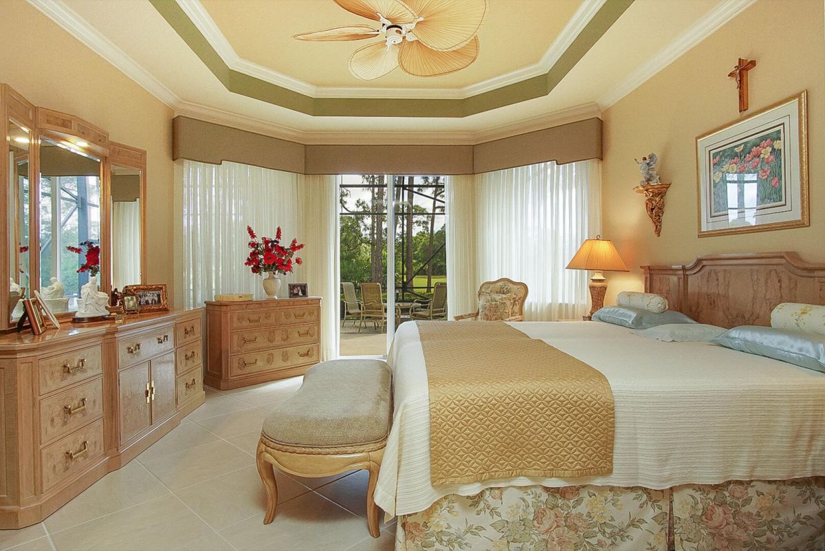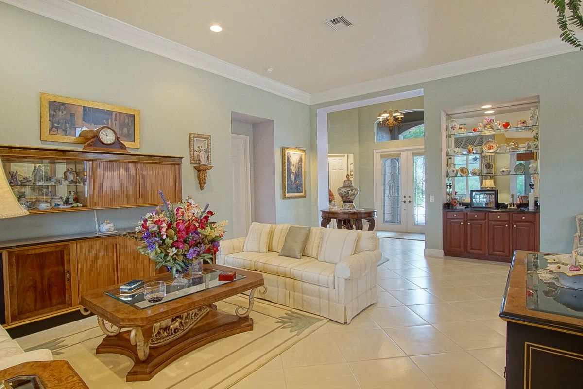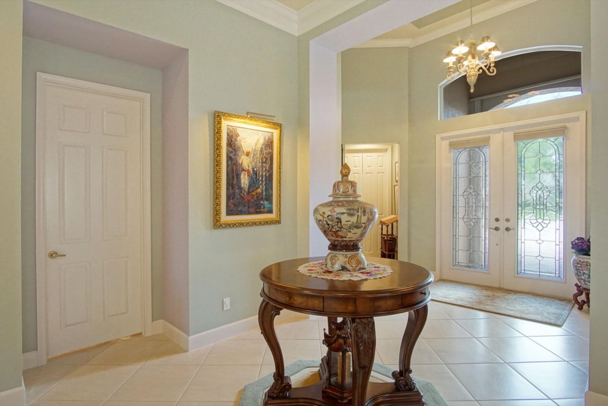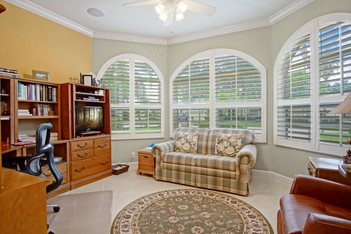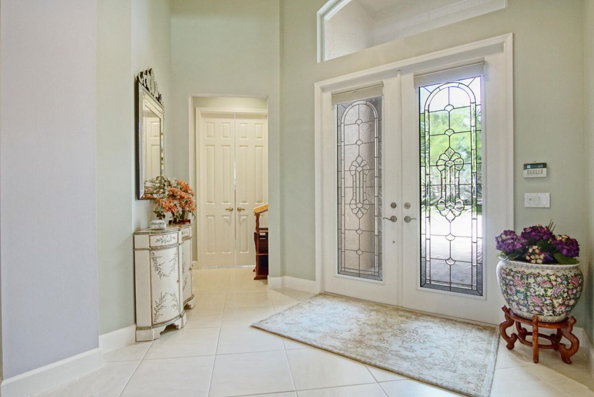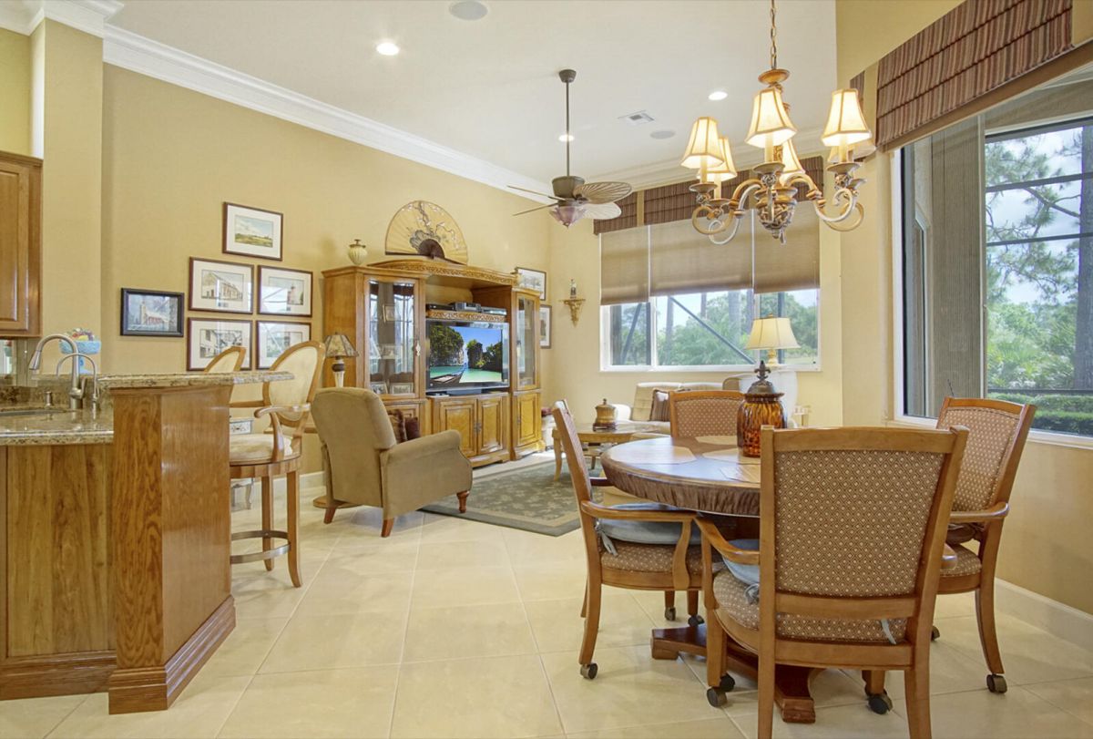 Beautiful and pristine golf course home offers a fabulous view of the 13th hole on the Rider course. The custom features inside and outside will not disappoint! Upon entry the double leaded glass doors and the 12 ft. ceilings with detailed crown molding creates elegance throughout. The home has 2 bedroom ensuites, total of 2.5 baths, an office, a formal living room, a large formal dining room and a great room. The kitchen has stainless appliances, a pantry, slide out shelves, granite countertops and a custom oak wall under the snackbar counter. 3 hurricane impact windows were installed in the kitchen in 2019 and the A/C system was installed in 2019.