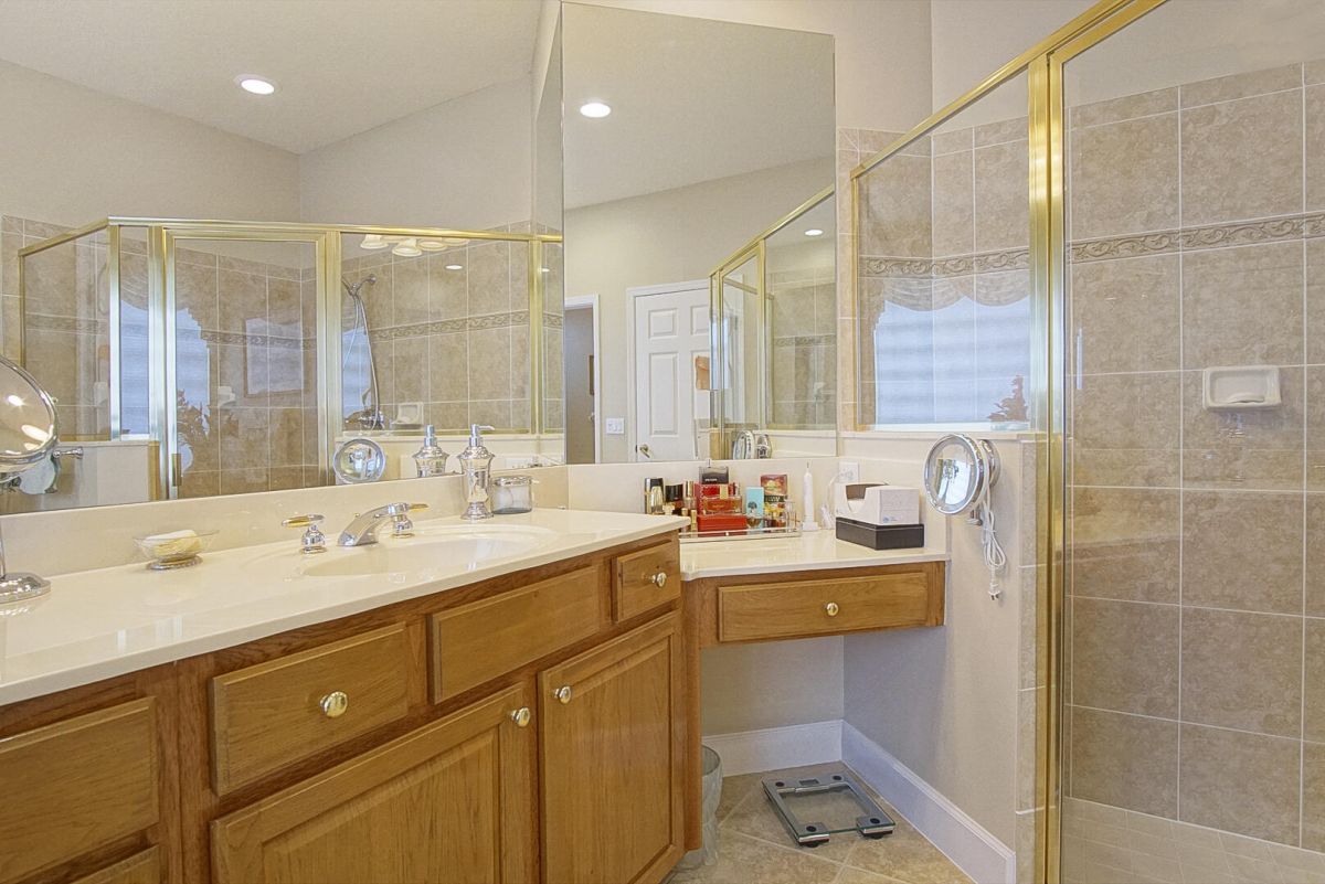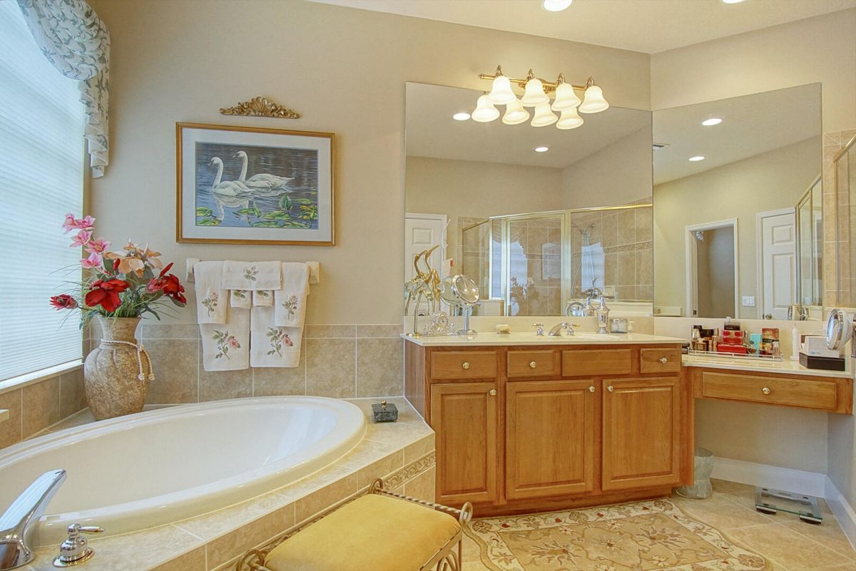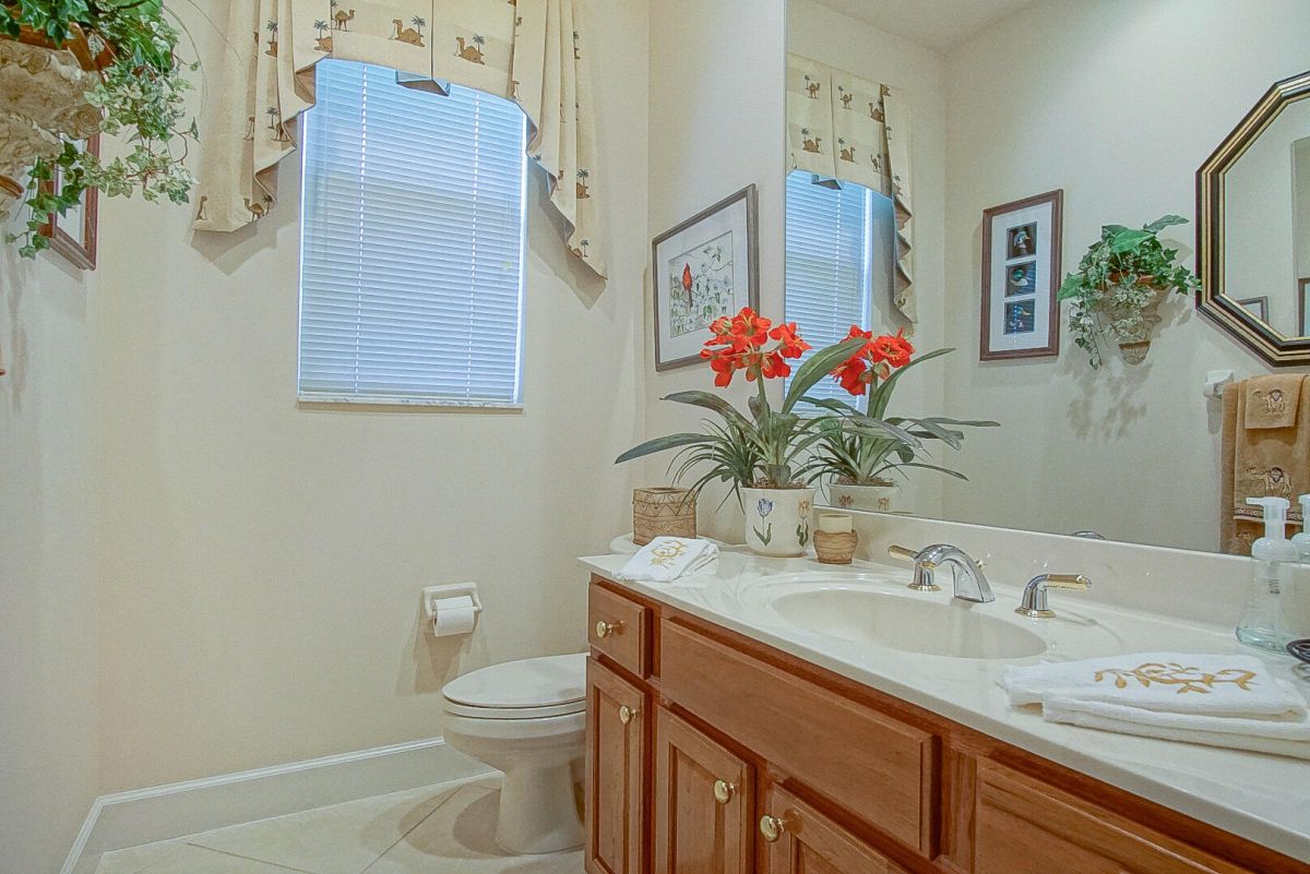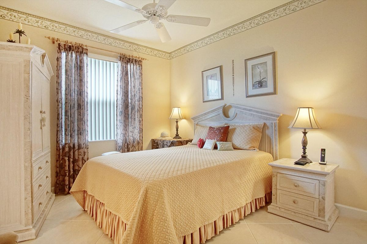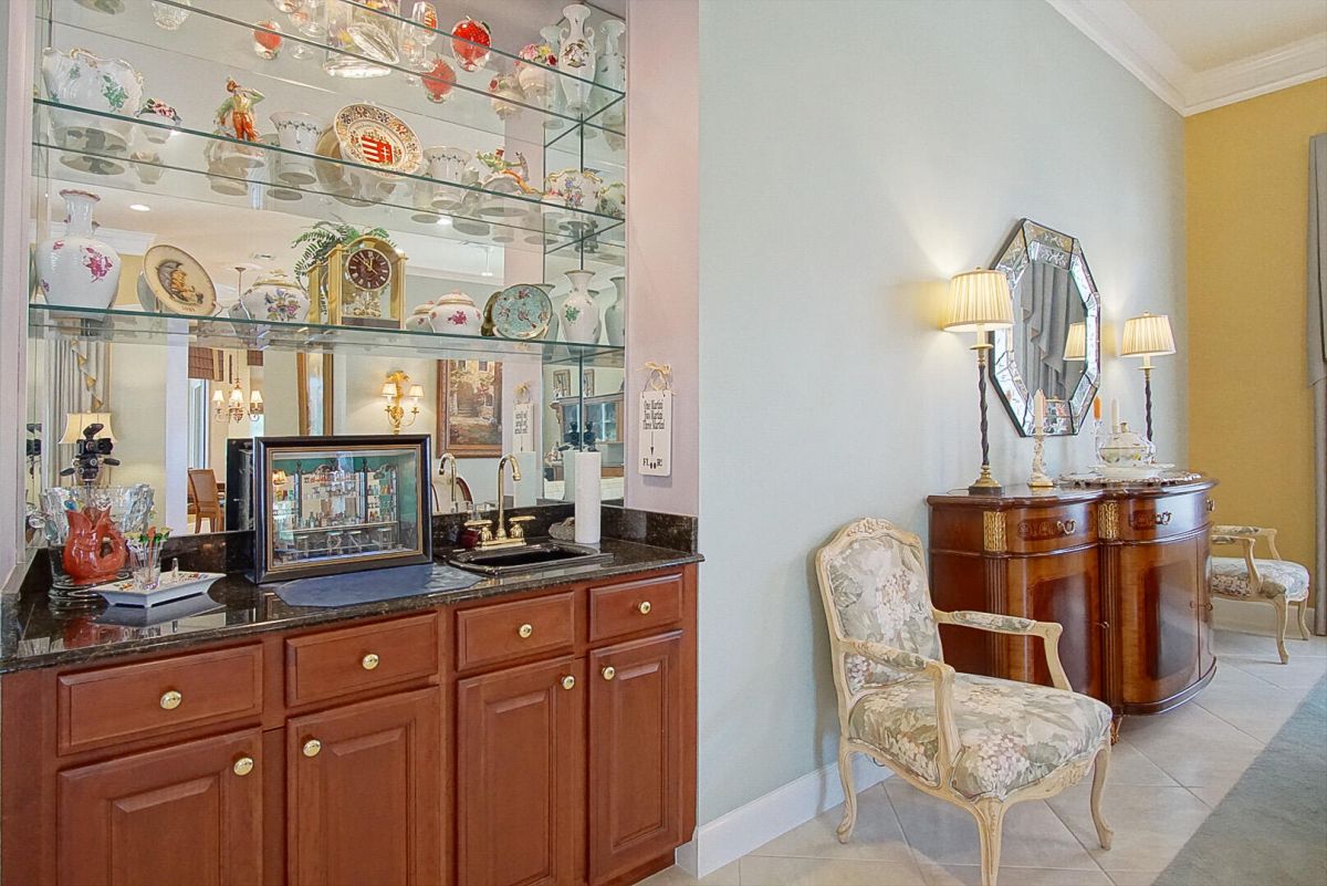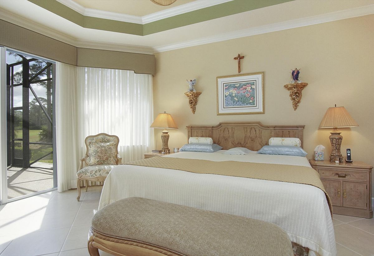 Beautiful and pristine golf course home offers a fabulous view of the 13th hole on the Rider course. The custom features inside and outside will not disappoint! Upon entry the double leaded glass doors and the 12 ft. ceilings with detailed crown molding creates elegance throughout. The home has 2 bedroom ensuites, total of 2.5 baths, an office, a formal living room, a large formal dining room and a great room. The kitchen has stainless appliances, a pantry, slide out shelves, granite countertops and a custom oak wall under the snackbar counter. 3 hurricane impact windows were installed in the kitchen in 2019 and the A/C system was installed in 2019.