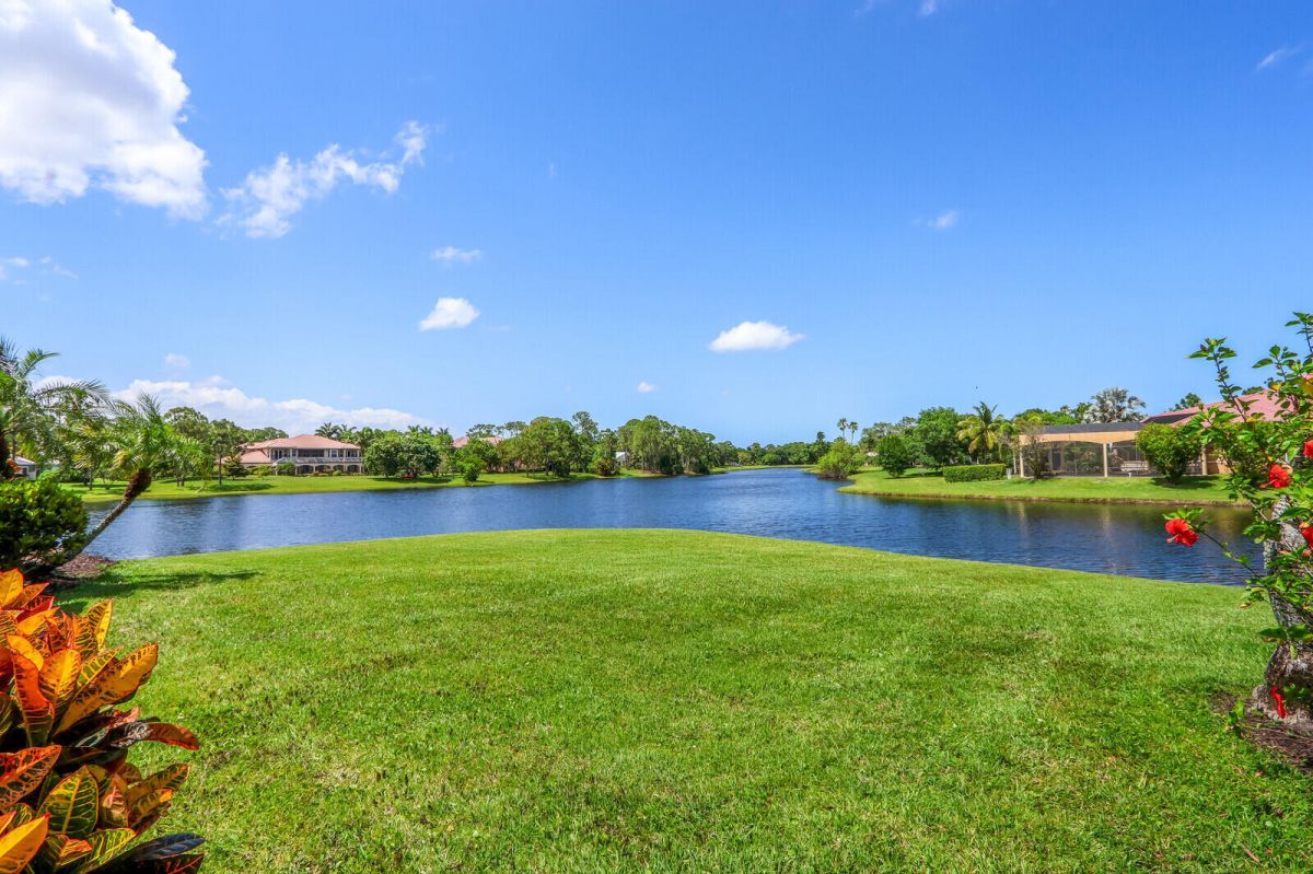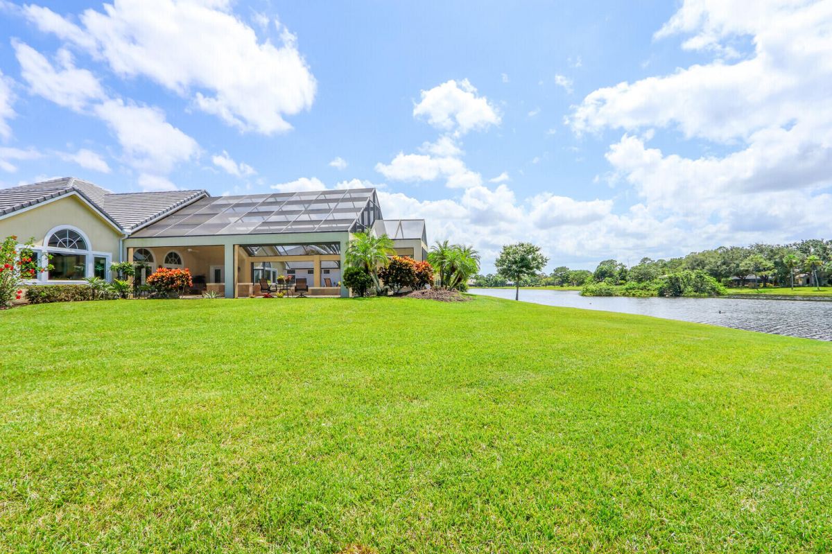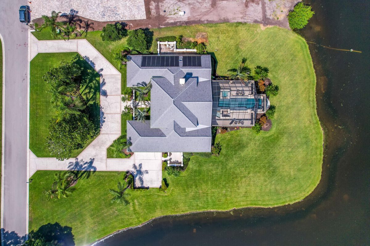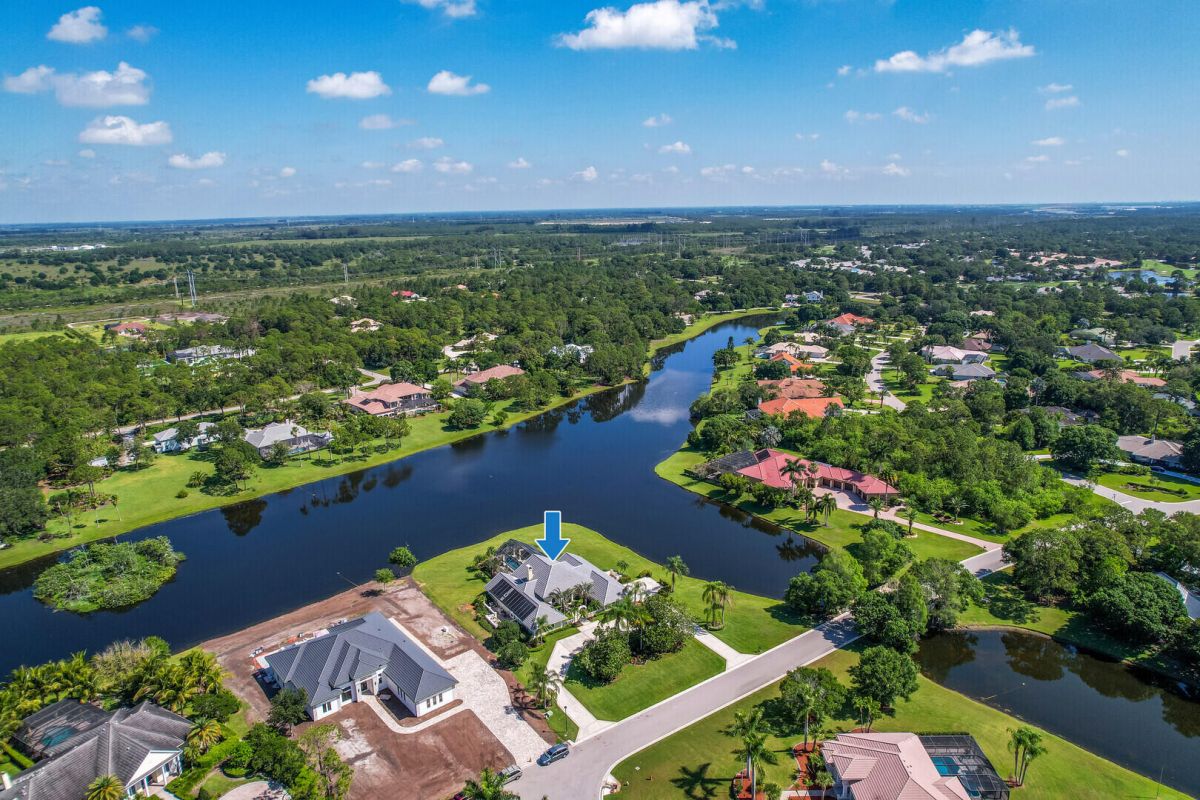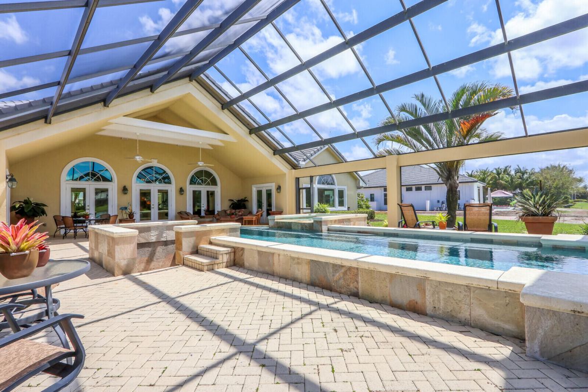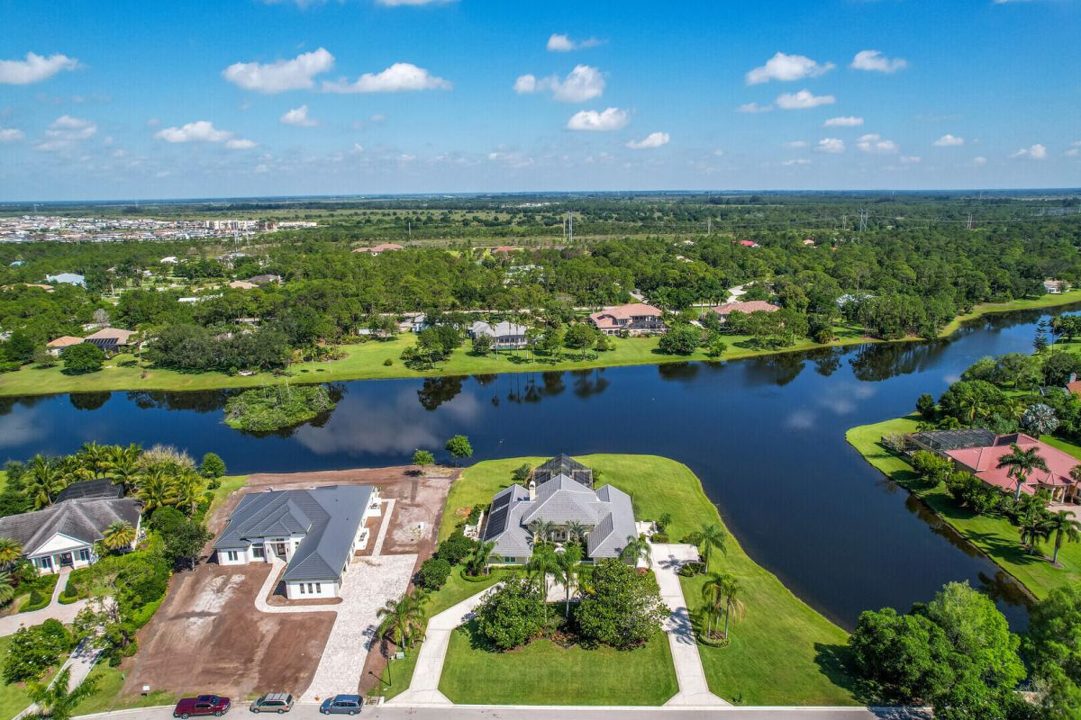 On one of the most stunning locations within the PGA Village sits this custom beauty. 2.35 acres of tranquility, with water on two sides. As you step through the front door your gaze is drawn to the amazing infinity edge pool. Three bedroom suites are within the 3652SF of living space, along with a large office/den space. Terra cotta tile throughout the main living areas as well as a fireplace in the living room. This unique home is a ''must see''.