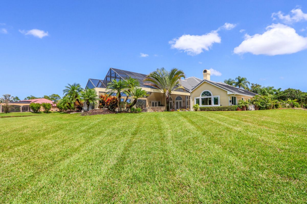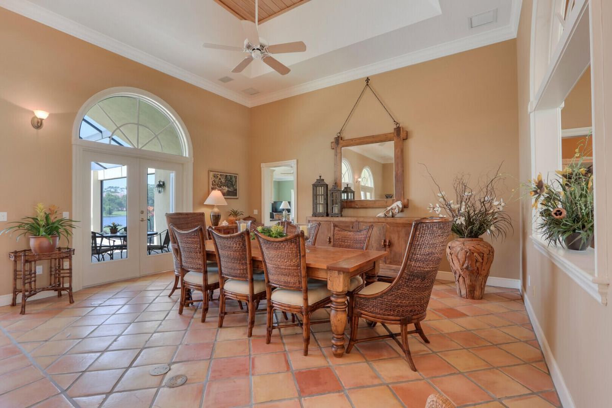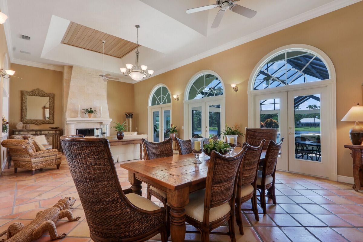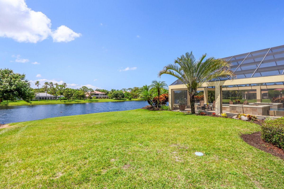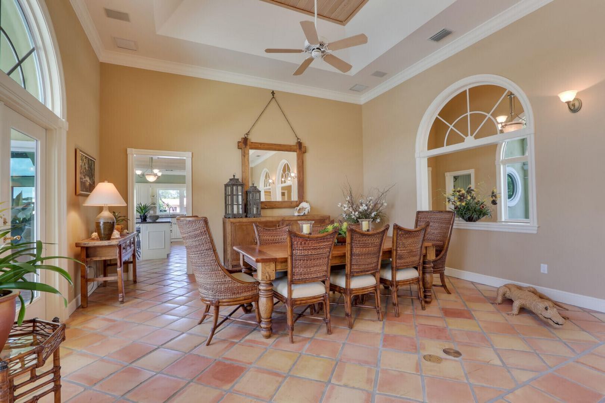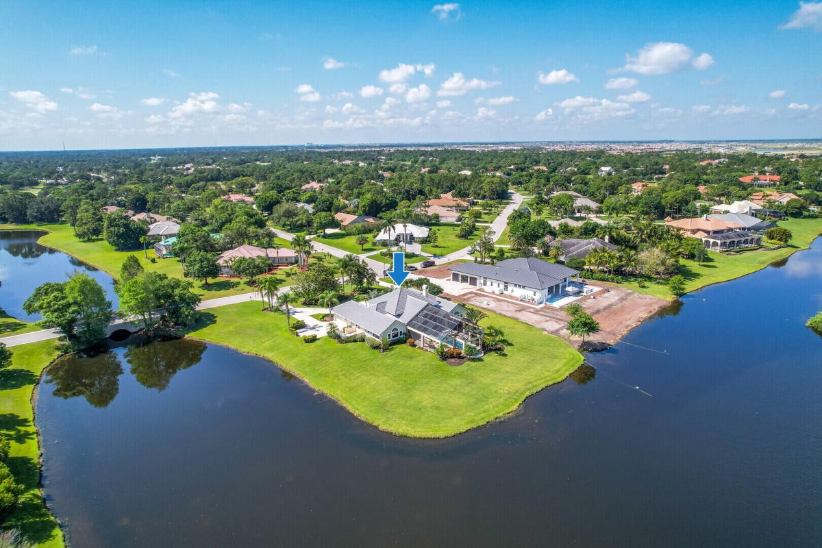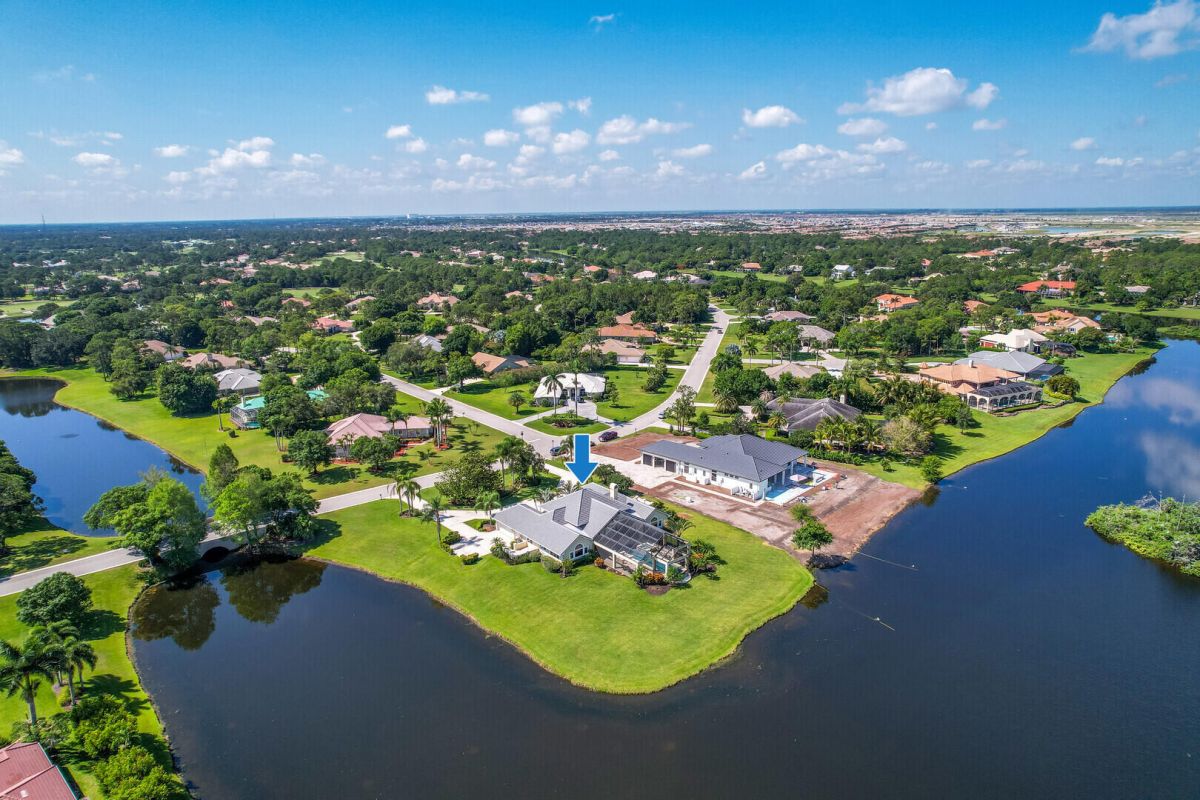 On one of the most stunning locations within the PGA Village sits this custom beauty. 2.35 acres of tranquility, with water on two sides. As you step through the front door your gaze is drawn to the amazing infinity edge pool. Three bedroom suites are within the 3652SF of living space, along with a large office/den space. Terra cotta tile throughout the main living areas as well as a fireplace in the living room. This unique home is a ''must see''.