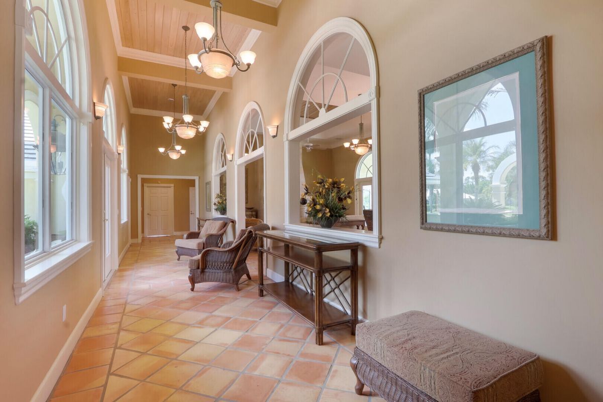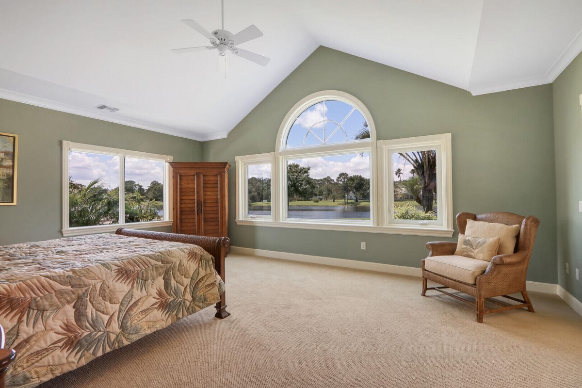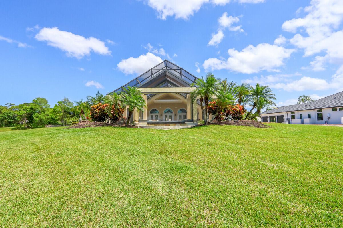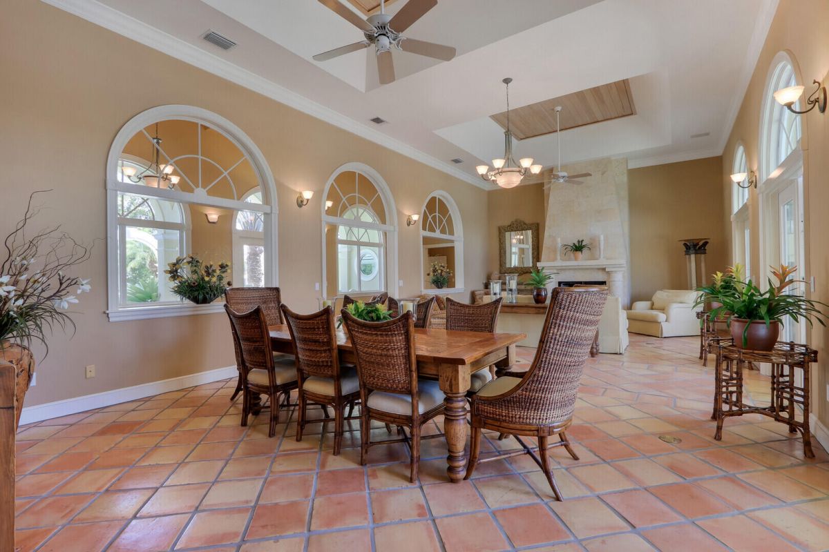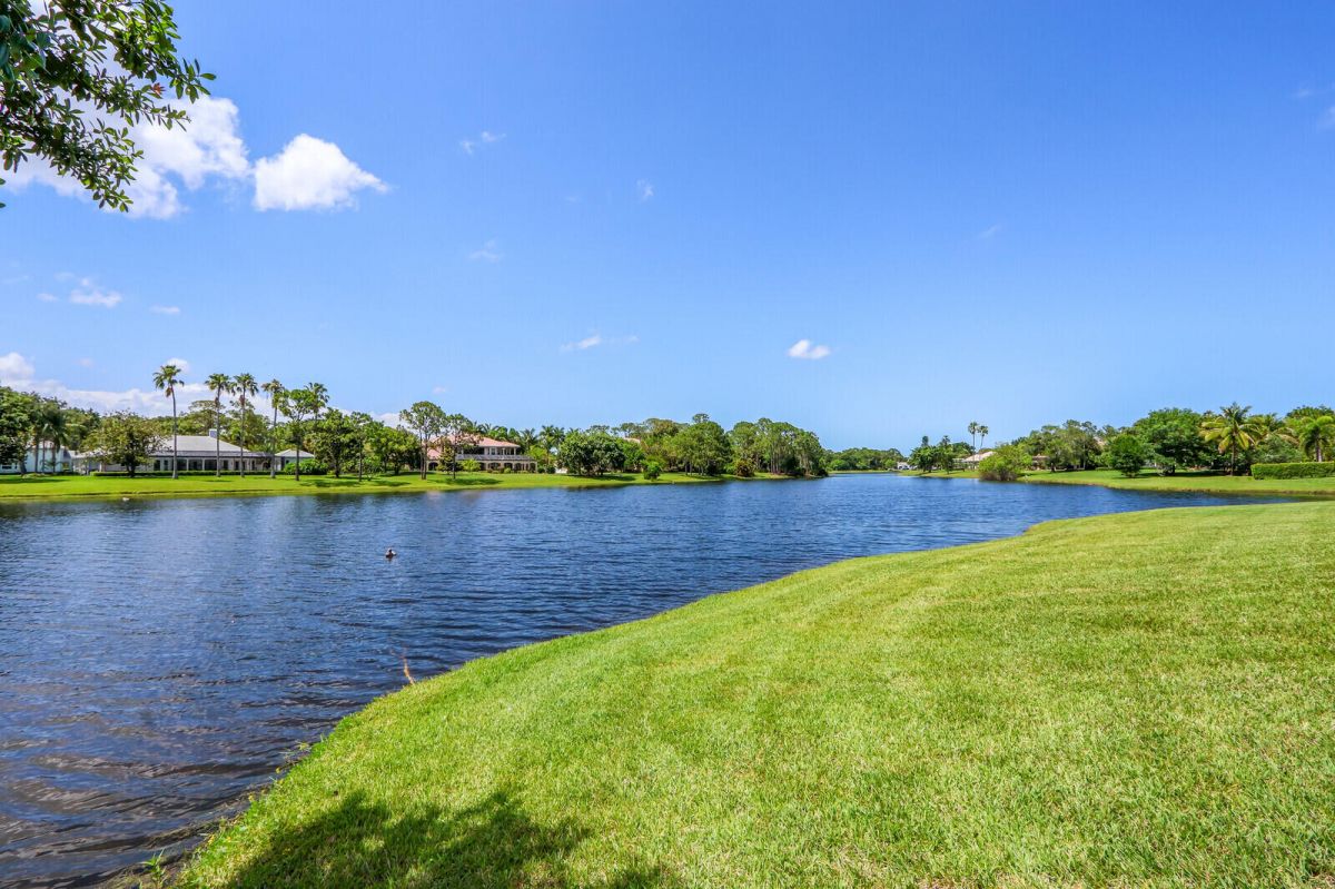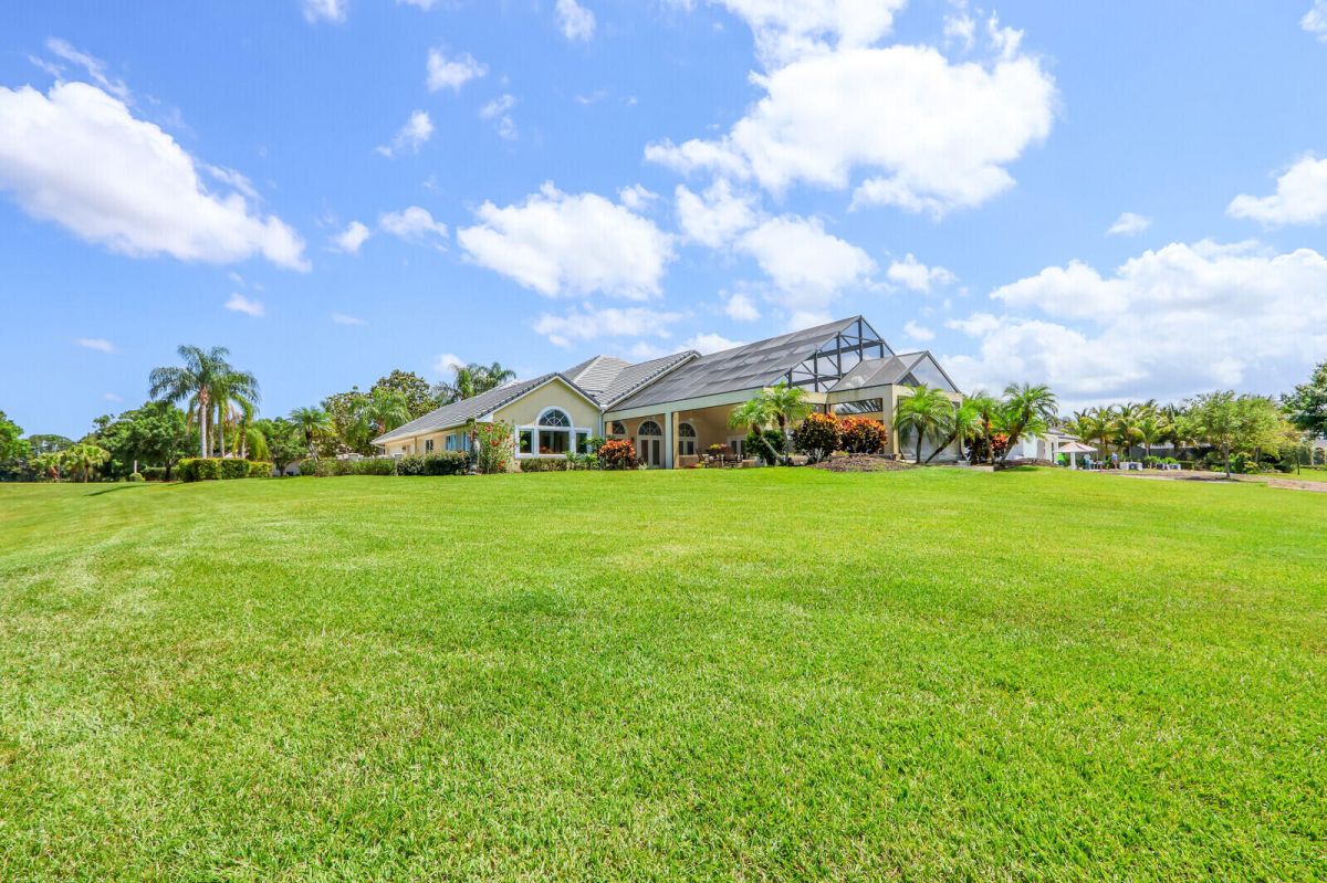 On one of the most stunning locations within the PGA Village sits this custom beauty. 2.35 acres of tranquility, with water on two sides. As you step through the front door your gaze is drawn to the amazing infinity edge pool. Three bedroom suites are within the 3652SF of living space, along with a large office/den space. Terra cotta tile throughout the main living areas as well as a fireplace in the living room. This unique home is a ''must see''.