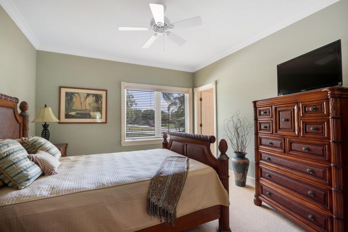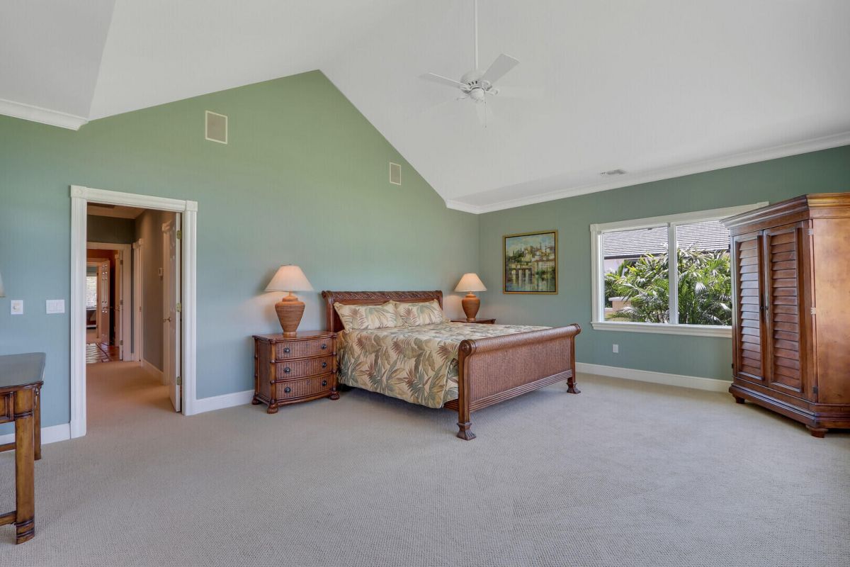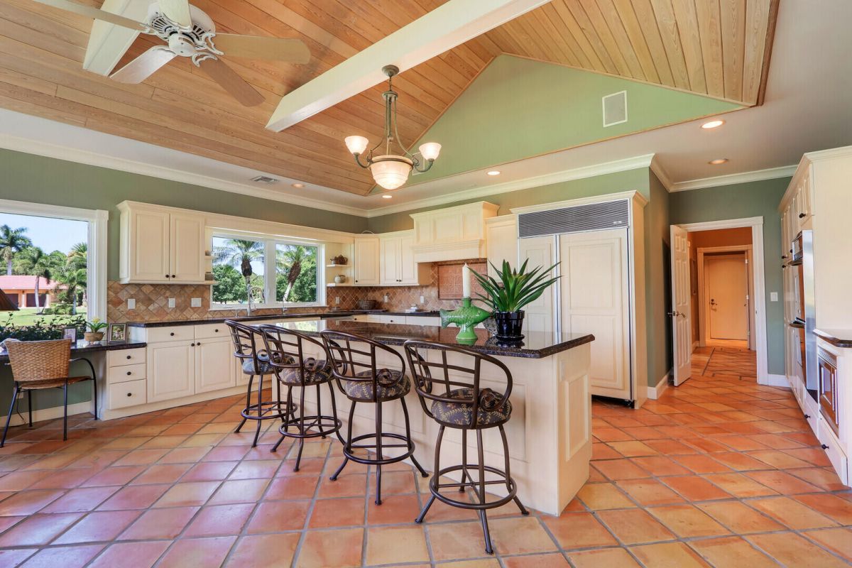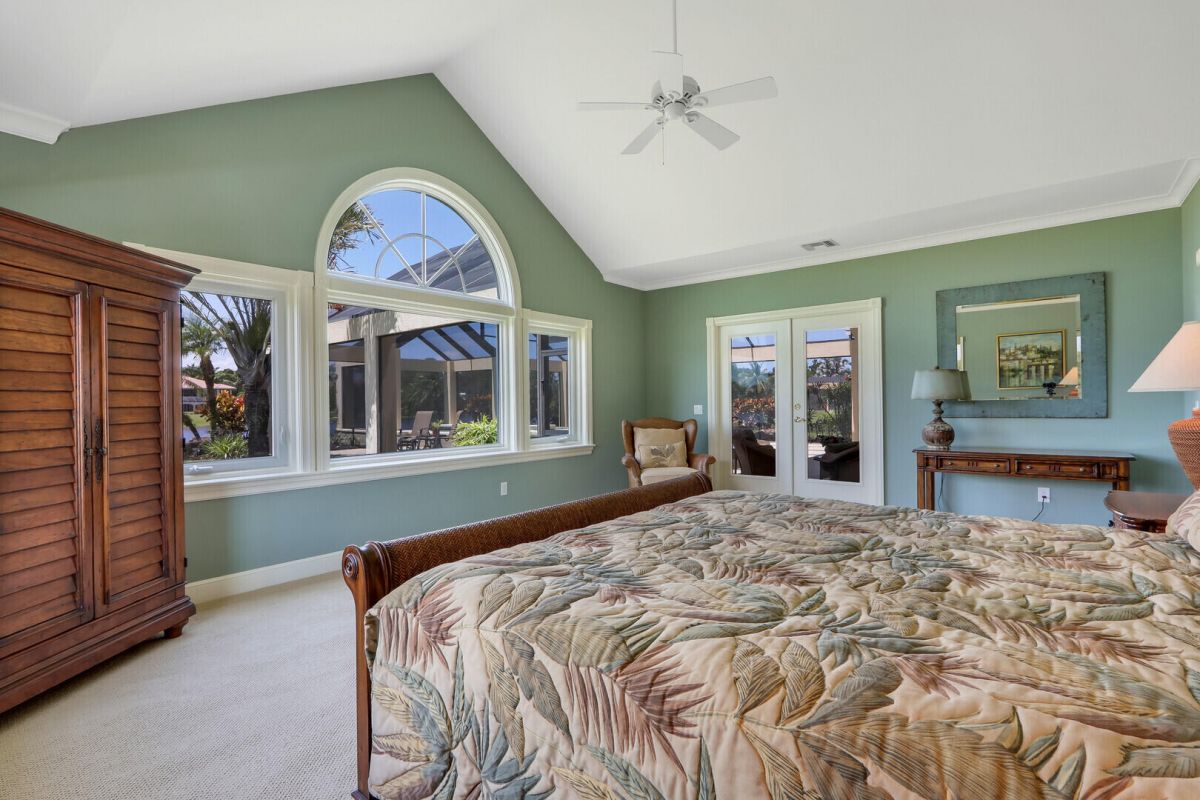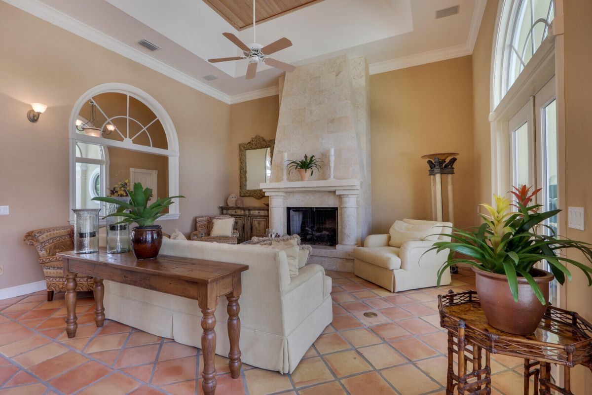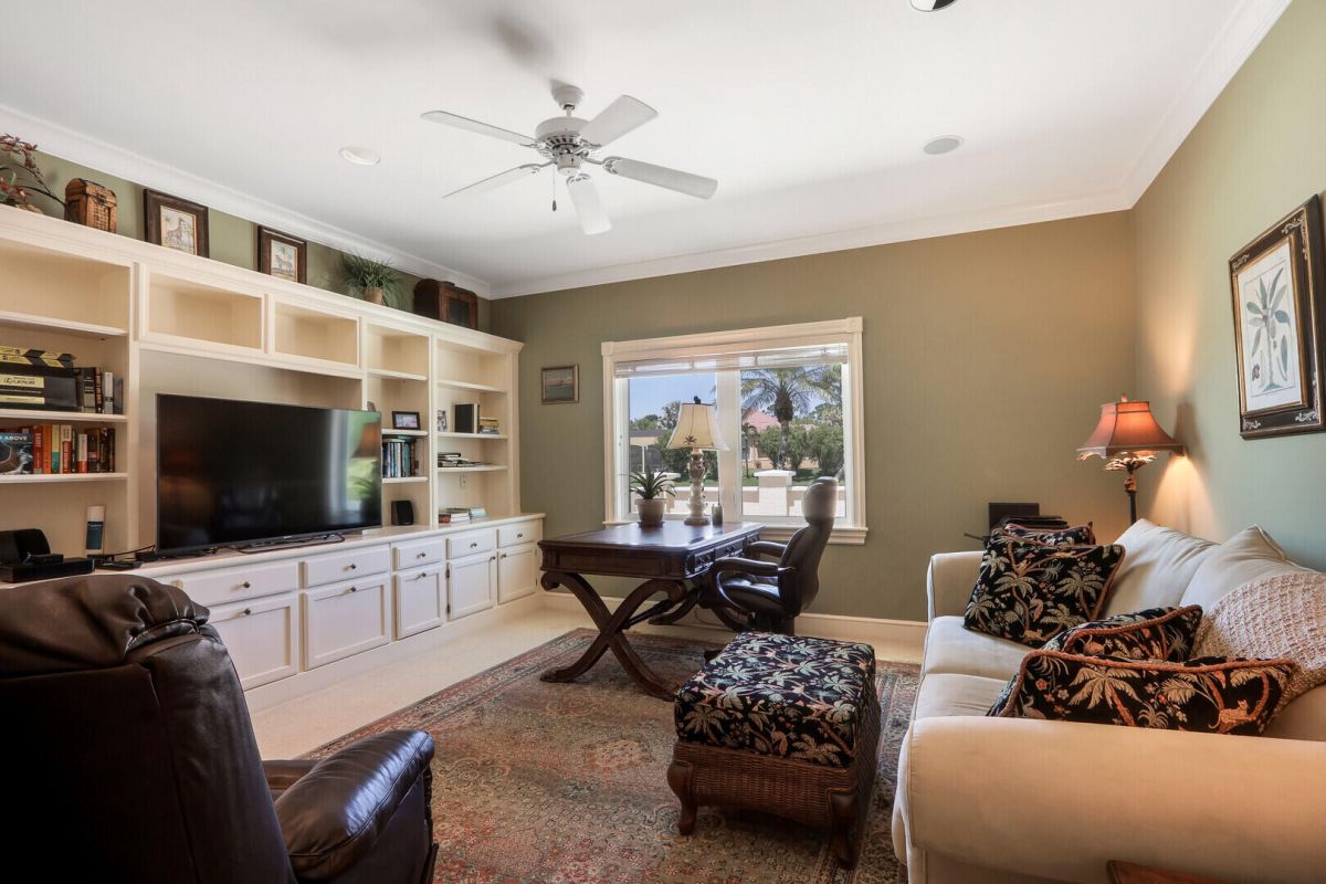 On one of the most stunning locations within the PGA Village sits this custom beauty. 2.35 acres of tranquility, with water on two sides. As you step through the front door your gaze is drawn to the amazing infinity edge pool. Three bedroom suites are within the 3652SF of living space, along with a large office/den space. Terra cotta tile throughout the main living areas as well as a fireplace in the living room. This unique home is a ''must see''.
