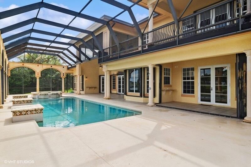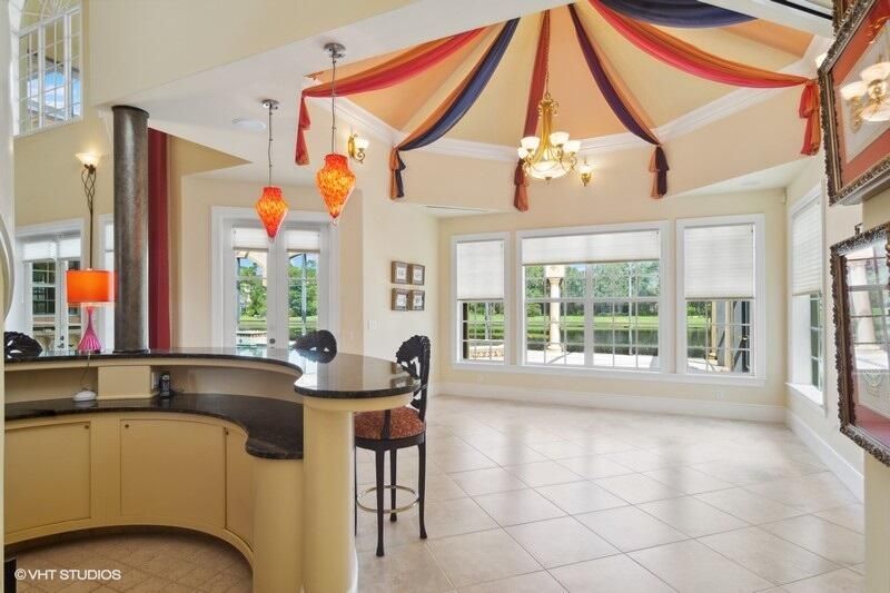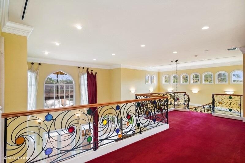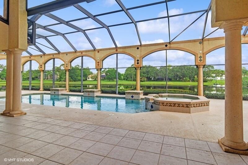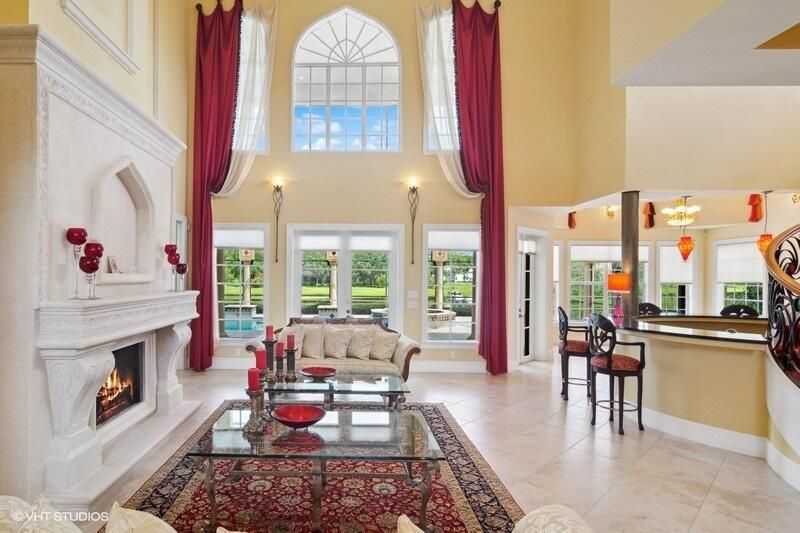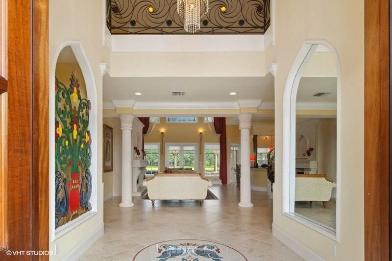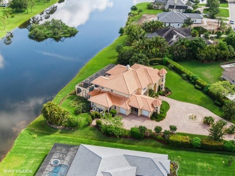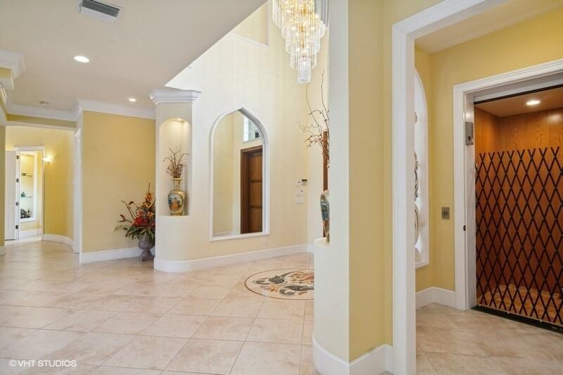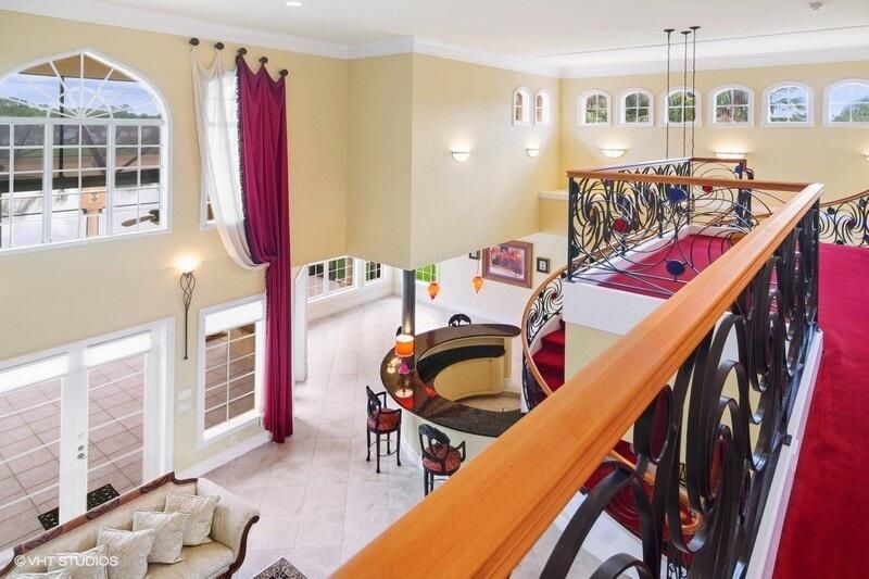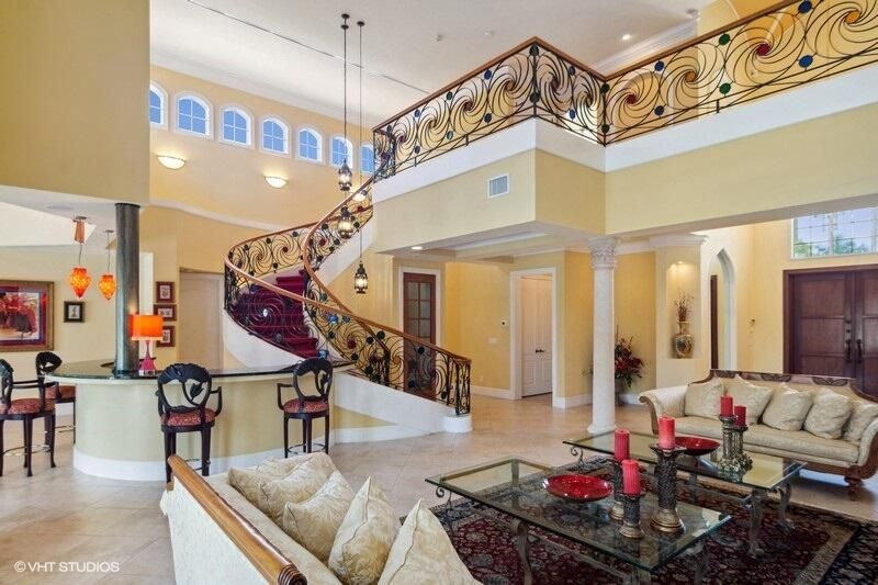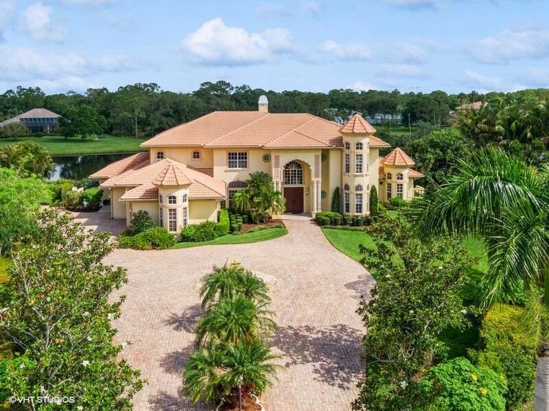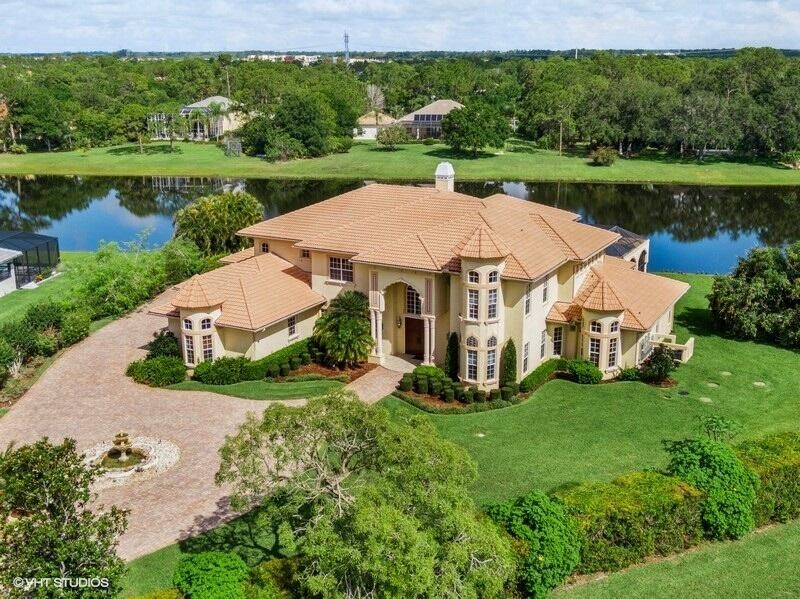 THIS UNIQUE HOME WITH IMPACT GLASS OFFERS 6,849 sq ft under air.Under roof is 10,768 sq ft. Truly a mansion that looks like a castle! Five bedrooms includes 2 master bedrooms, one upstairs, one downstairs, plus a wonderful custom built-in office and 5.5 baths. Formal living, formal dining and a wonderful circle bar area for entertaining!! Use the elevator or the beautiful spiral staircase to retreat to the gorgeous second floor. Large open Chef's Kitchen adjacent family room & breakfast area that over looks the lake. Outside you will find ample entertainment space and a screened covered lanai with a refreshing pool/spa, summer kitchen that overlooks the fabulous view! Additional features include a 3-car garage, generator and buried propane tank. 1.17 acre homesite on private cul-de-sac