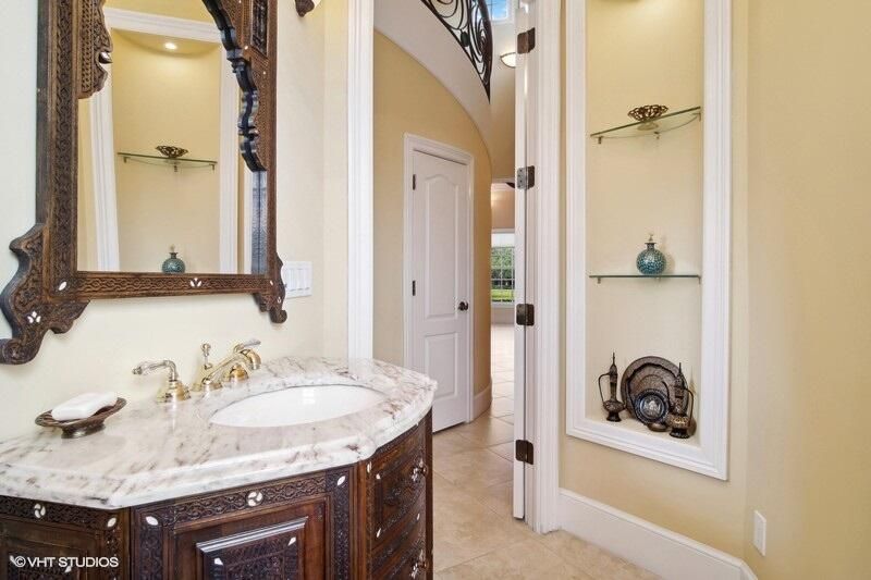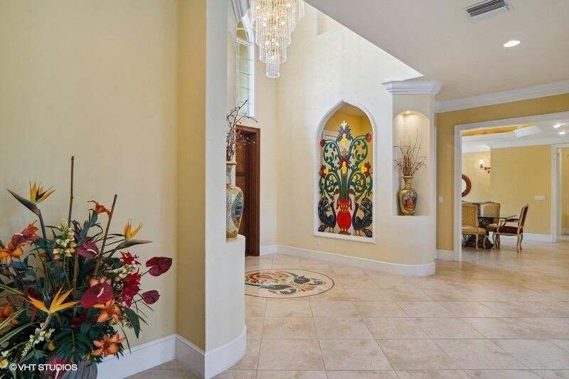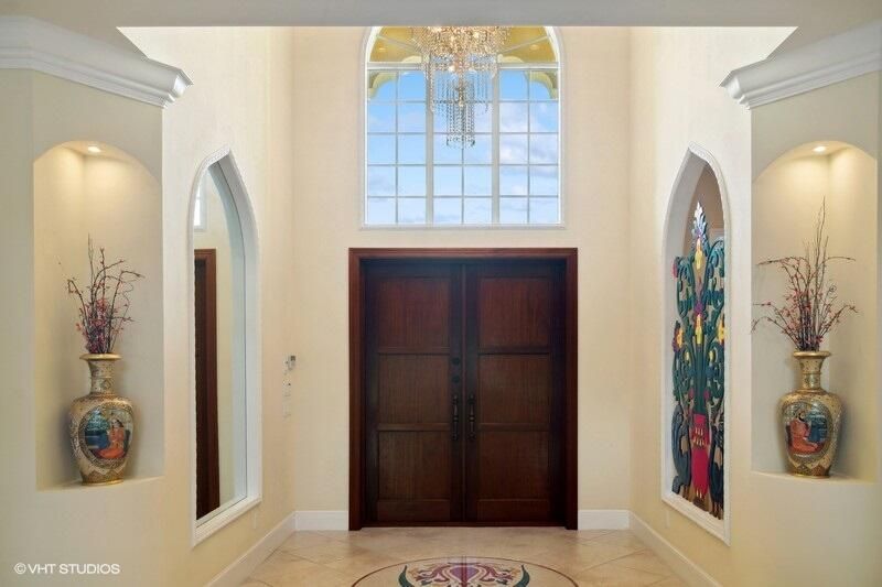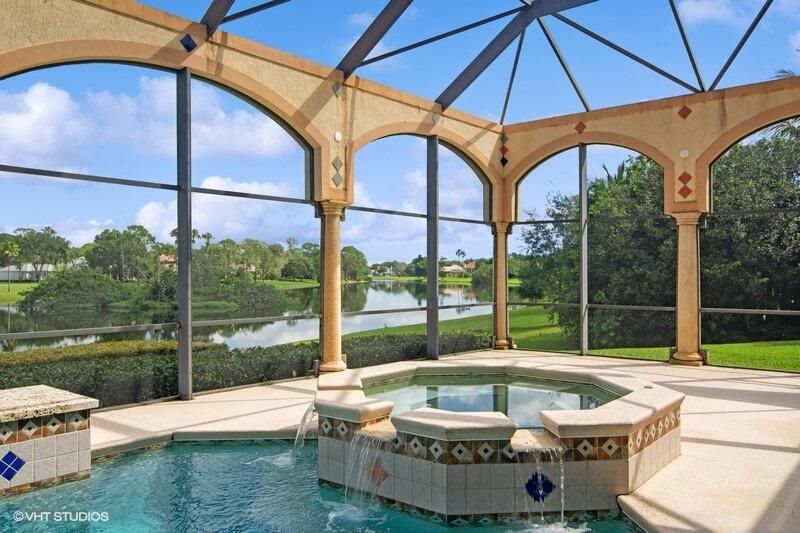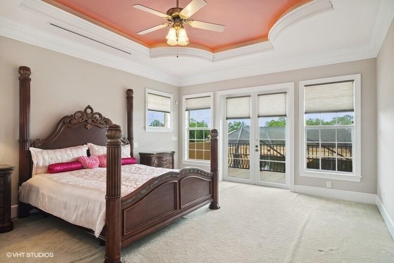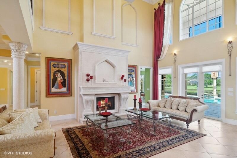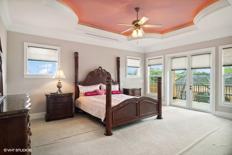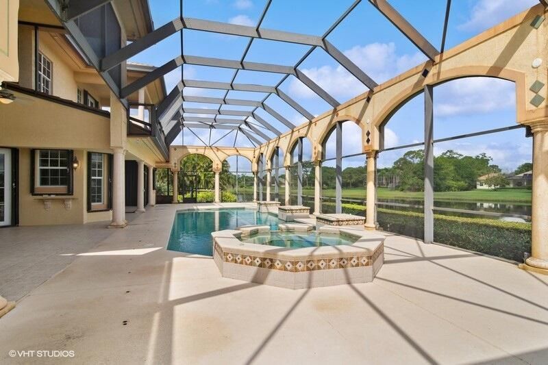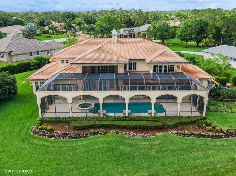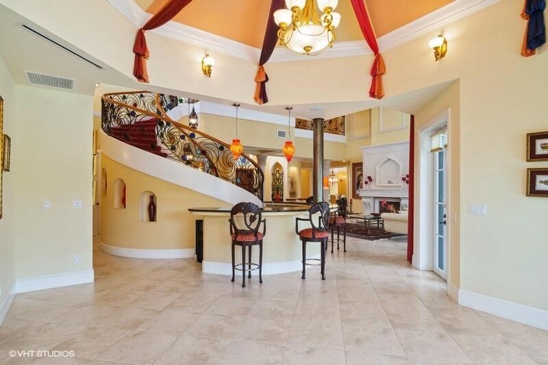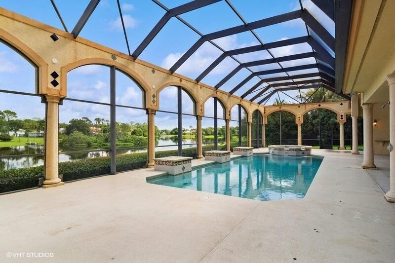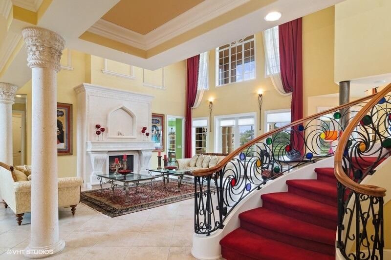 THIS UNIQUE HOME WITH IMPACT GLASS OFFERS 6,849 sq ft under air.Under roof is 10,768 sq ft. Truly a mansion that looks like a castle! Five bedrooms includes 2 master bedrooms, one upstairs, one downstairs, plus a wonderful custom built-in office and 5.5 baths. Formal living, formal dining and a wonderful circle bar area for entertaining!! Use the elevator or the beautiful spiral staircase to retreat to the gorgeous second floor. Large open Chef's Kitchen adjacent family room & breakfast area that over looks the lake. Outside you will find ample entertainment space and a screened covered lanai with a refreshing pool/spa, summer kitchen that overlooks the fabulous view! Additional features include a 3-car garage, generator and buried propane tank. 1.17 acre homesite on private cul-de-sac