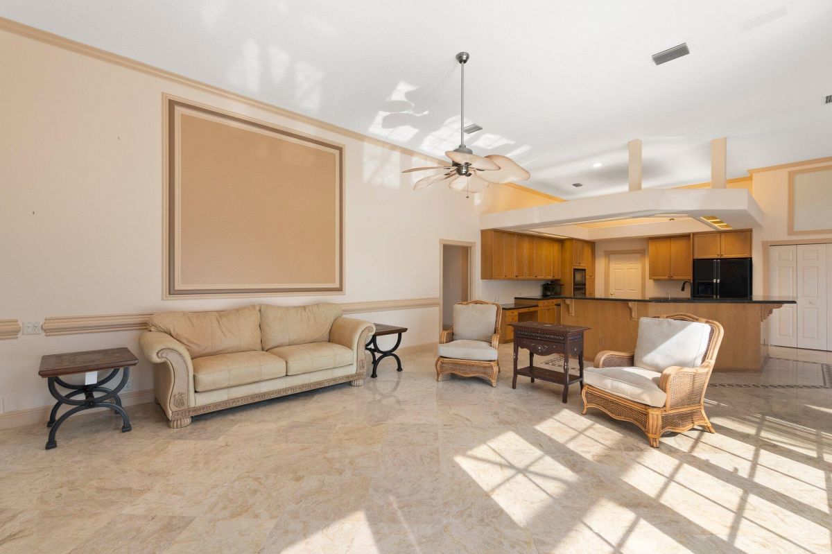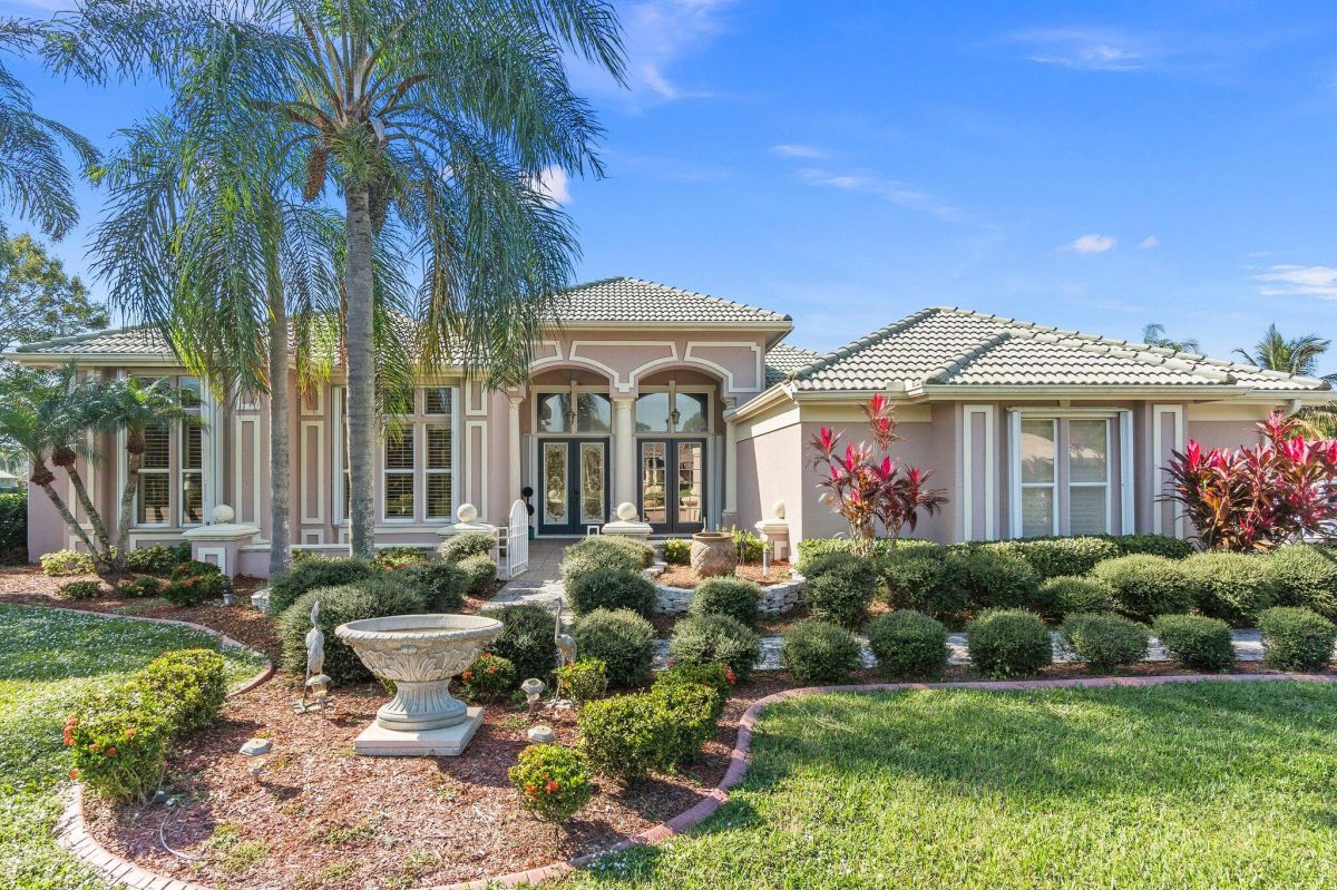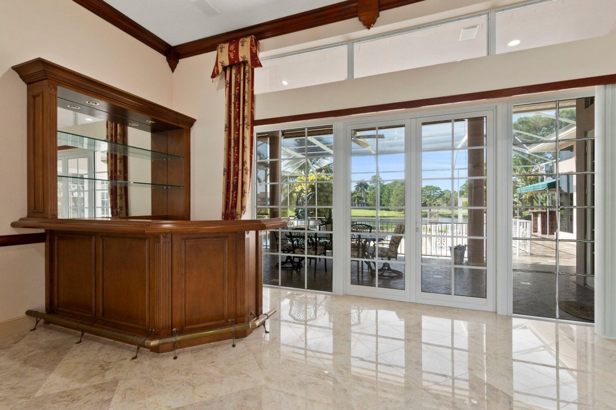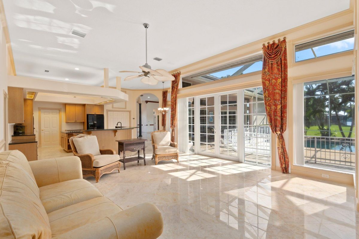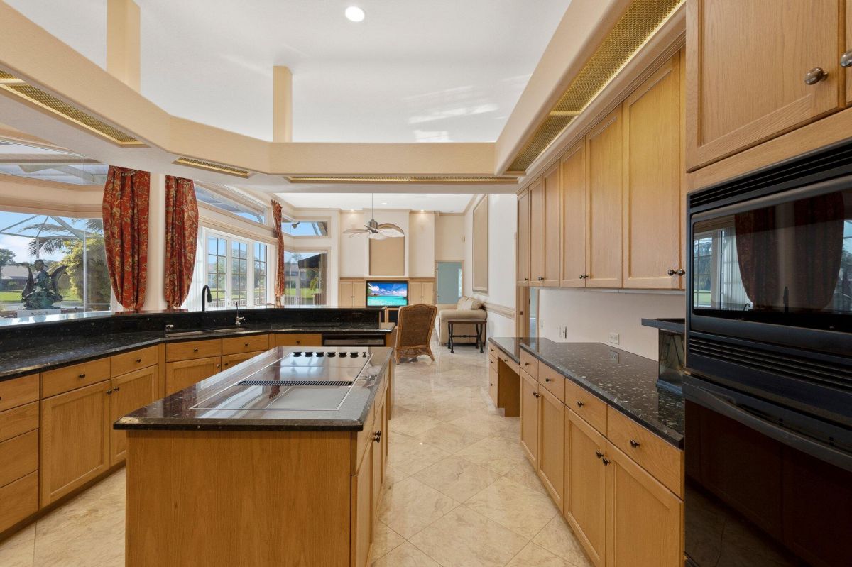 Nestled within a serene gated golf community, this meticulously planned estate home occupies a generous 1.53-acre lot. Step into an opulent entranceway that gracefully unfolds into the formal living area, dining space, and a versatile den/office.Boasting essential enhancements like impact windows, a newer GENERAC system, a built-in bar, and exquisite Italian marble flooring, this residence invites an abundance of natural light through its multitude of windows. Ready for immediate occupancy.