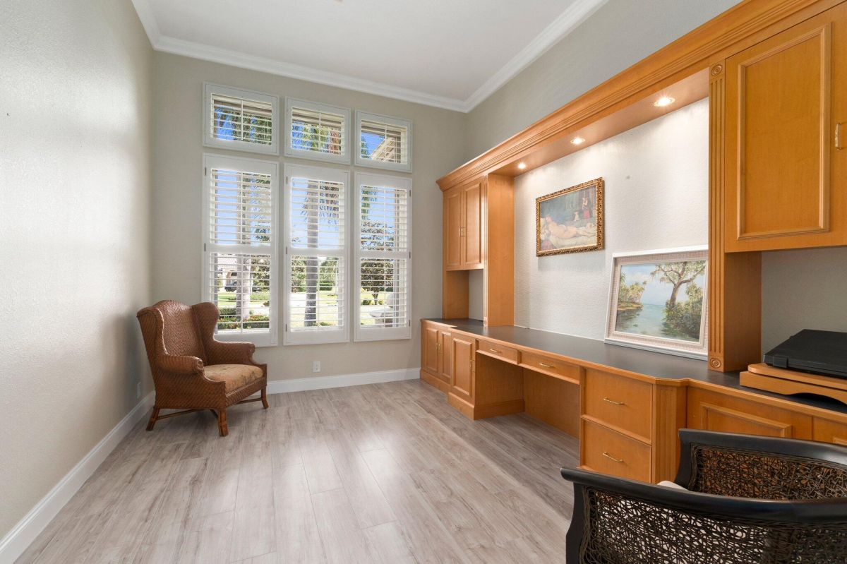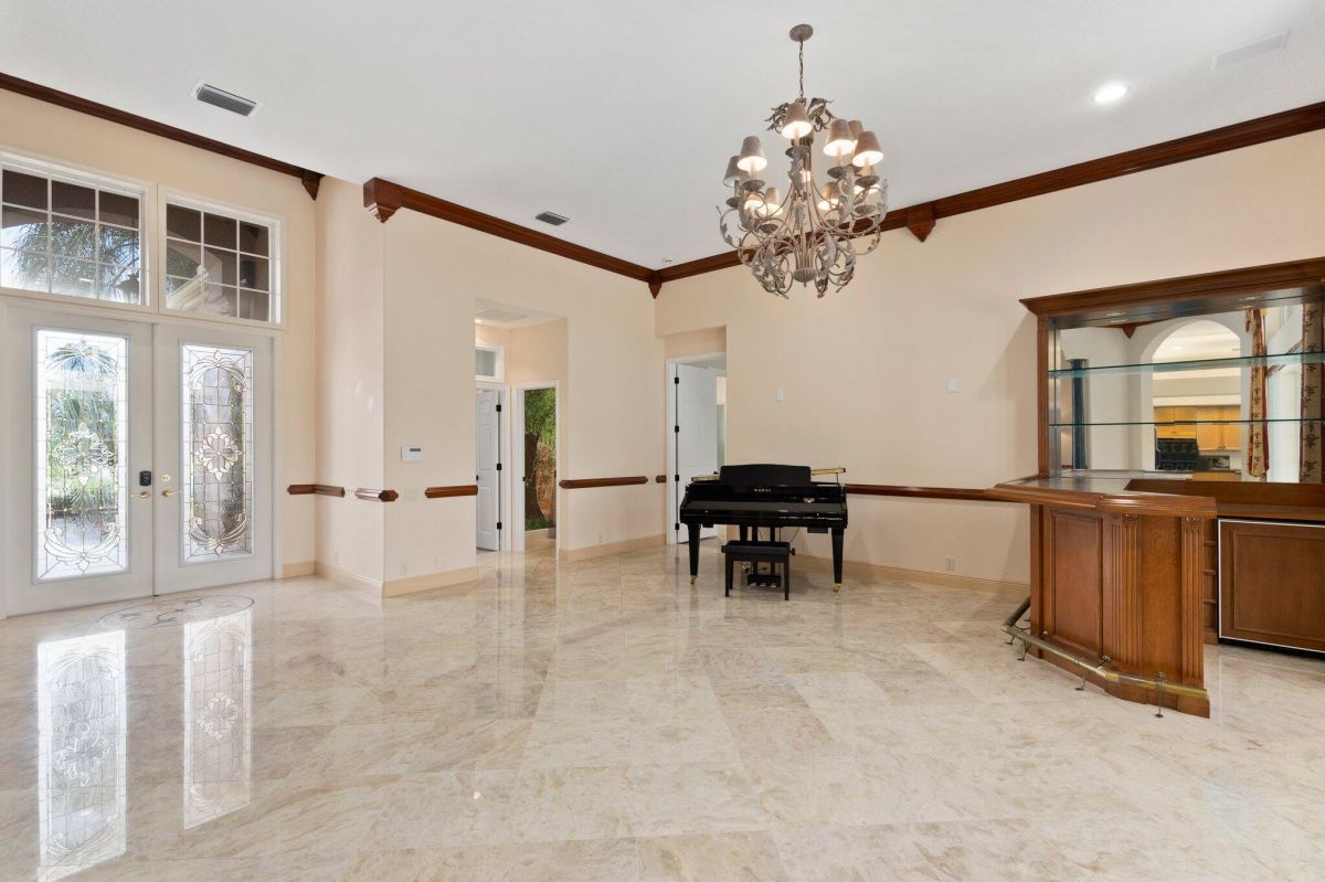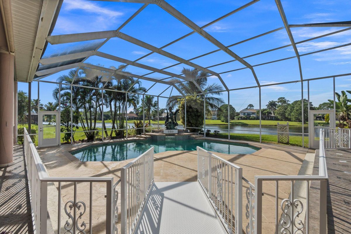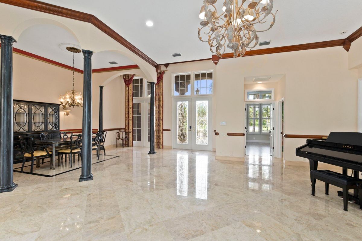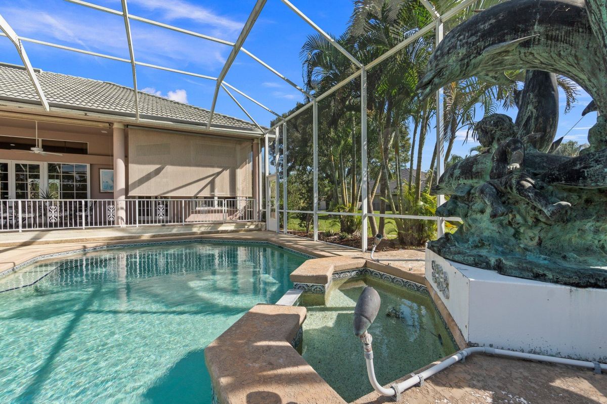 Nestled within a serene gated golf community, this meticulously planned estate home occupies a generous 1.53-acre lot. Step into an opulent entranceway that gracefully unfolds into the formal living area, dining space, and a versatile den/office.Boasting essential enhancements like impact windows, a newer GENERAC system, a built-in bar, and exquisite Italian marble flooring, this residence invites an abundance of natural light through its multitude of windows. Ready for immediate occupancy.