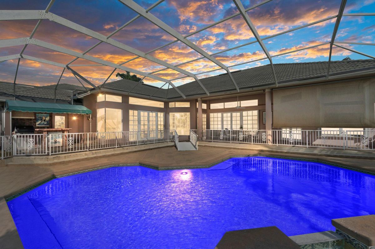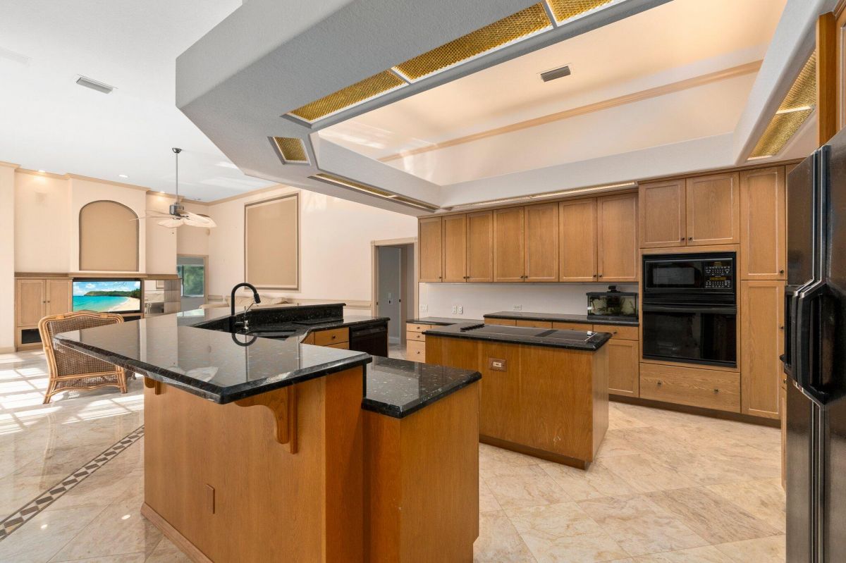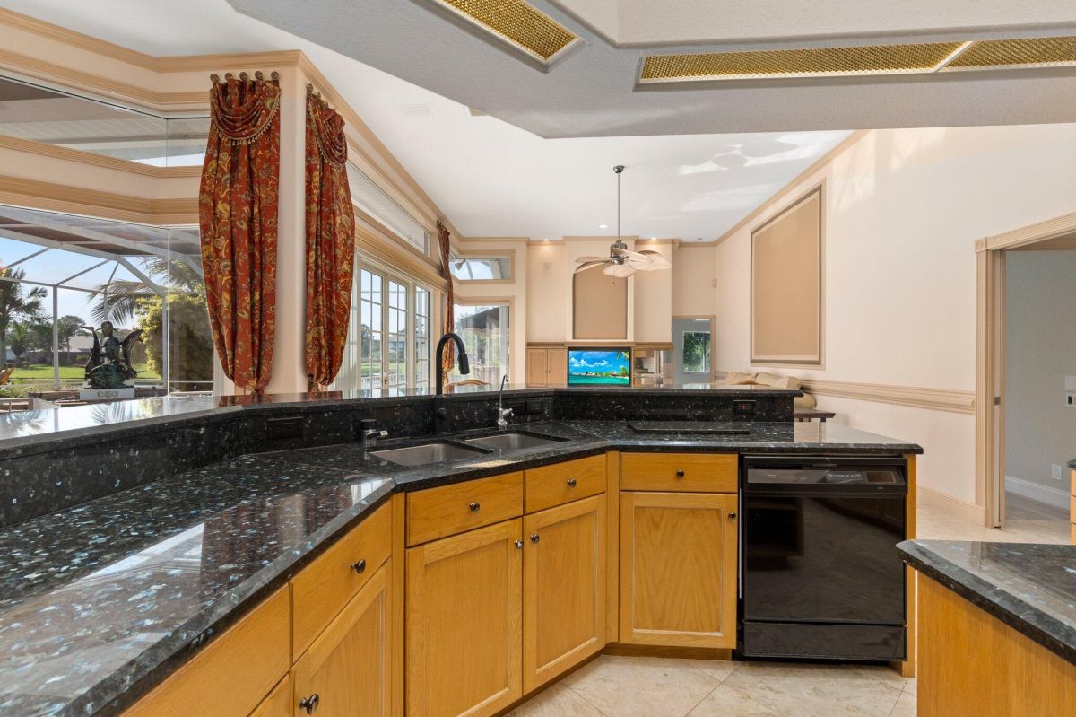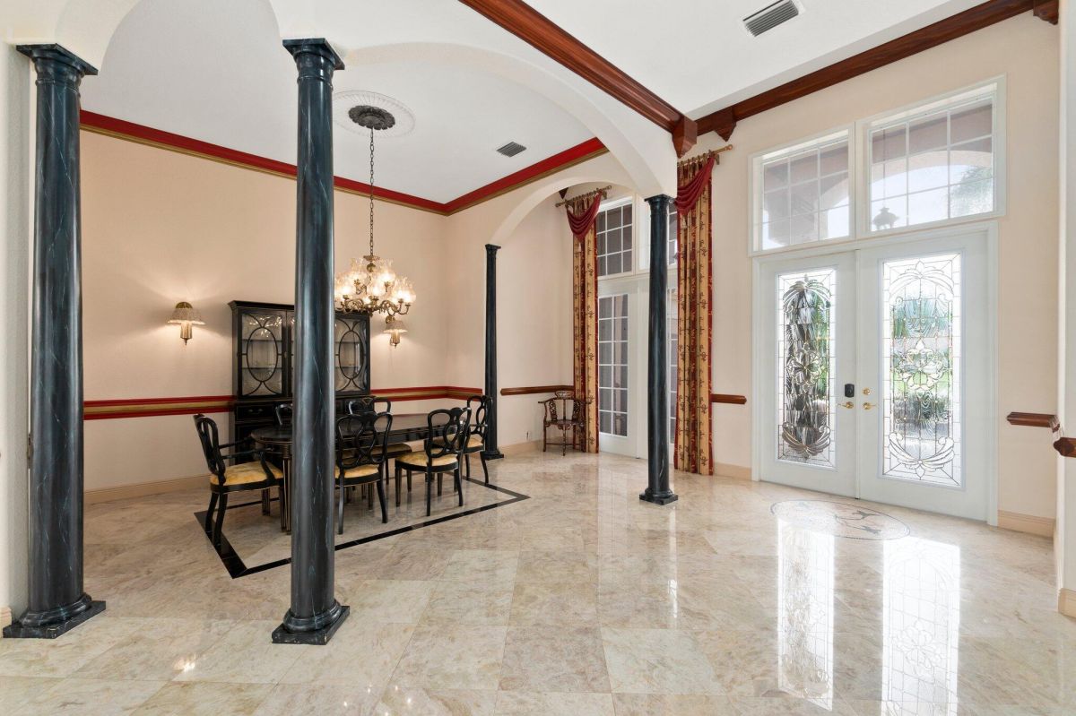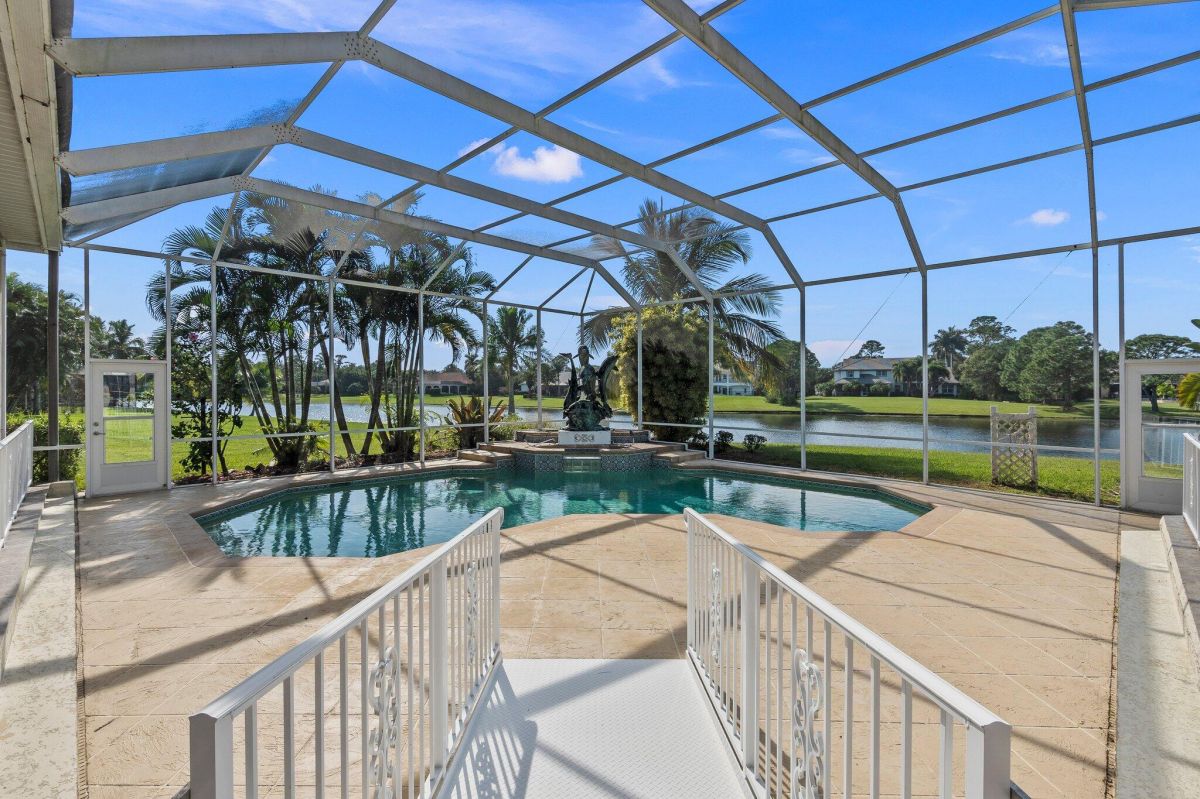 Nestled within a serene gated golf community, this meticulously planned estate home occupies a generous 1.53-acre lot. Step into an opulent entranceway that gracefully unfolds into the formal living area, dining space, and a versatile den/office.Boasting essential enhancements like impact windows, a newer GENERAC system, a built-in bar, and exquisite Italian marble flooring, this residence invites an abundance of natural light through its multitude of windows. Ready for immediate occupancy.