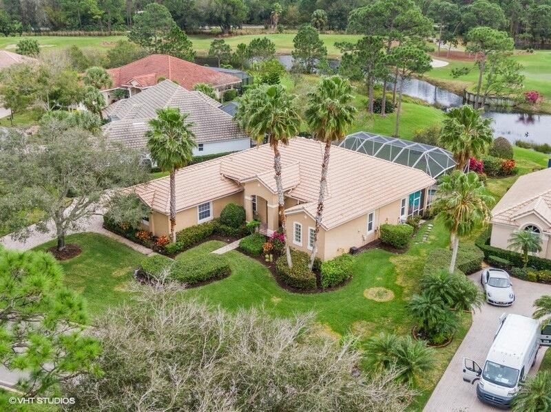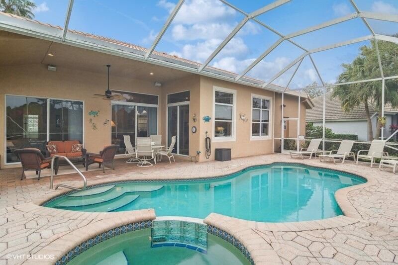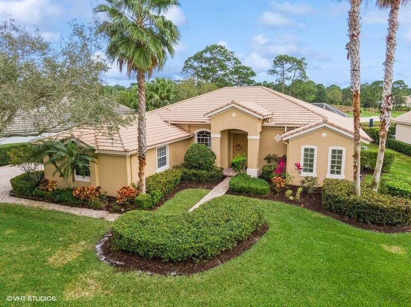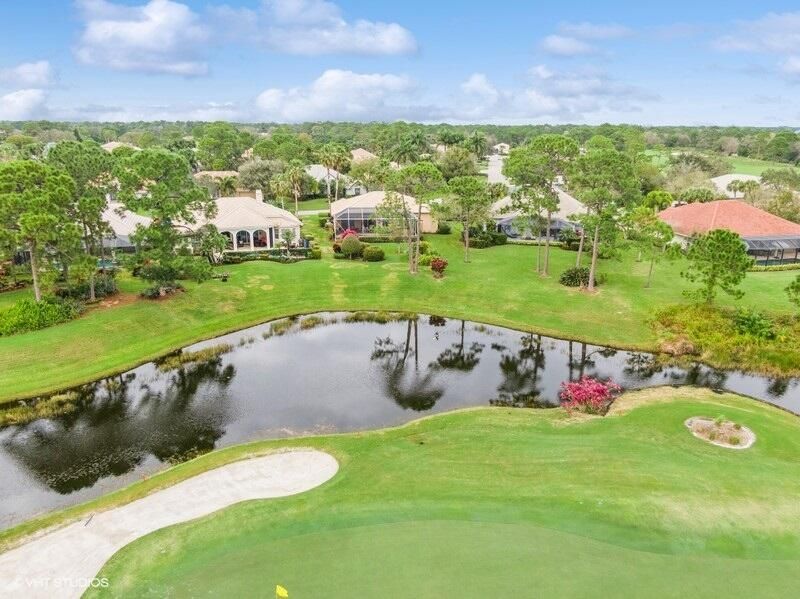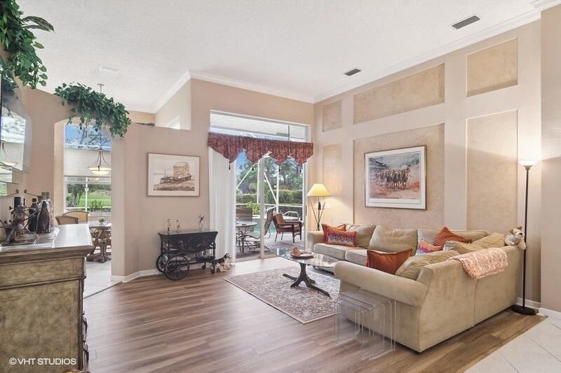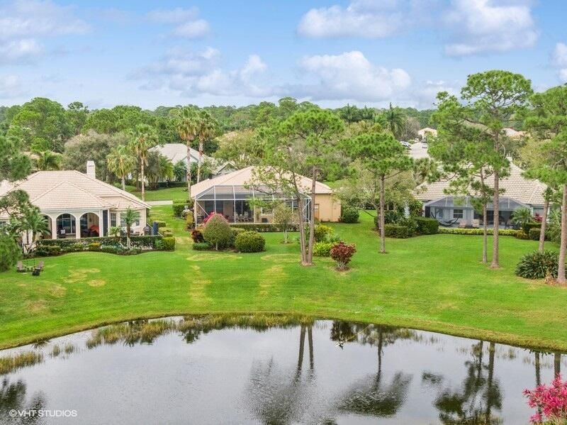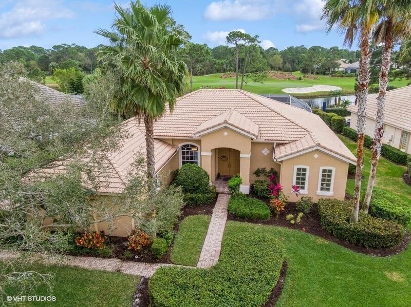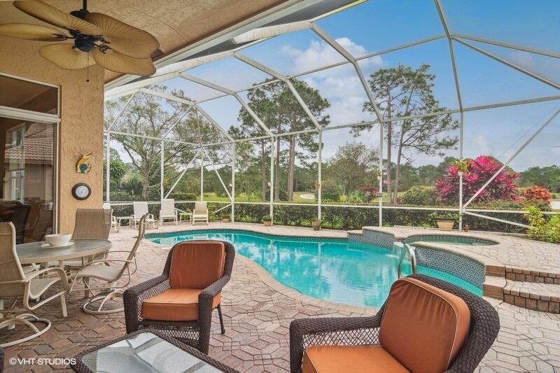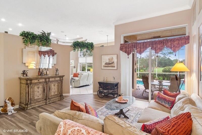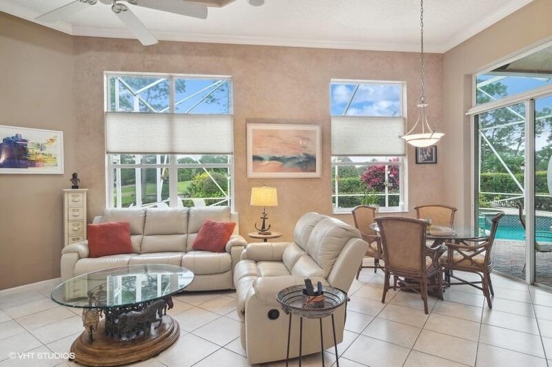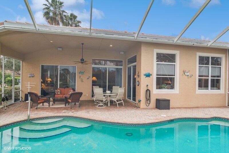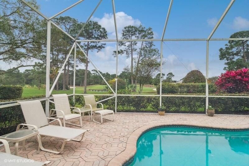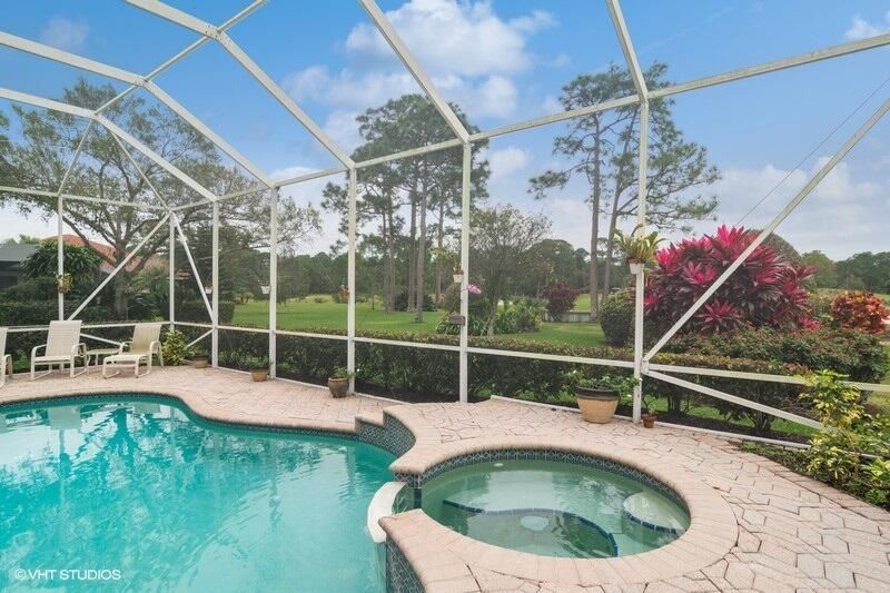 HUGE PRICE REDUCTION!!! Built by Ecclestone, this 3-bedroom 3 bath pool home is in the desirable Cypress Point subdivision of PGA Village. This spacious home offers a formal LR & DR, plus you have a FR & breakfast nook adjacent to the kitchen. Large windows and sliding doors allow you to bring the outside in. Entertain or relax out on the patio with plenty of seating areas. A screen cage houses a refreshing pool/spa that overlooks the beautiful PGA Golf course and lake. Other features include crown moldings, newly installed luxury vinyl floors & a 250-gallon propane tank to heat the pool & for the gas stove in the kitchen. Don't miss these amazing views!