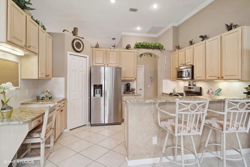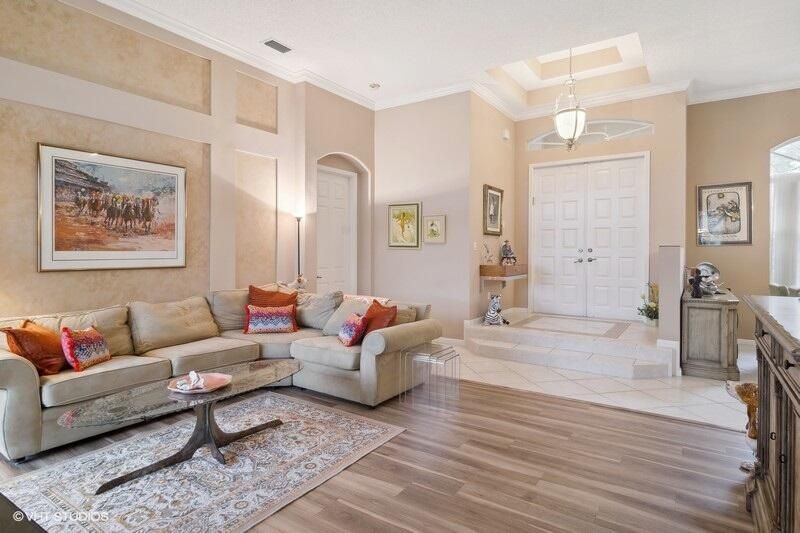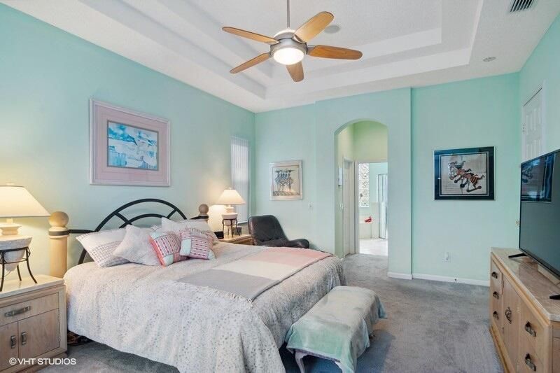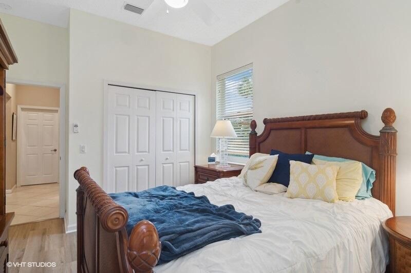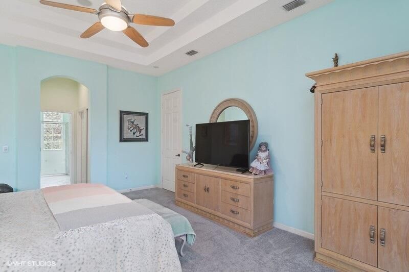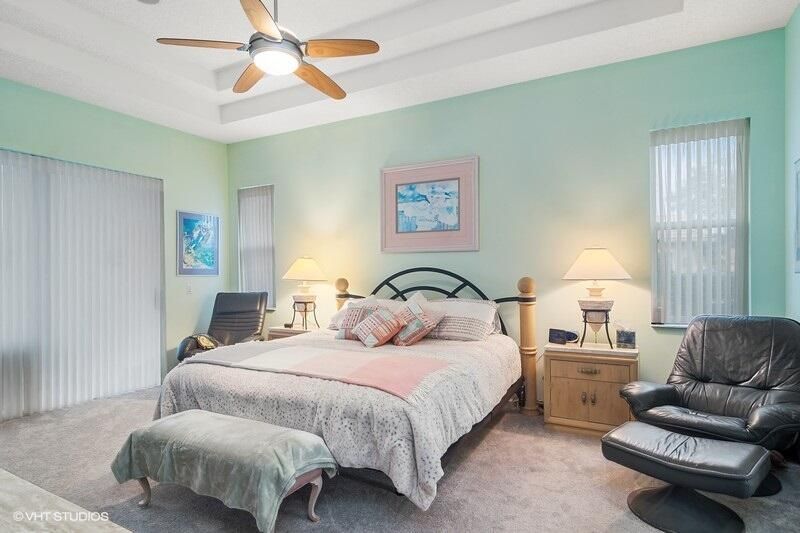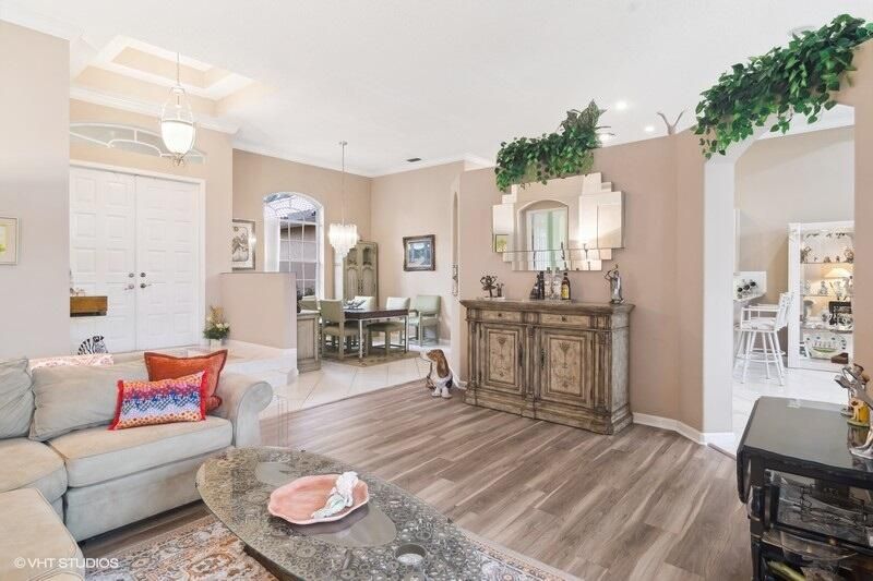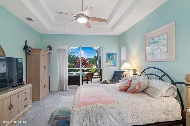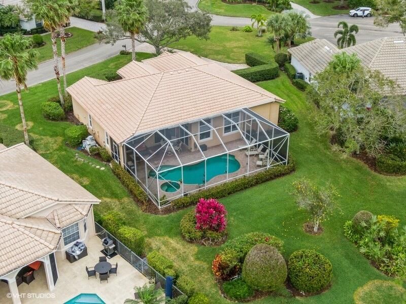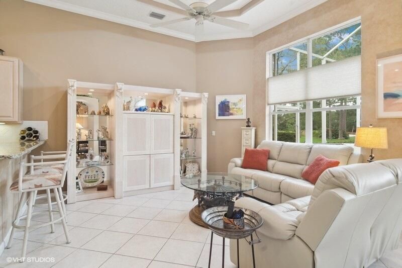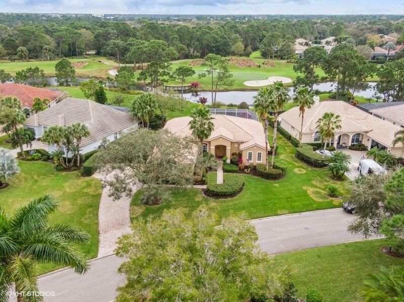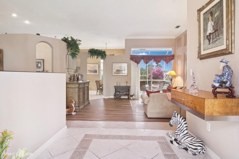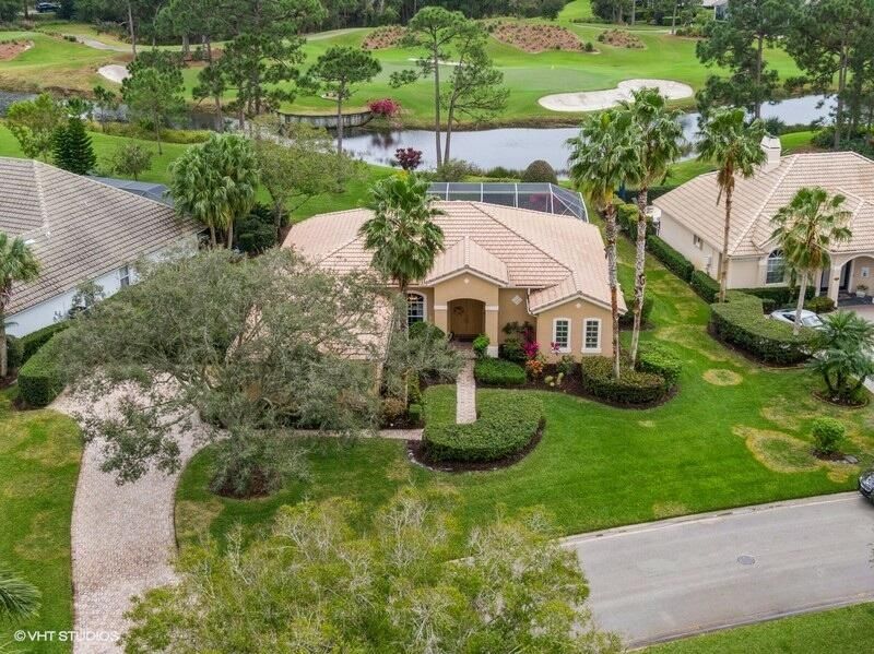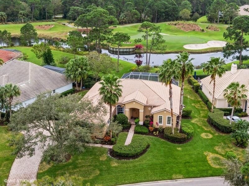 HUGE PRICE REDUCTION!!! Built by Ecclestone, this 3-bedroom 3 bath pool home is in the desirable Cypress Point subdivision of PGA Village. This spacious home offers a formal LR & DR, plus you have a FR & breakfast nook adjacent to the kitchen. Large windows and sliding doors allow you to bring the outside in. Entertain or relax out on the patio with plenty of seating areas. A screen cage houses a refreshing pool/spa that overlooks the beautiful PGA Golf course and lake. Other features include crown moldings, newly installed luxury vinyl floors & a 250-gallon propane tank to heat the pool & for the gas stove in the kitchen. Don't miss these amazing views!