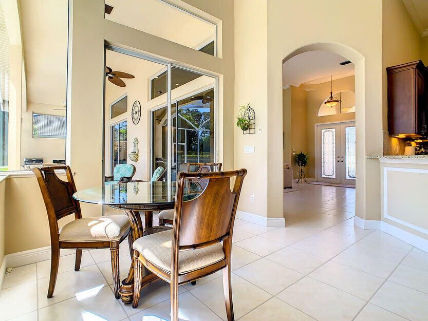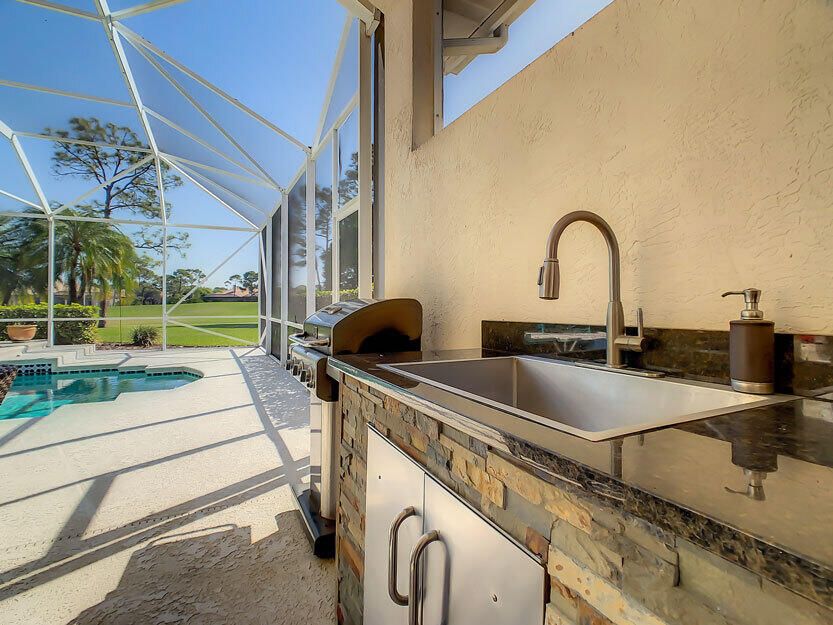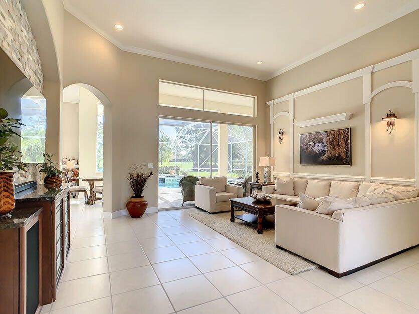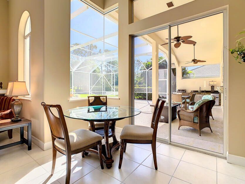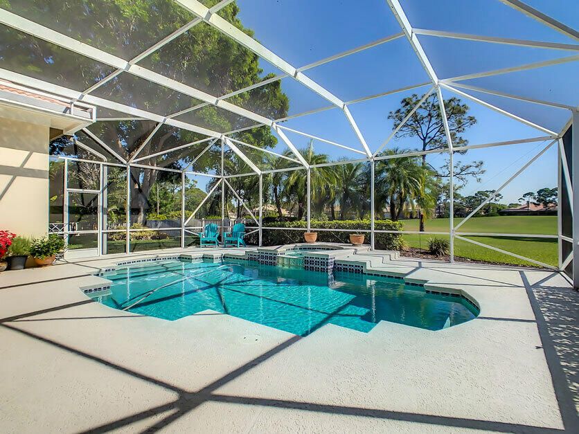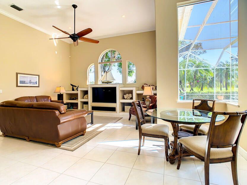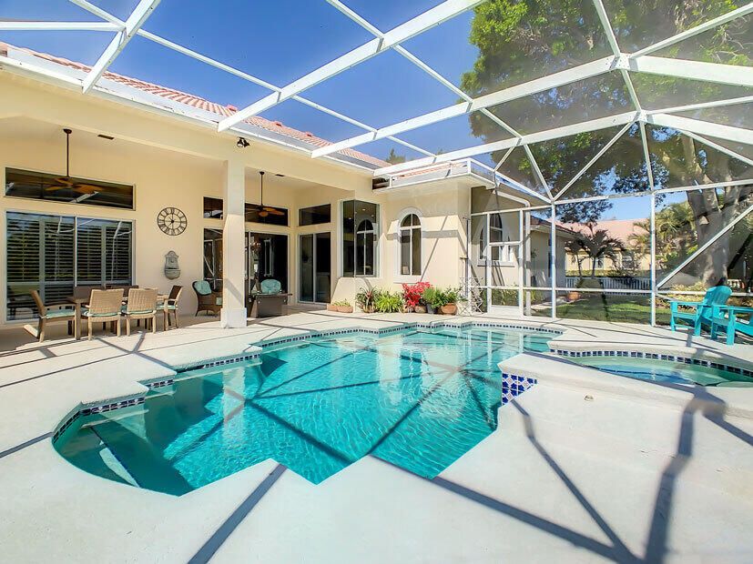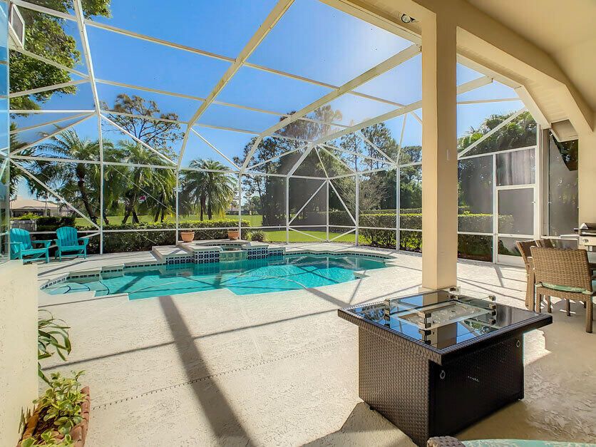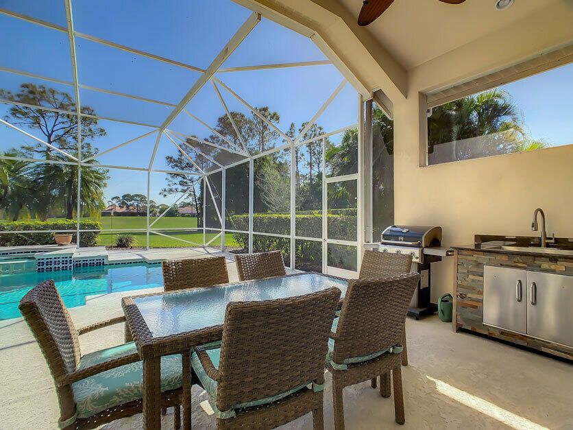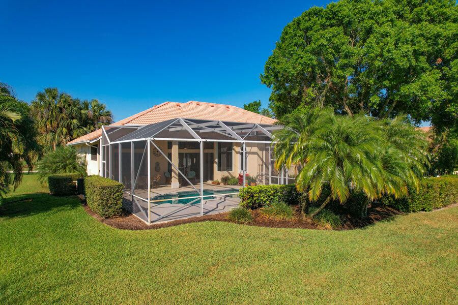 Spectacular 4 bedroom 3 full bathroom POOL home ON the golf course! This beautiful home is located on the 6th hole of the Ryder Course at PGA Village. Home is ideally facing the west for nice bright mornings and protection from the afternoon sun by the pool with the stunning golf view. AC unit and water heater only 5 years old, bathrooms all upgraded in the past 3 years. Tile throughout has just been cleaned and sealed. New fans and light fixtures throughout. ALL newer kitchen appliances, washer and dryer. Plantation shutters in all bedrooms. Garage floor has been freshly painted and most tools on shelves and work benches will convey. BEST feature is the fenced back yard that has been grandfathered in. Room for kids and pets to play! Don't miss out on this piece of Florida paradise!!!