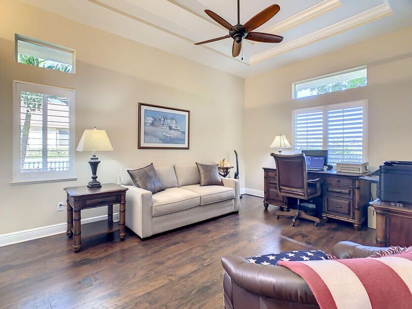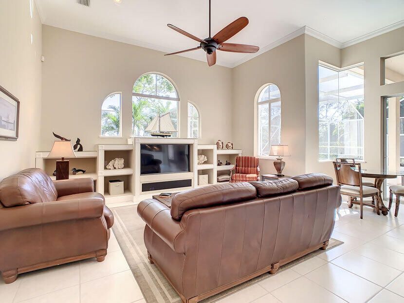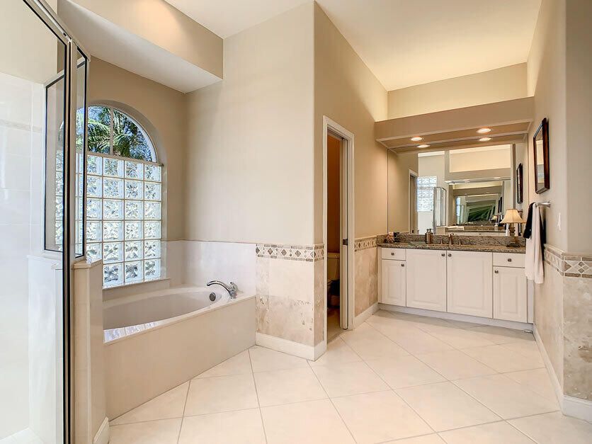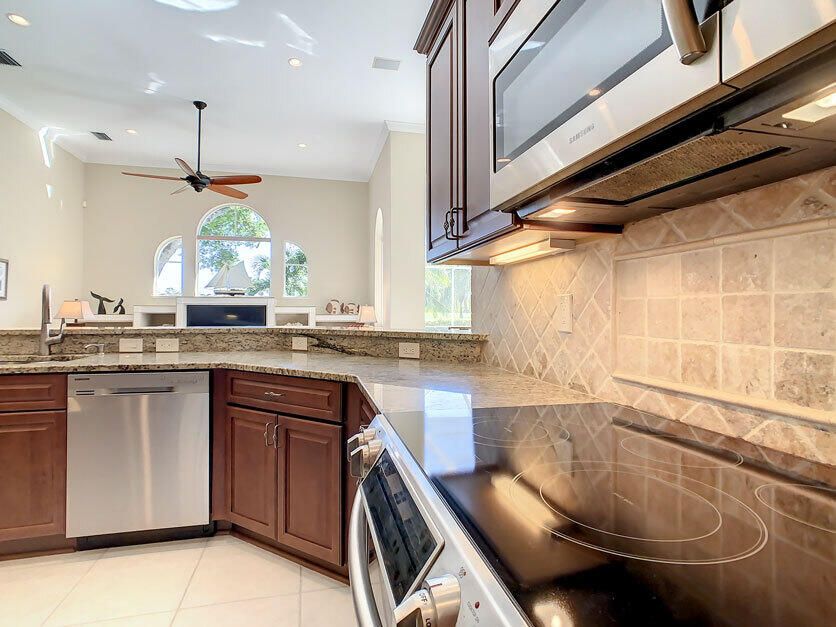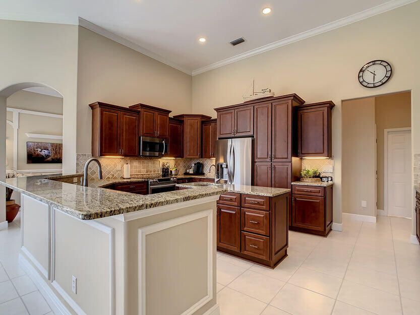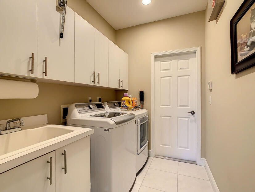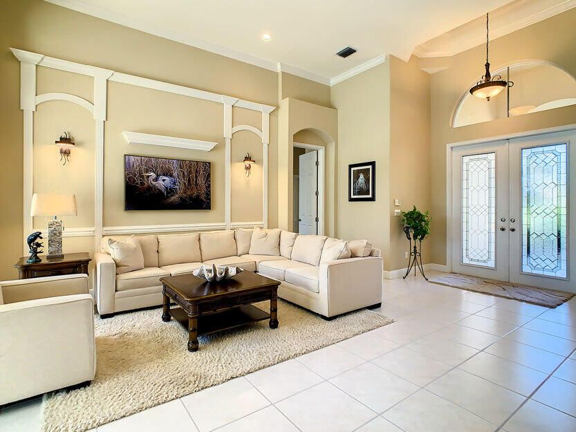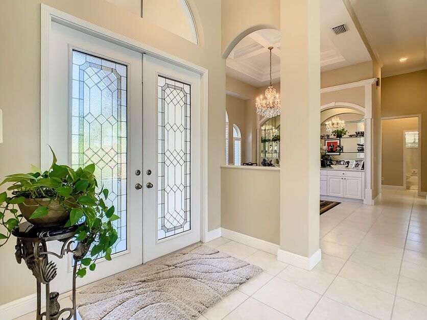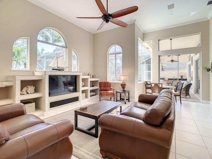 Spectacular 4 bedroom 3 full bathroom POOL home ON the golf course! This beautiful home is located on the 6th hole of the Ryder Course at PGA Village. Home is ideally facing the west for nice bright mornings and protection from the afternoon sun by the pool with the stunning golf view. AC unit and water heater only 5 years old, bathrooms all upgraded in the past 3 years. Tile throughout has just been cleaned and sealed. New fans and light fixtures throughout. ALL newer kitchen appliances, washer and dryer. Plantation shutters in all bedrooms. Garage floor has been freshly painted and most tools on shelves and work benches will convey. BEST feature is the fenced back yard that has been grandfathered in. Room for kids and pets to play! Don't miss out on this piece of Florida paradise!!!