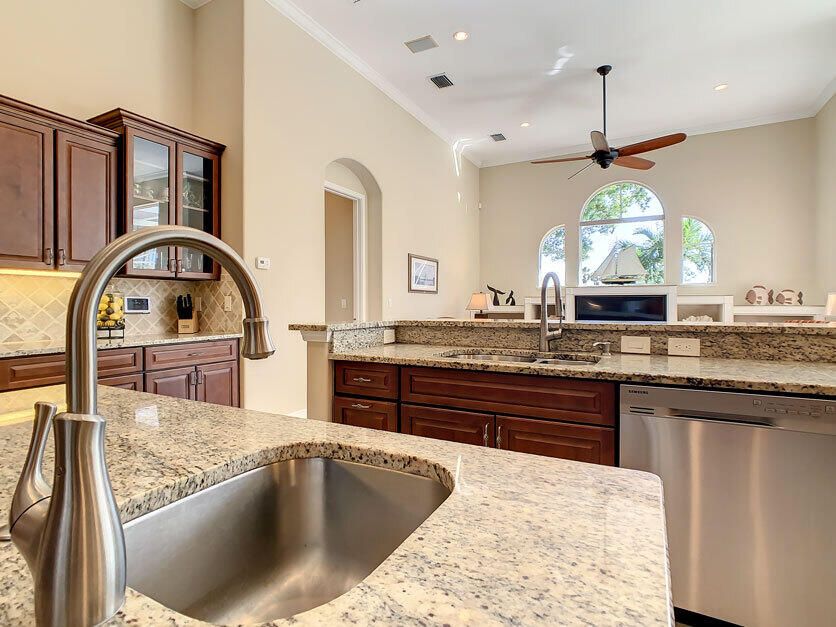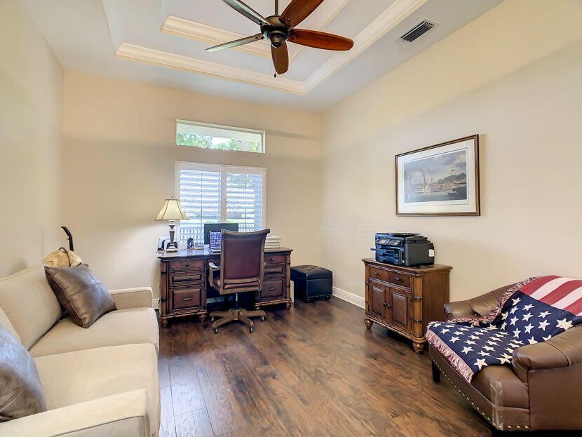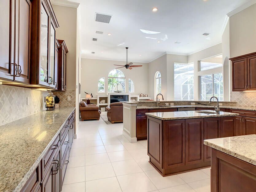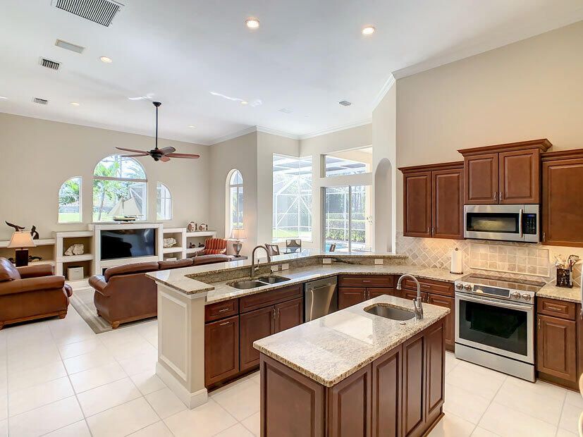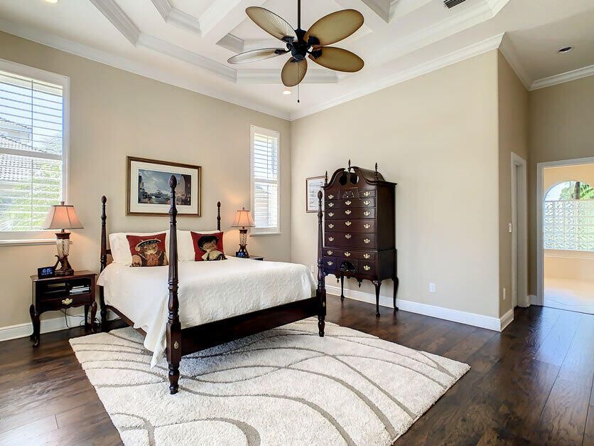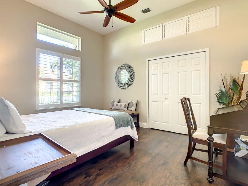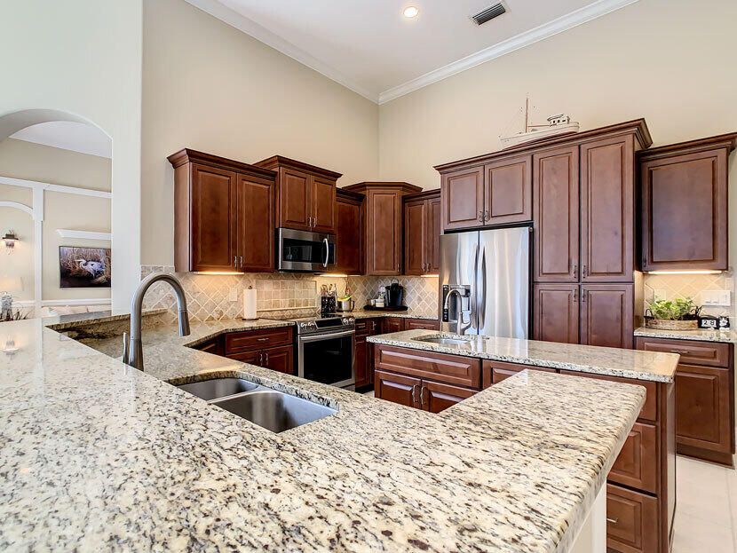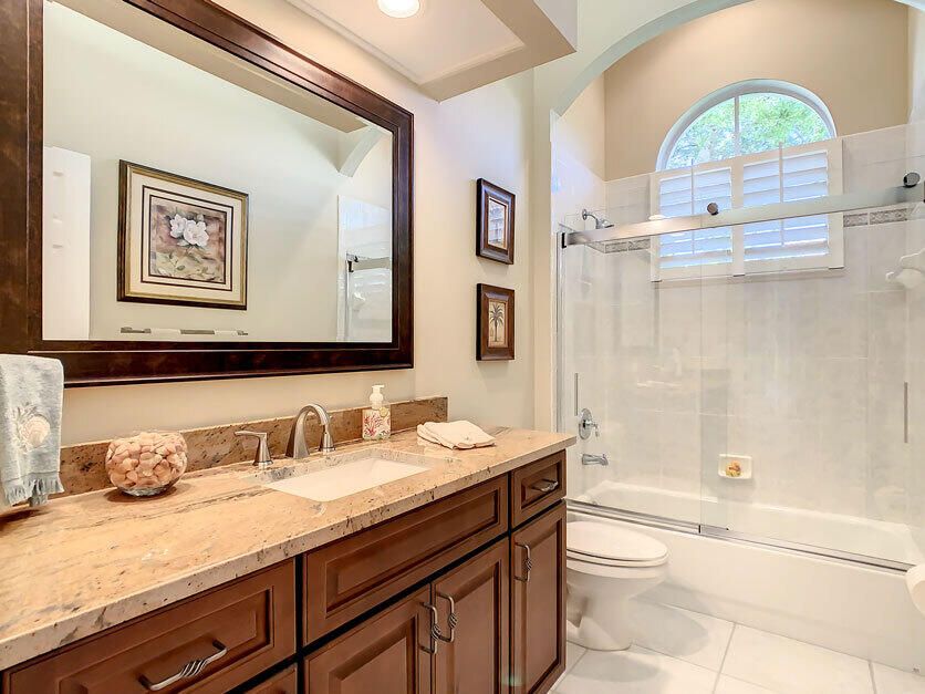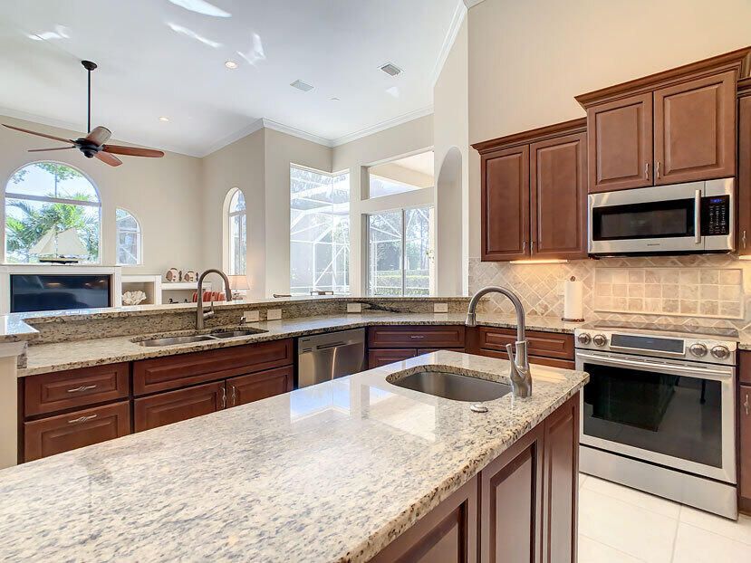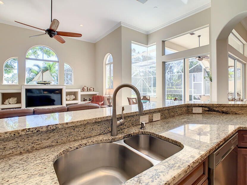 Spectacular 4 bedroom 3 full bathroom POOL home ON the golf course! This beautiful home is located on the 6th hole of the Ryder Course at PGA Village. Home is ideally facing the west for nice bright mornings and protection from the afternoon sun by the pool with the stunning golf view. AC unit and water heater only 5 years old, bathrooms all upgraded in the past 3 years. Tile throughout has just been cleaned and sealed. New fans and light fixtures throughout. ALL newer kitchen appliances, washer and dryer. Plantation shutters in all bedrooms. Garage floor has been freshly painted and most tools on shelves and work benches will convey. BEST feature is the fenced back yard that has been grandfathered in. Room for kids and pets to play! Don't miss out on this piece of Florida paradise!!!