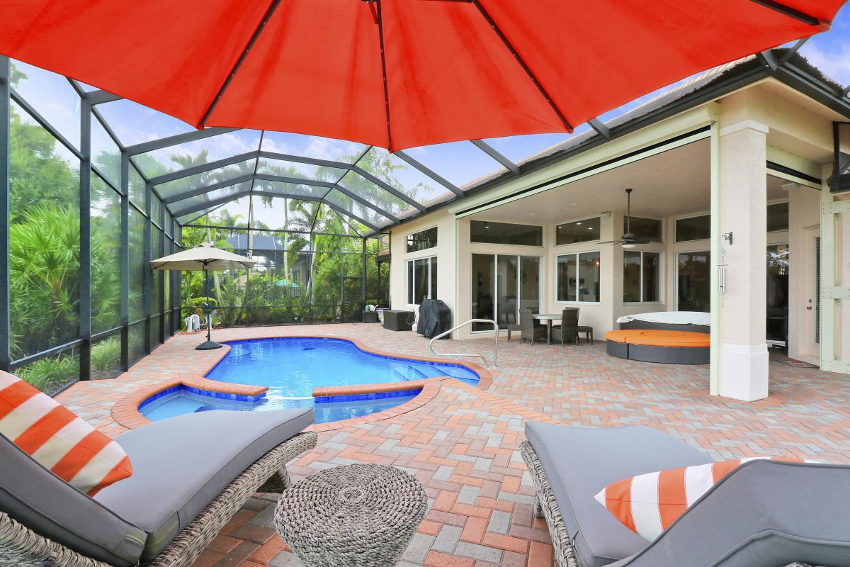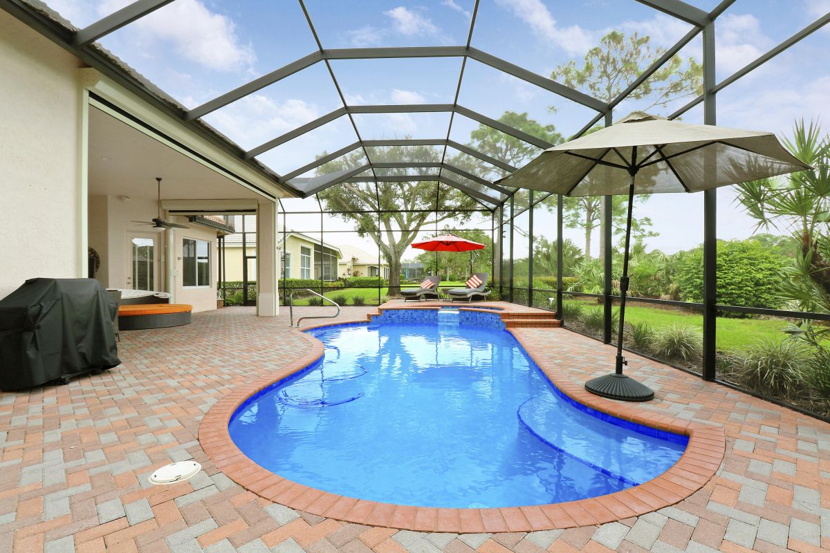 NEW PRICE CORRECTION!! Experience the luxury Golf lifestyle with OPTIONAL memberships in the best location of PGA Village in Cypress Point, with direct access to everything you'll ever need! Experience a jaw dropping short drive home through the gated and beautifully maintained treelined streets, it's a feeling you won't forget! This stunning extended Brookline model offers outdoor living at its finest with a landscaped oasis. Spend evenings overlooking golf and a backyard pond from the oversized 60x26 screened-in patio with a heated saltwater pool & spa (resurfaced 2020, new heater, pump and saltwater system). Sit back and enjoy the views of the spectacular Ryder Golf Course's 12th hole with no worries of stray golf balls! 2 ACs (Main 2019/Suite 2023). Over $150k in upgrades including;