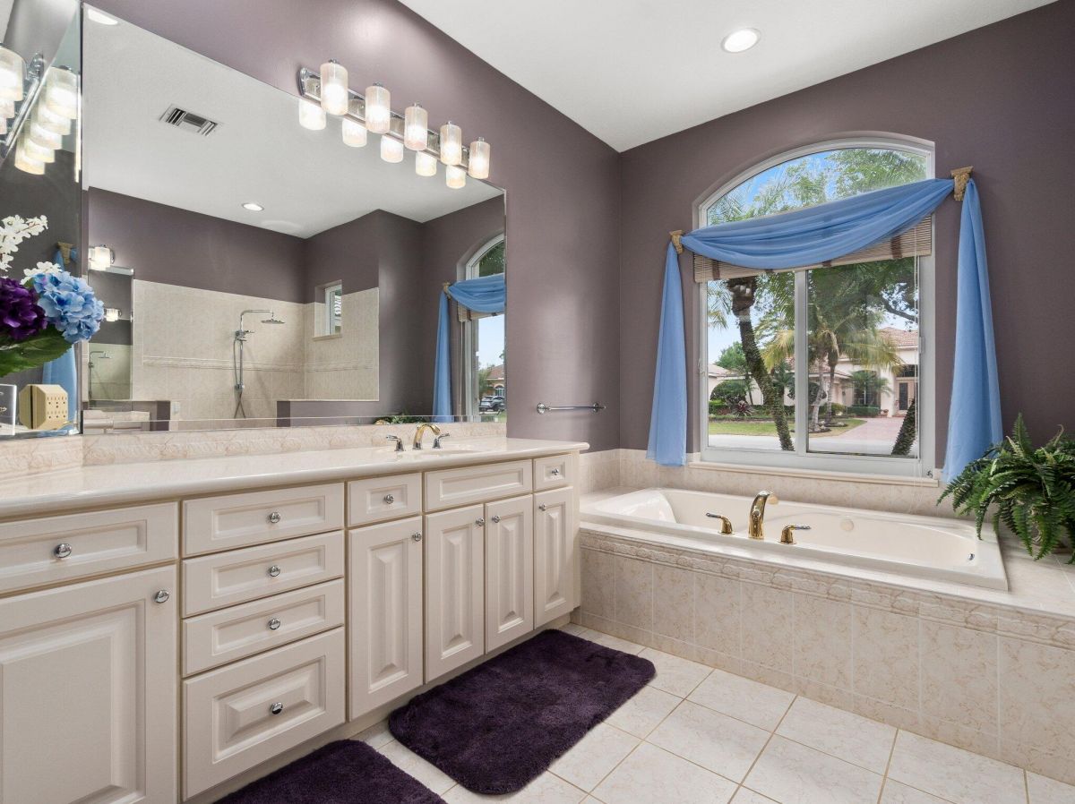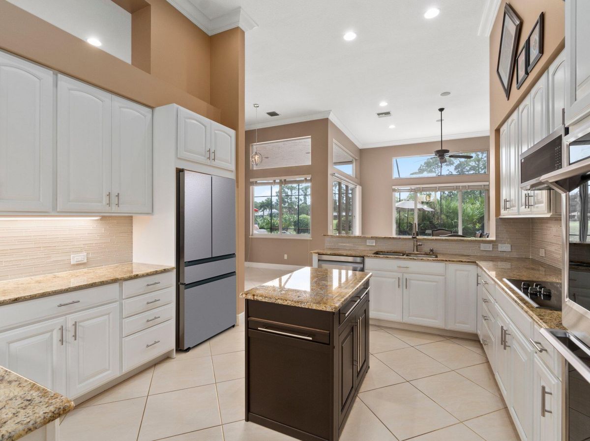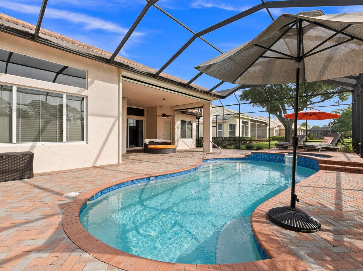 Stunning 3 bedroom plus office/den 3 bathroom 2 car garage pool home located in PGA Golf Village Cypress Point. Minutes from major highways, shopping and plenty of restaurants. 2 AC units (Main unit 2019, master suite 2023) Spacious living areas with high ceilings and crown molding throughout, freshly painted interior & exterior. Newly updated kitchen with granite countertops, newer stainless steel appliances, wall oven, cooktop and plenty of cabinetry for storage. Spacious master suite with tray ceilings, access to pool deck, walk-in closets with custom built-ins, dual bathroom vanities, spa tub and step in shower. Large screened in patio with paver deck, resurfaced heated pool & spa (2021), new saltwater system & pool pump installed in 2023 and overlooks the golf course!