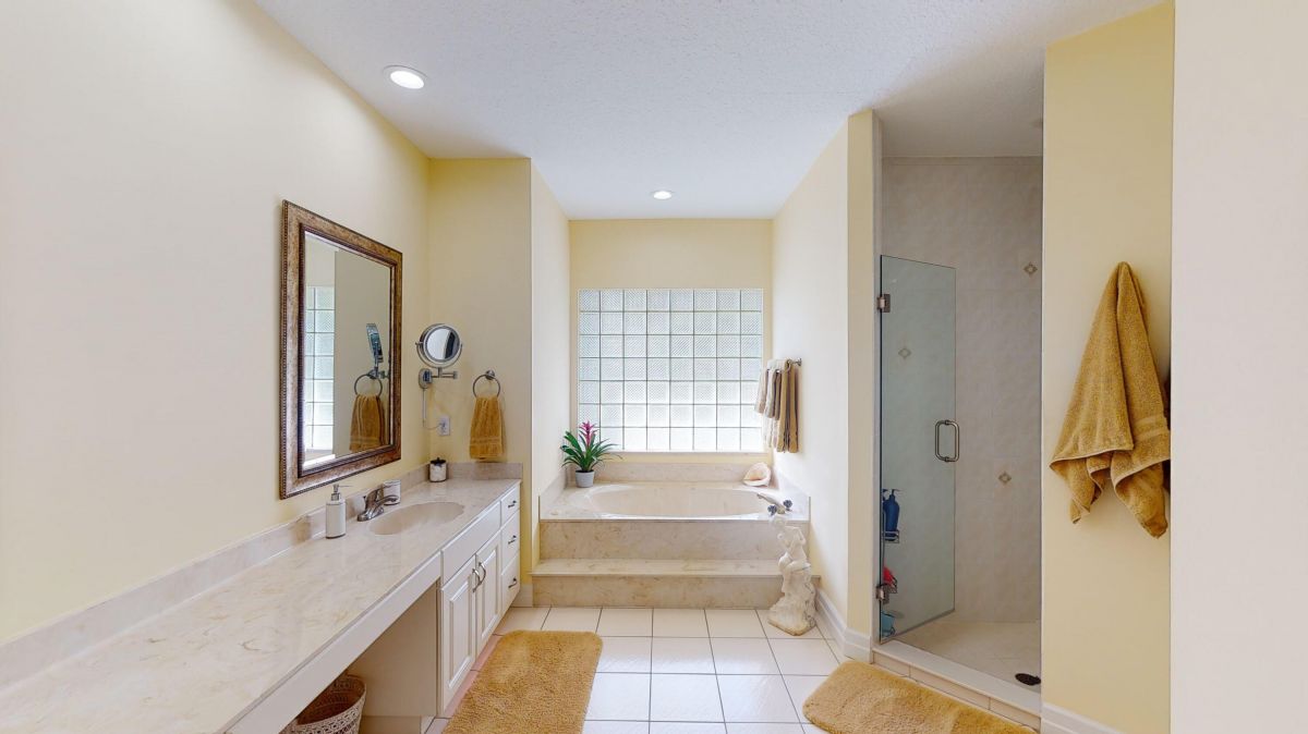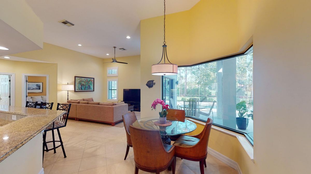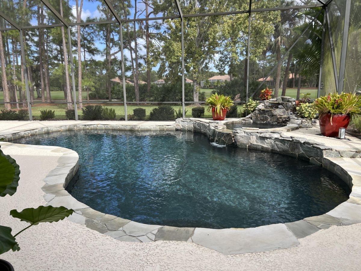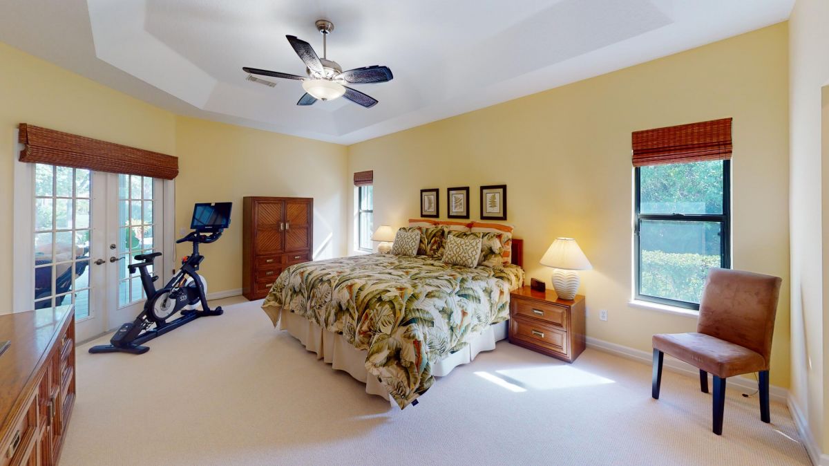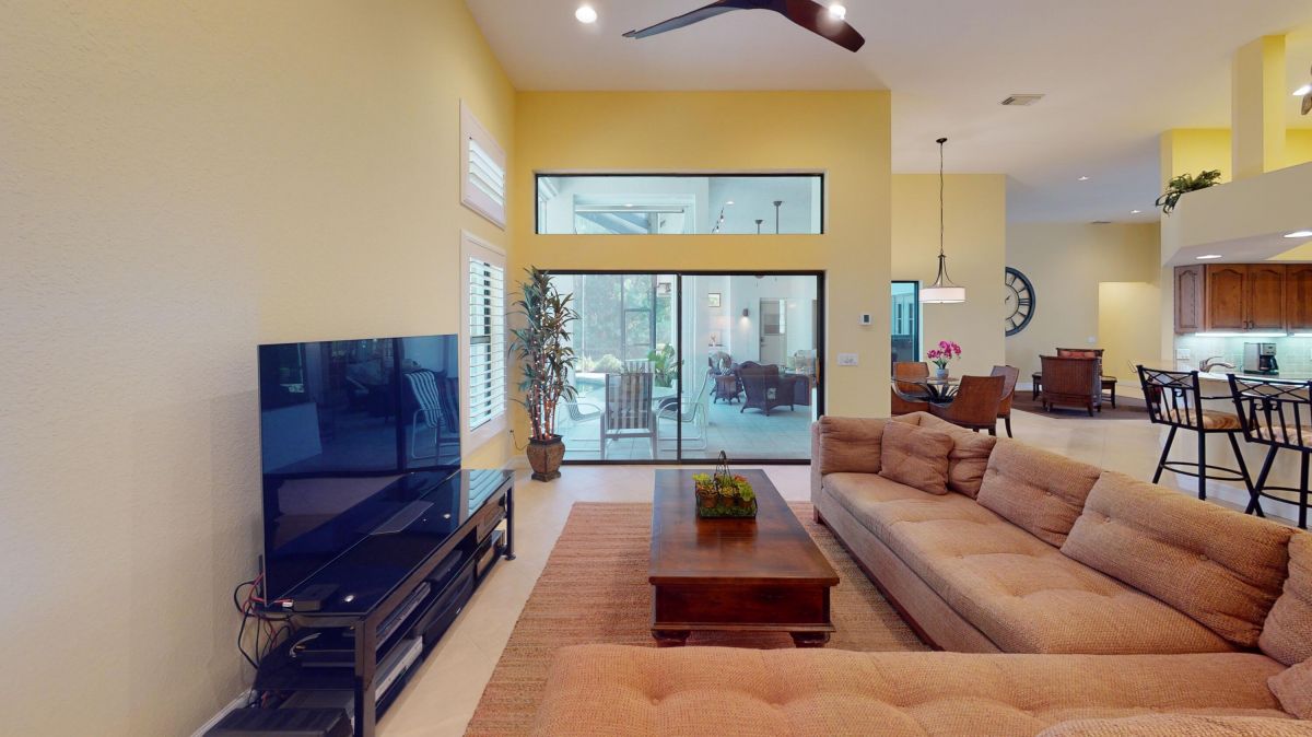 Custom built CBS, pool home set on a beautiful .63-acre lot, lushly landscaped with dramatic lighting and surrounded by majestic oaks. Large Lanai looks out to views of 6th Fairway of Fazio ''Ryder'' golf course in the highly desirable PGA Village community. This move-in ready home boasts 3 bedrooms, 21/2 baths and den or 4th bedroom, 3-car garage with shelved air-conditioned storage room, large, covered patio, pool and spa with a stunning rock waterfall. Spacious open floor plan, high volume ceilings, large kitchen with high-end stainless Kitchenaid appliances, wood cabinets, granite countertops, large island and pantry. Accordion storm shutters throughout, front door storm panels, Safety/Tinted Window Film, Hi-Res security camera system, Pool/Spa resurfaced (2020), New Pool Heater 2022