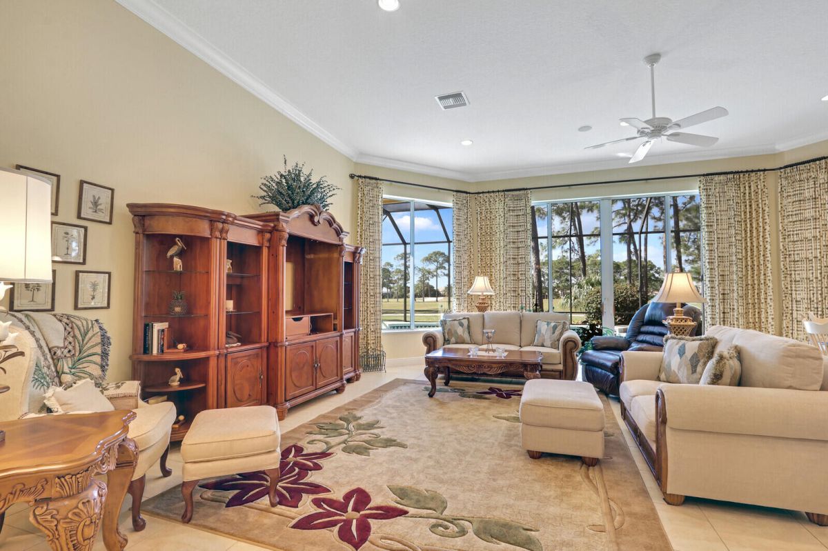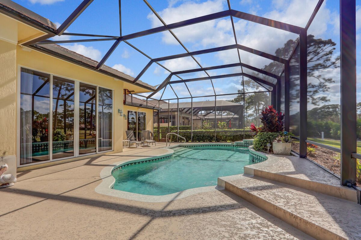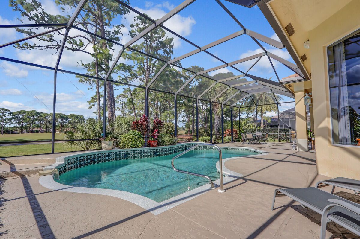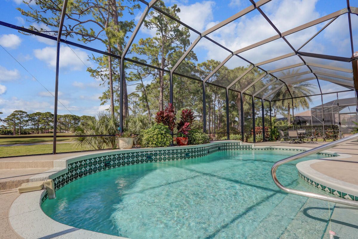 SWEEPING GOLF COURSE VIEWS IN CYPRESS POINT, PGA VILLAGE! This beautiful, well-maintained home in the very popular Cypress Point neighborhood of PGA Village offers breathtaking views of the 17th fairway of the PGA Ryder Course. Located in the heart of the community, this 3 BR, 3 Bath + den, features a spacious, open-concept great room plan that is perfect for Florida living! Step outside onto the extended screened lanai, complete with a private pool & enjoy serene, quiet moments while overlooking the lush green fairways. Meticulously cared for by its original owner, this home offers updates; 2 water heaters, 2 A/C units & pool pump-all under 5 years old. The home comes fully furnished & while it could use some cosmetic updates, it is move-in ready & offers endless potential